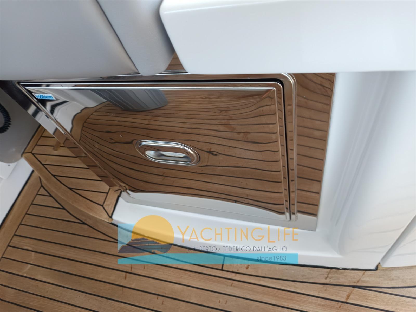 Engine Alarm, Electric Engine Compartment Opening, Water pressure pump, Batteries (2025), Deck Shower, Hydraulic Flaps, Hard top (Soft Top), Fire Extinguishing System, Flaps Indicators, Washbasin in the cockpit, Courtesy Lights, Gangway (idraulica), Platform, Automatic Bilge Pump, Manual Bilge Pump, Entry door, Teak Cockpit, Shorepower connector, Voltage Rectifier, Electric Windlass, swimming ladder, cockpit table (Nuovo 2025), Tender, Horn, Stern Winches.
