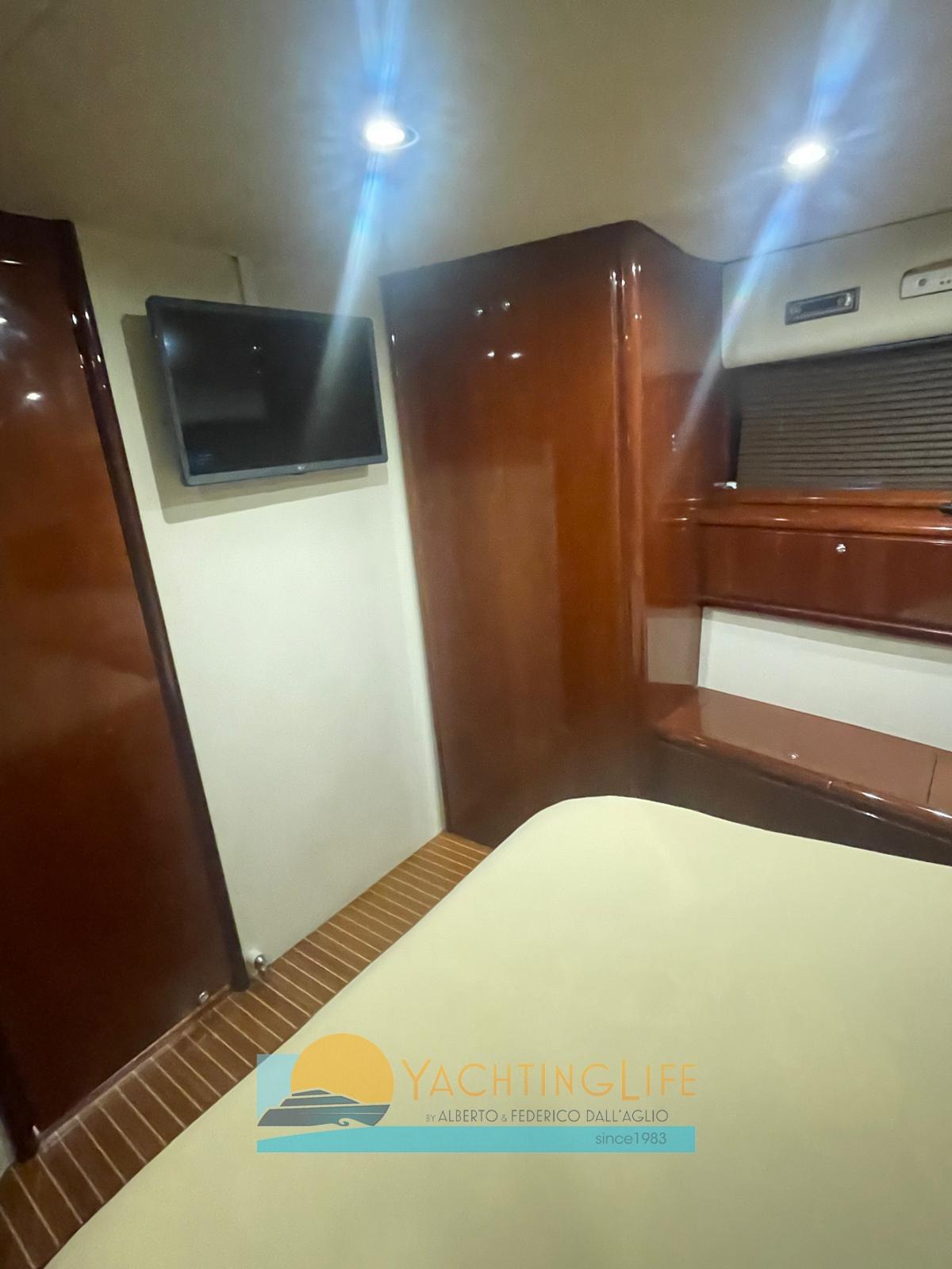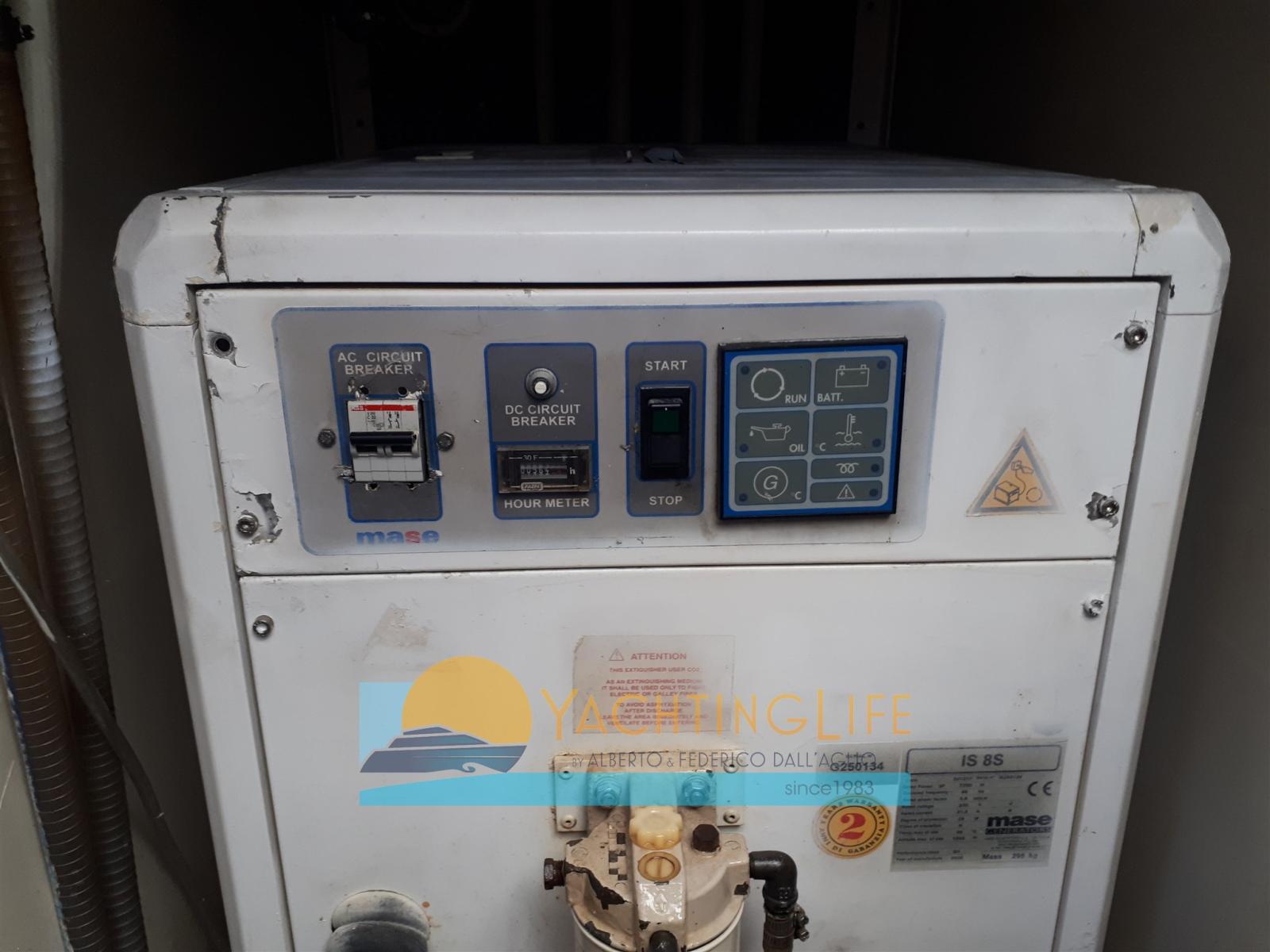 Engine Alarm, Bilge Alarm, Water pressure pump, Batteries (nuove 2023 e 2024), Deck Shower, Bow Thruster (2016), Hydraulic Flaps, Fire Extinguishing System, Courtesy Lights (a led), Gangway (idraulica), Automatic Bilge Pump, Teak Cockpit, Shorepower connector, Rollbar, Electric Windlass, swimming ladder, cockpit table, Horn.