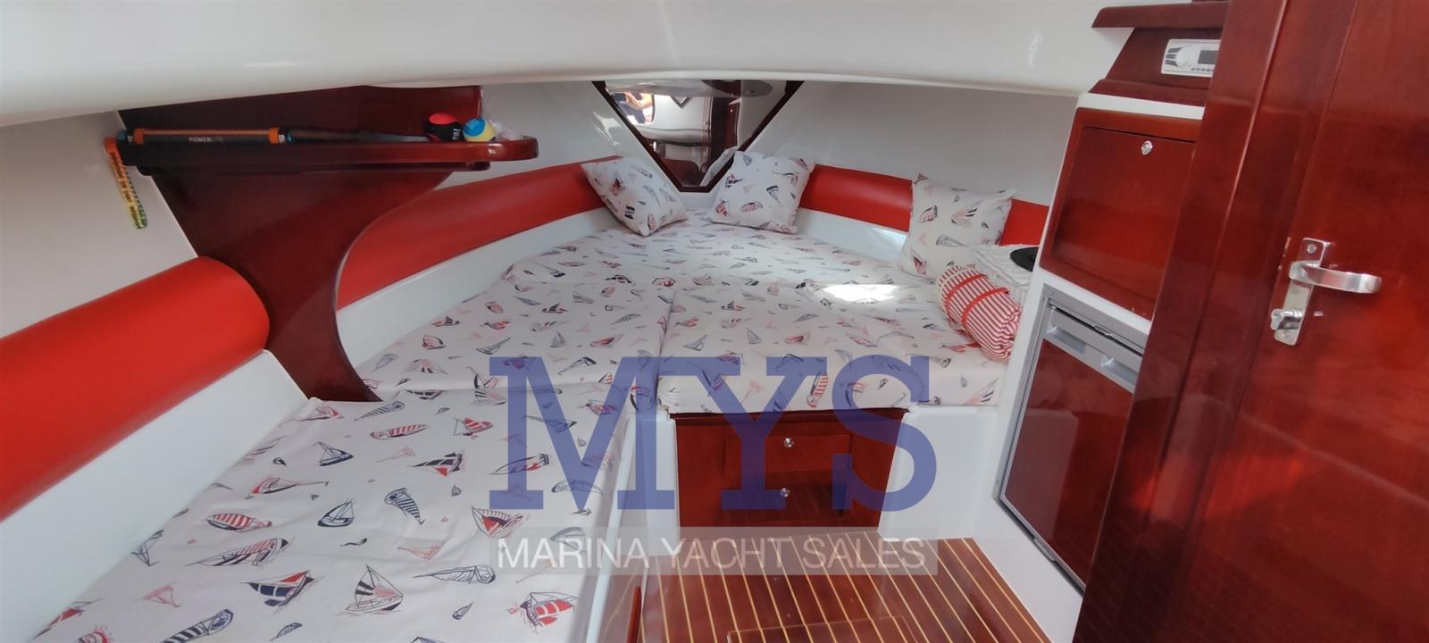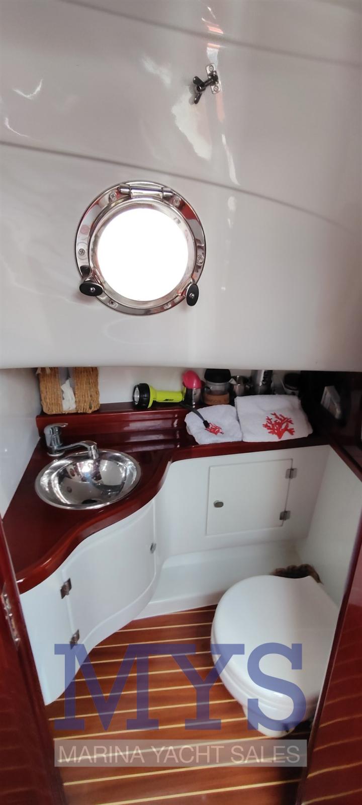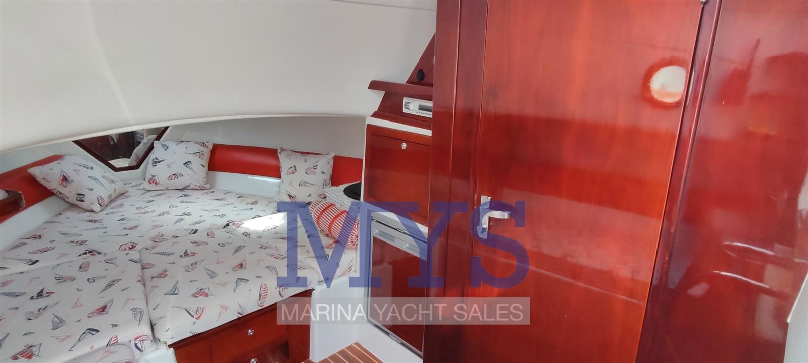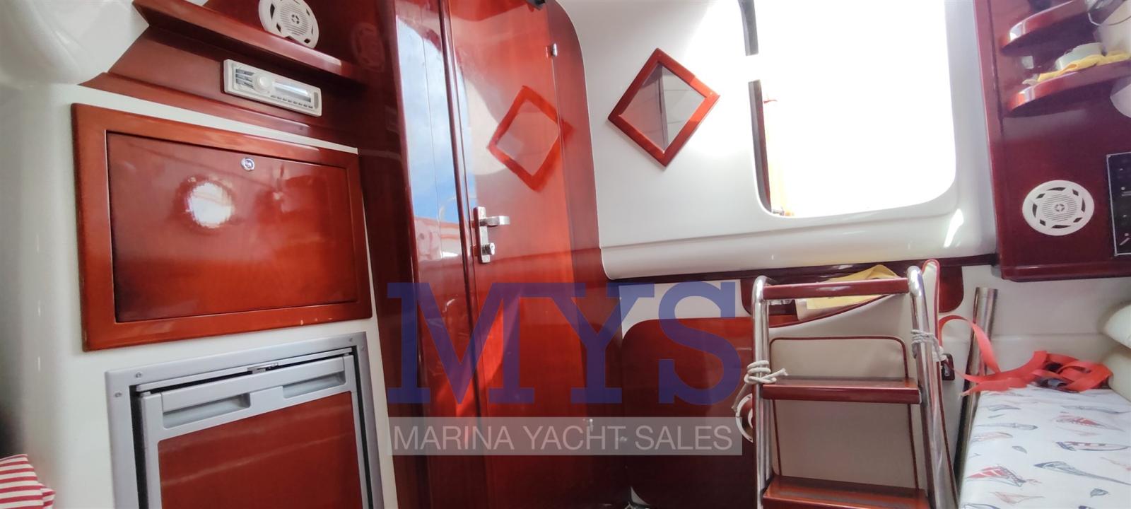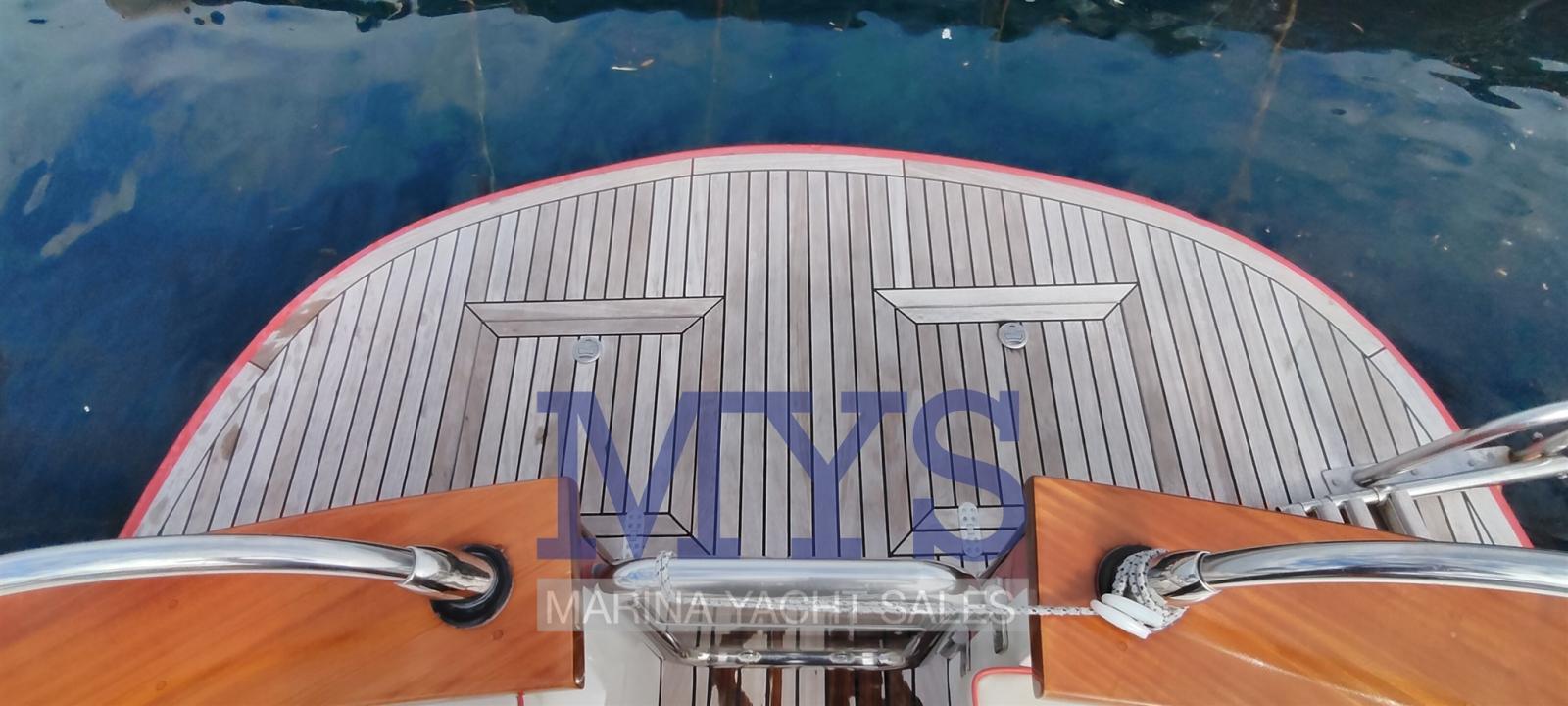 Engine Alarm, Electric Engine Compartment Opening, Water pressure pump, Teak Side Decks, Shore power cable, Special Colour (rosso), Deck Shower, Washbasin in the cockpit, Courtesy Lights, Fenders, Platform, Automatic Bilge Pump, Entry door, Teak Cockpit, Shorepower connector, Rollbar, Electric Windlass, swimming ladder, cockpit table, Horn.