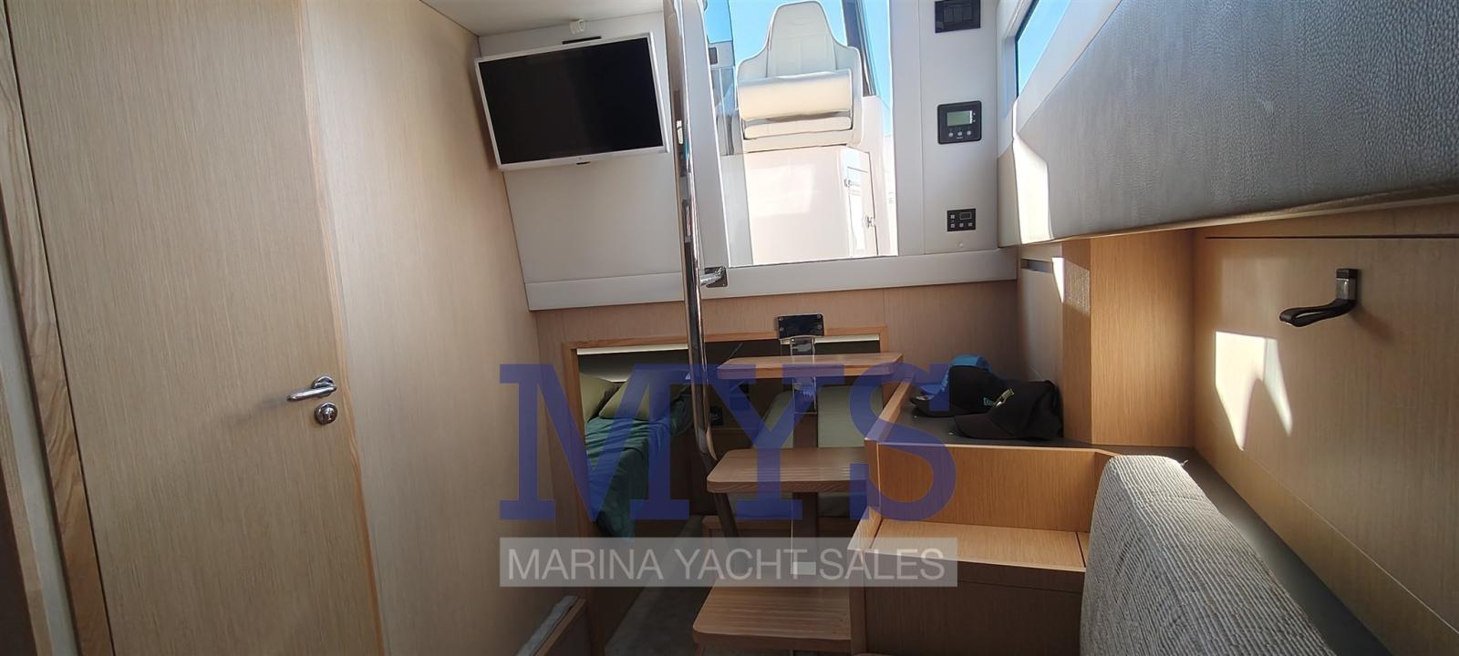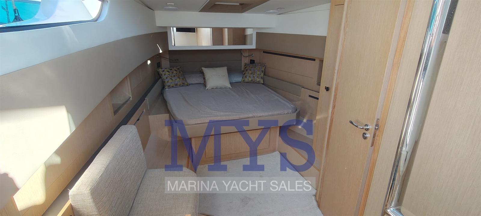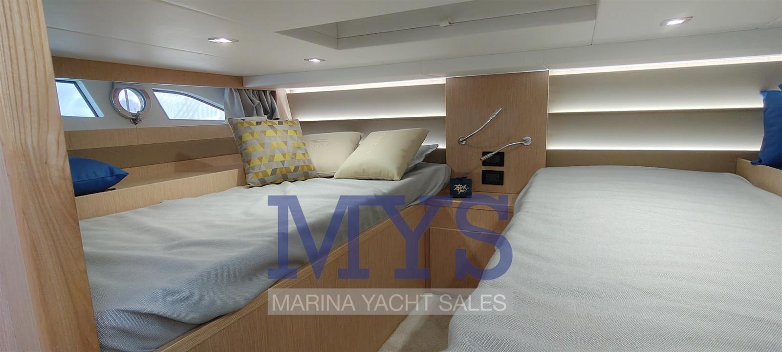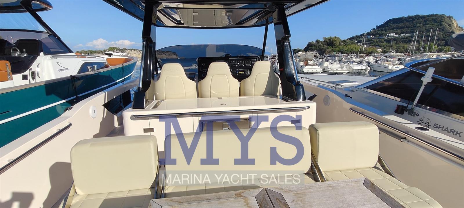 Engine Alarm, Bilge Alarm, Alternator, Water pressure pump, Auto-Trim, Shore power cable, Deck Shower, Hydraulic Flaps, Fire Extinguishing System, Flaps Indicators, Washbasin in the cockpit, Courtesy Lights, Fenders, Automatic Bilge Pump, Manual Bilge Pump, Entry door, Teak Cockpit, Shorepower connector, Electric Windlass, swimming ladder, cockpit table, Horn, T-Top.