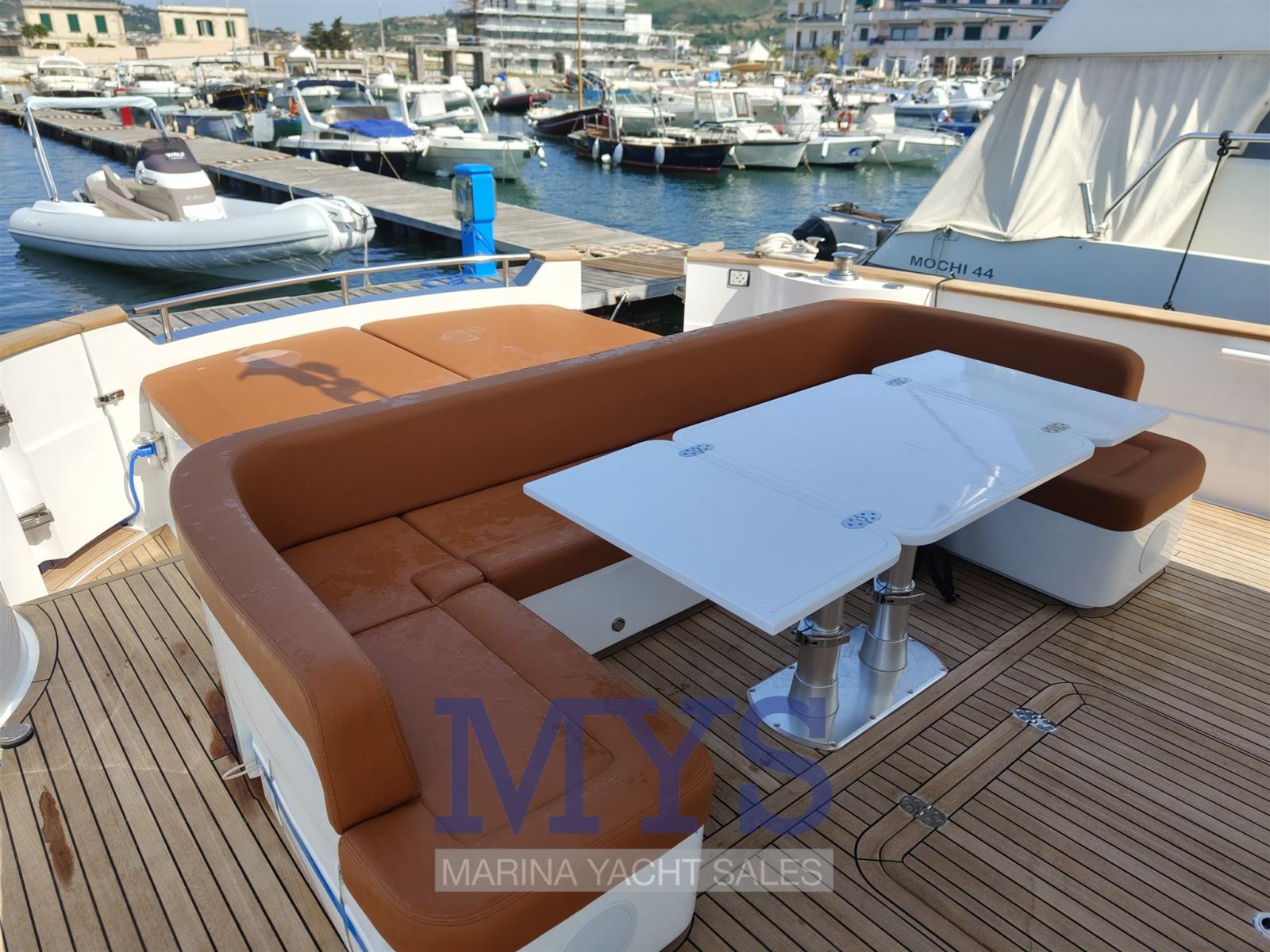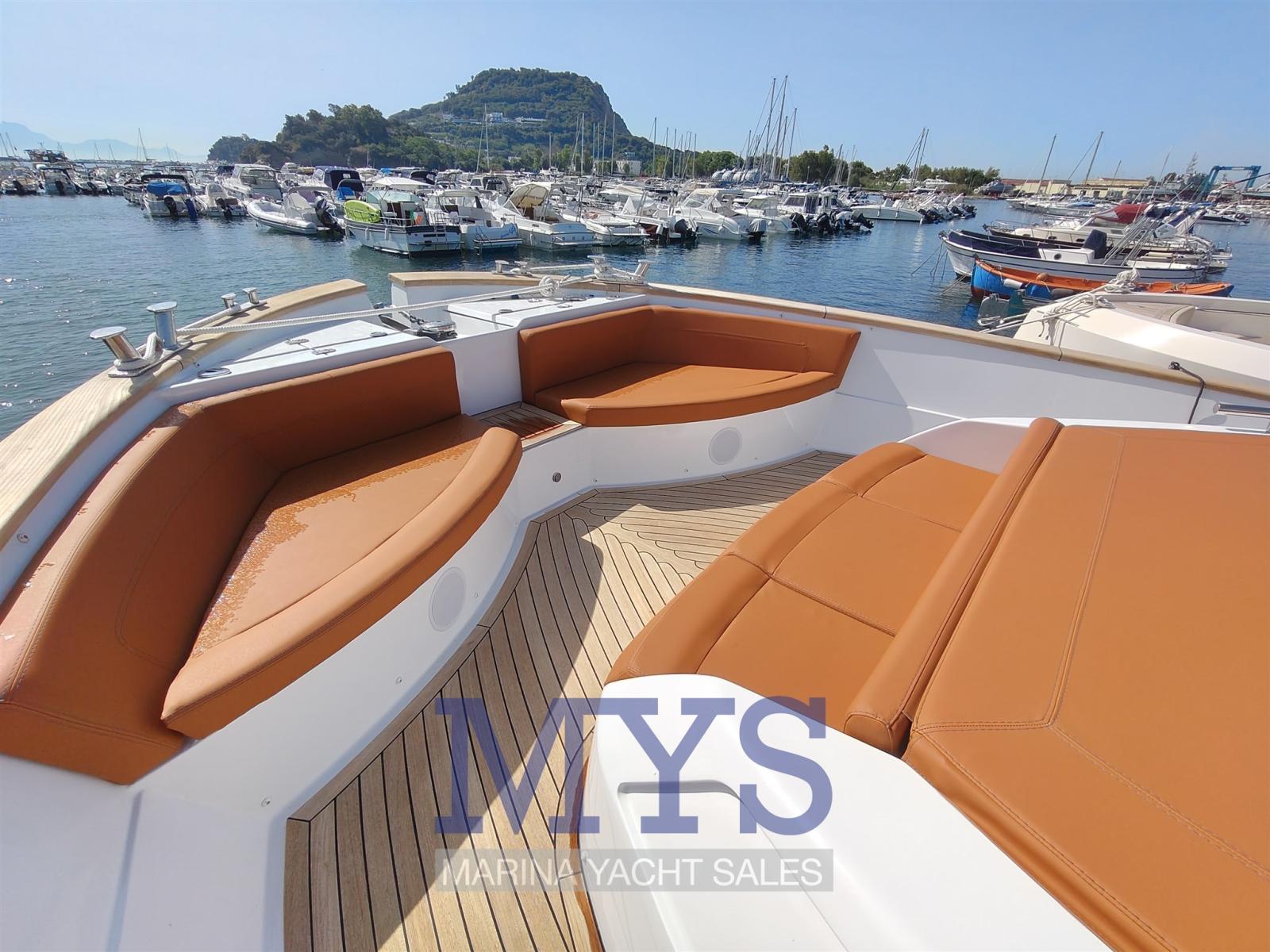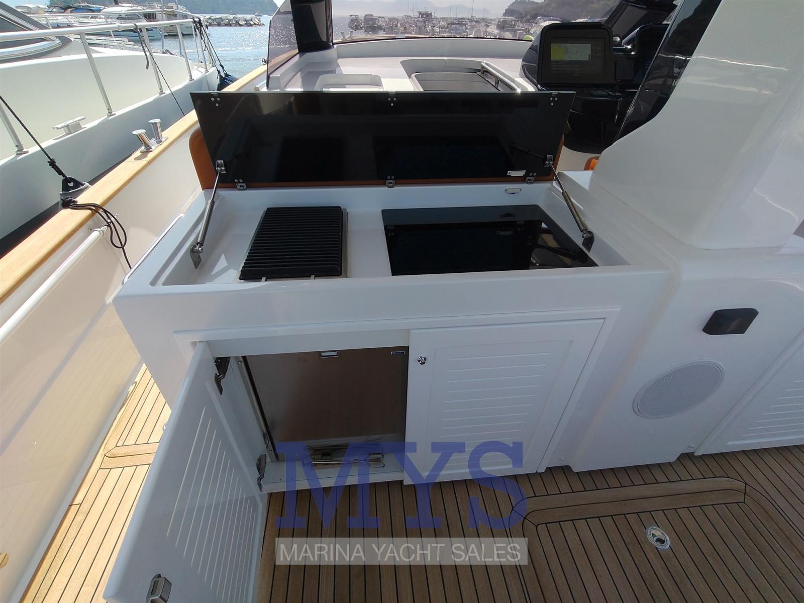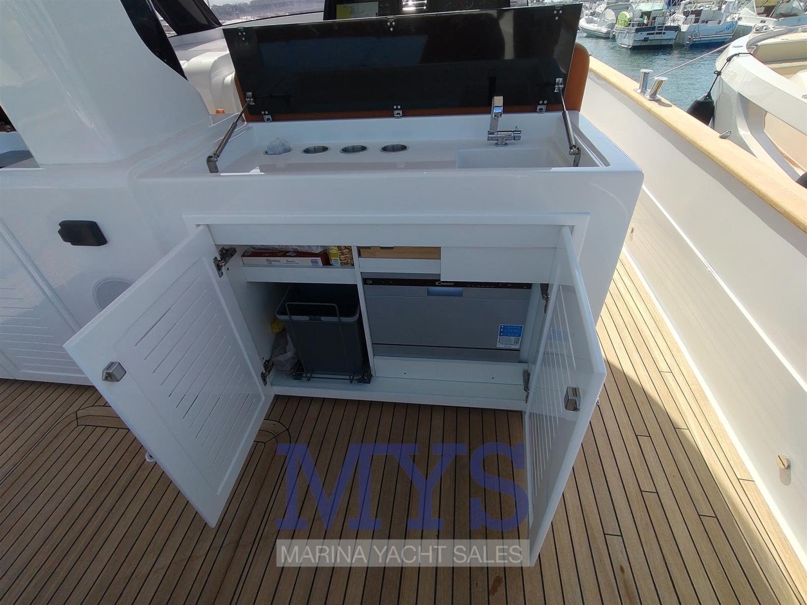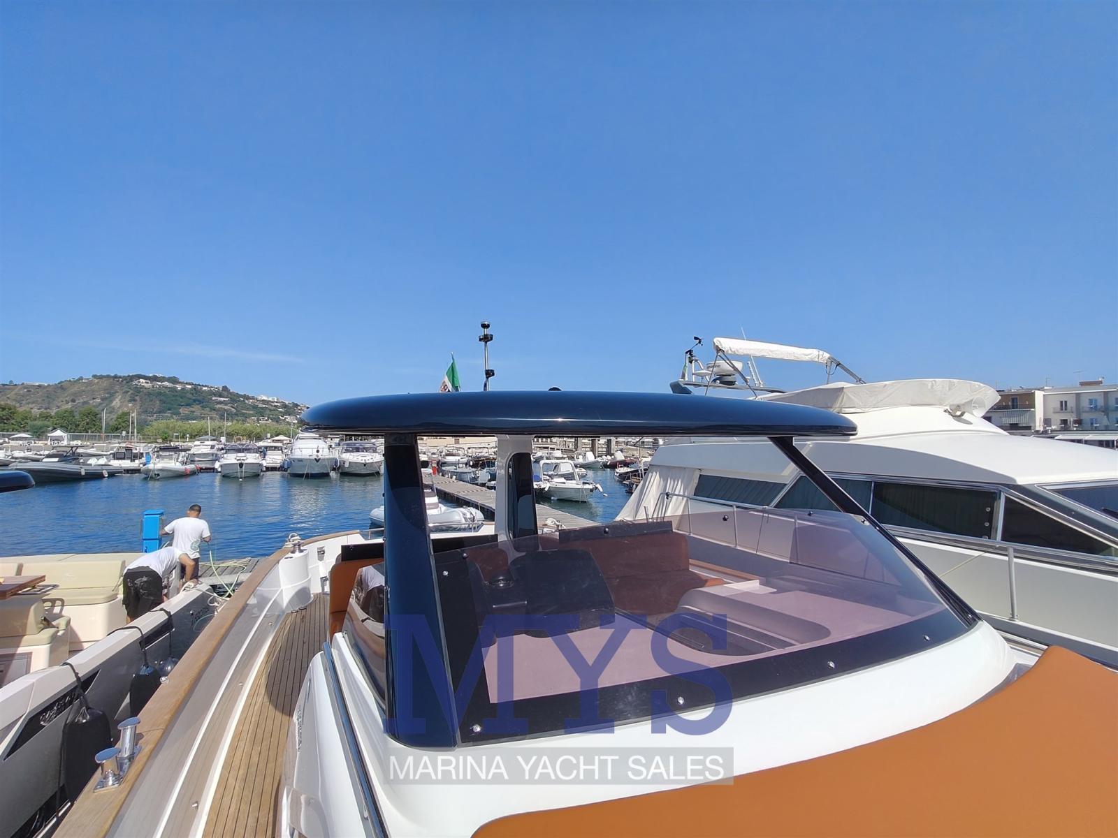 Engine Alarm, Bilge Alarm, Electric Engine Compartment Opening, Water pressure pump, 2 Folding cleats, Teak Side Decks, Special Colour, Deck Shower, Bow Thruster (SLAIPNER), 2 Hydraulic Flaps, Hard top, Fire Extinguishing System, Flaps Indicators, Washbasin in the cockpit, Courtesy Lights, Gangway (ELETTRICA), Platform, Automatic Bilge Pump, Teak deck, Entry door, Teak Cockpit, Shorepower connector, Electric Windlass, Waste Water Purifier System, cockpit table (ABBATTIBILE), Horn, T-Top, 2 Stern Winches.