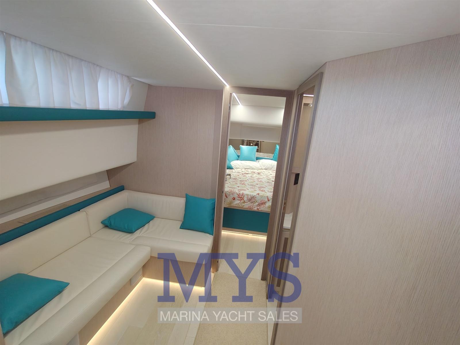 The walkaround layout allows you to move easily along the entire boat in total safety.