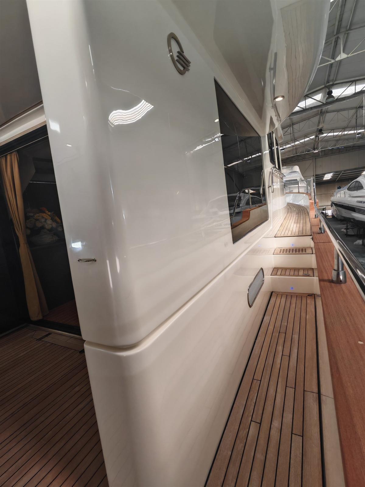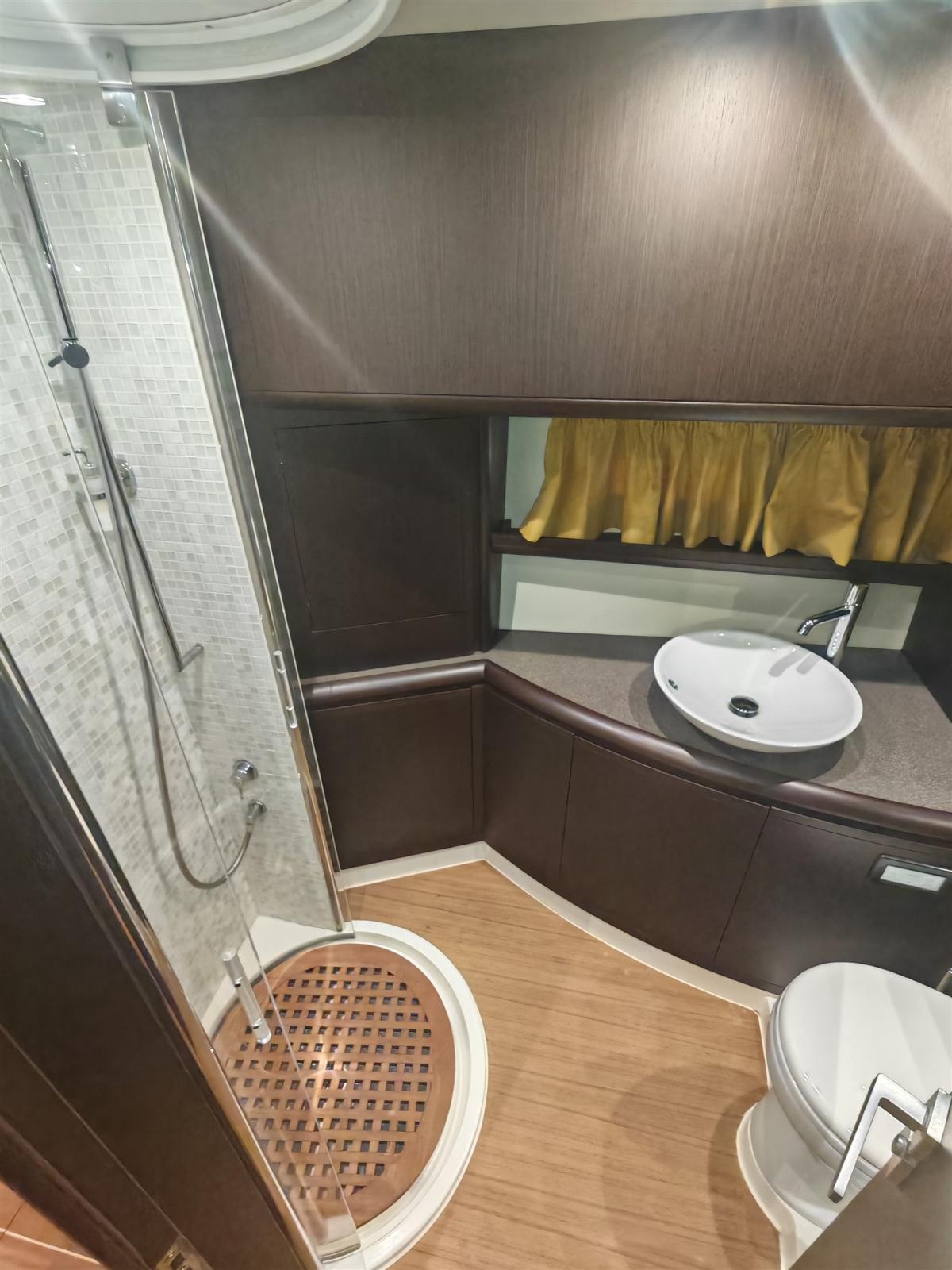 Engine Alarm, Bilge Alarm, Water pressure pump, 4 Batteries (agosto 2023), Teak Side Decks, Deck Shower, Twin Steering, Directional Spotlight, Hydraulic Flaps, Fire Extinguishing System, Flaps Indicators, Courtesy Lights, Gangway, Platform (in teak abbatibile), Entry door (con apertura totale), Side door, Teak Cockpit, Shorepower connector, Voltage Rectifier, Electric Windlass, swimming ladder, cockpit table, Horn, T-Top (in vtr sul fly), 2 Winch Electric.