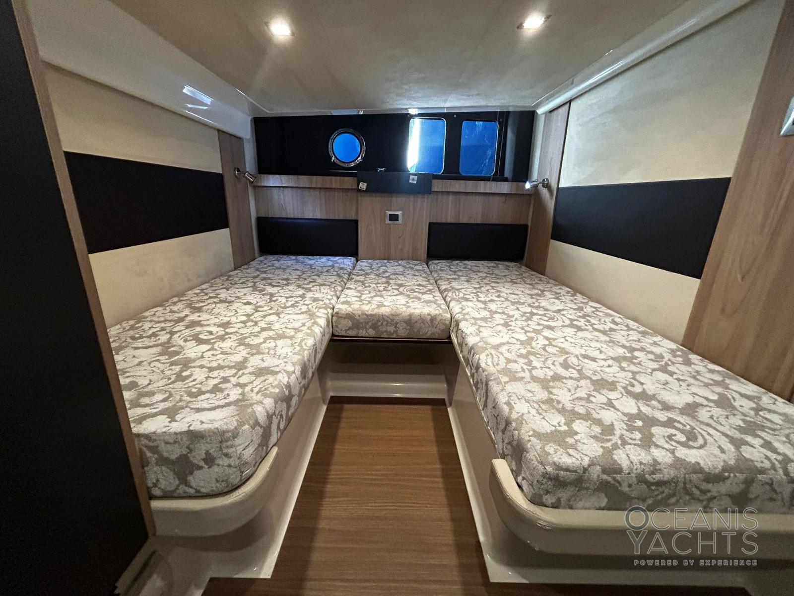 Rooms. 3-stage hydraulic walkway 3 m Hydraulic platform up/down 28 cm under water and capacity 130 kg. Opening garage aft (above sundeck). Dinette saloon table convertible into a bed with cushion