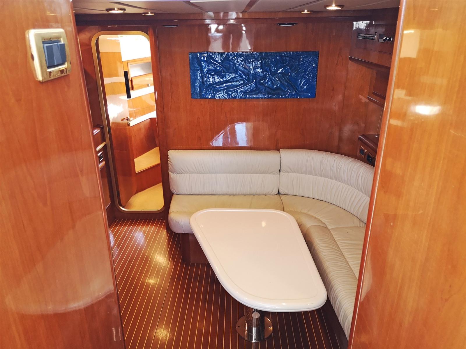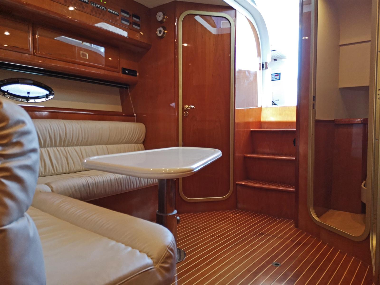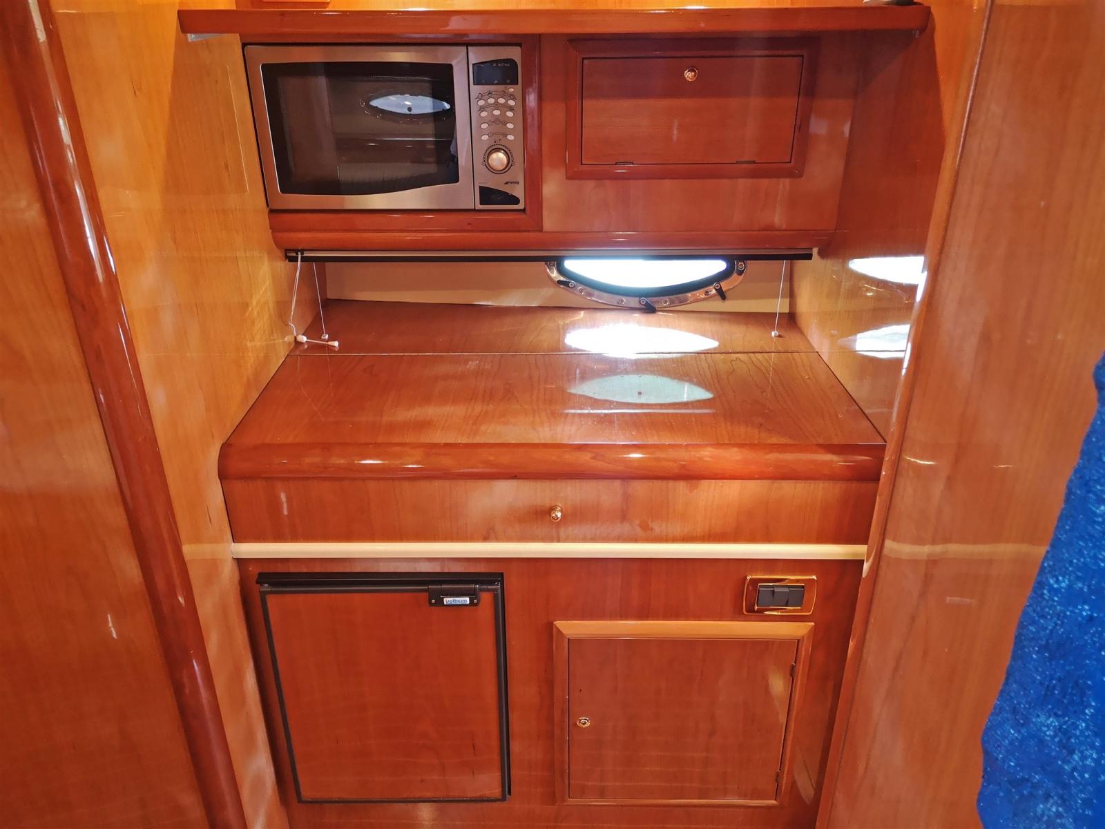 Cabinet with concealed galley in the cockpit complete with sink, induction hob and refrigerator