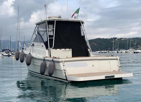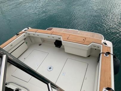 The 3B CRAFT 270 is excellently equipped, featuring: solar panel on the hard-top, auxiliary electric engine mounted on the port shaft, full set of breathable and blackout covers including the windshield, Raymarine electronics with updated chartplotter GPS, optimized for fishing (with trolling valve, live bait tank, seawater pump in the cockpit, 2 sockets for electric reels, and tuna door). Always meticulously maintained, in 2025 the bathing platform was extended, and the teak on the platform and gunwale was renewed, along with the refurbishment of both interior and exterior upholstery, and polishing of the deckhouse and topsides. In 2024, the steel risers, seacocks, and LED lighting were replaced, together with the overhaul of the turbines and engine servicing. - Check the full brochure, the video and the sea trial on our Web site MEDIA SHIP