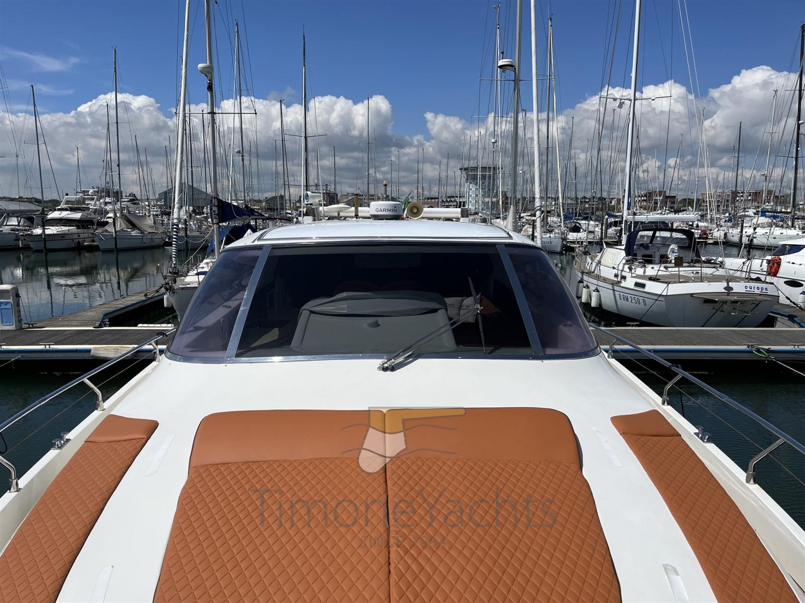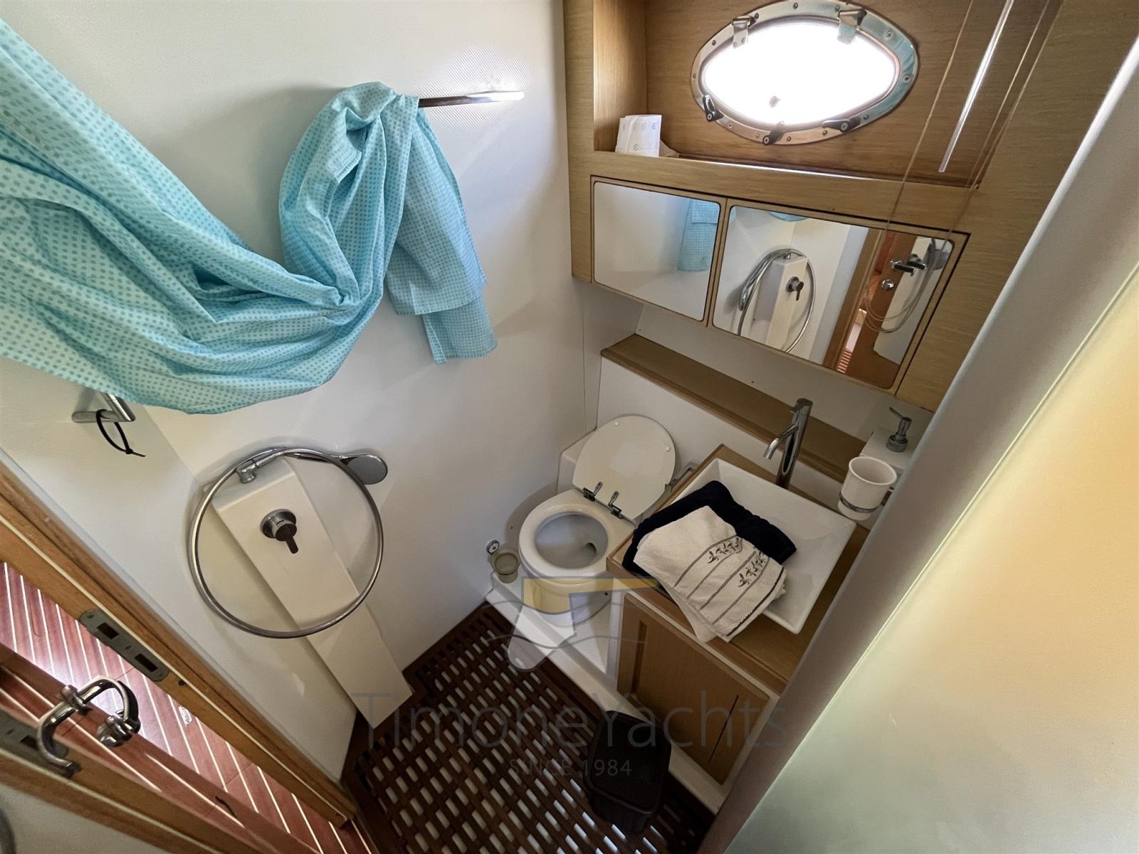 Water pressure pump, Teak Side Decks (Filteak), Special Colour (Blue gelcot), Deck Shower, Hydraulic Flaps, Hard top, Fire Extinguishing System, Flaps Indicators, Washbasin in the cockpit, Courtesy Lights, Underwater lights, Gangway (a scomparsa), Platform, Automatic Bilge Pump, Manual Bilge Pump, Teak Cockpit (filitek), Shorepower connector, Voltage Rectifier, Electric Windlass, swimming ladder, Stern Winches, Bow Winches.