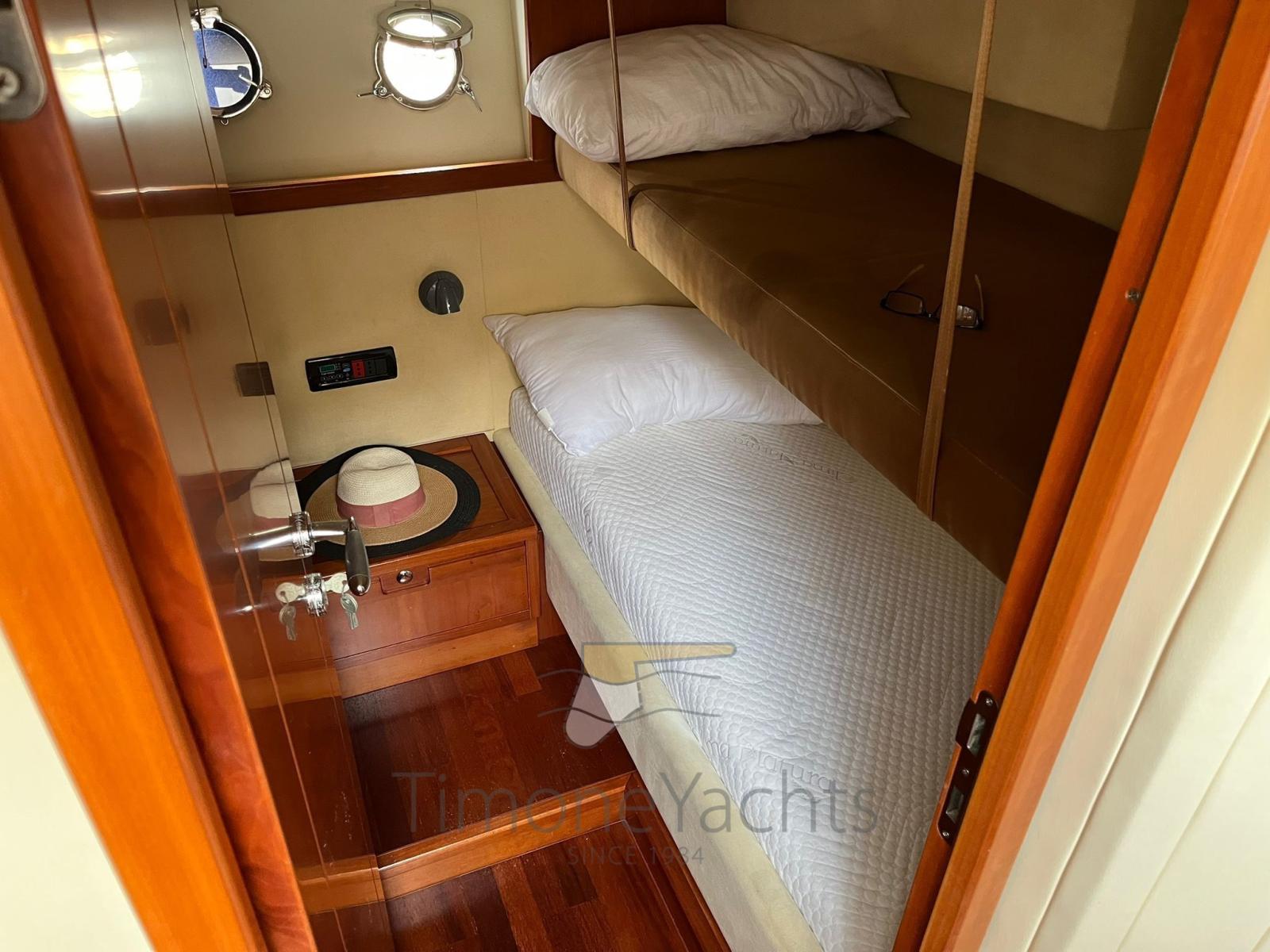 From the Pietà shipyard of superior quality, hard top 58 exceptional in everything, very generous cockpit equipped with all comforts, on the lower deck another galley and another dining table for 8 people, 3 large cabins with three bathrooms, 1 aft cabin for crew or guests (IT IS POSSIBLE TO TRANSFORM THE 2 BUNK BEDS INTO A DOUBLE FOR GUESTS)