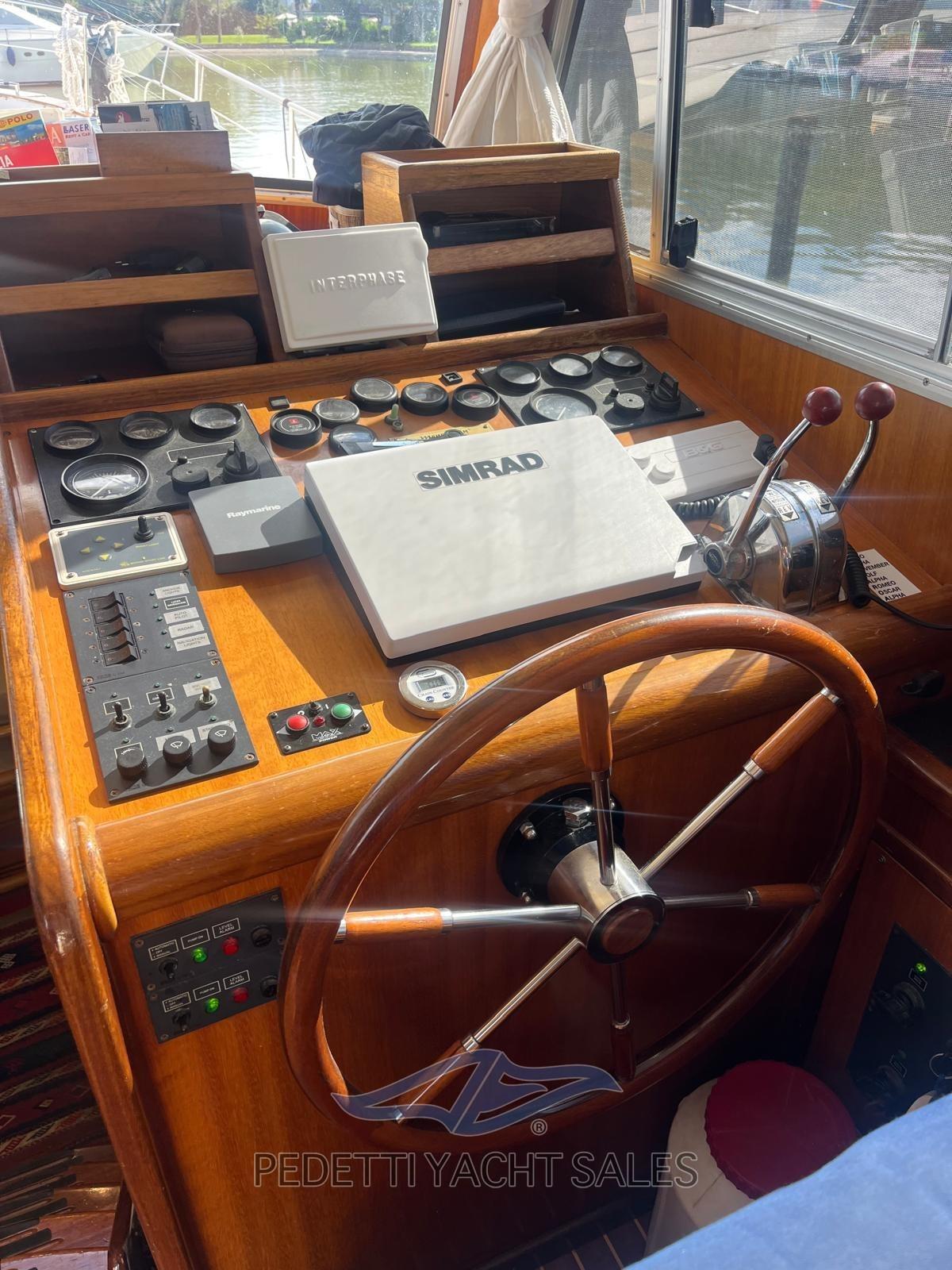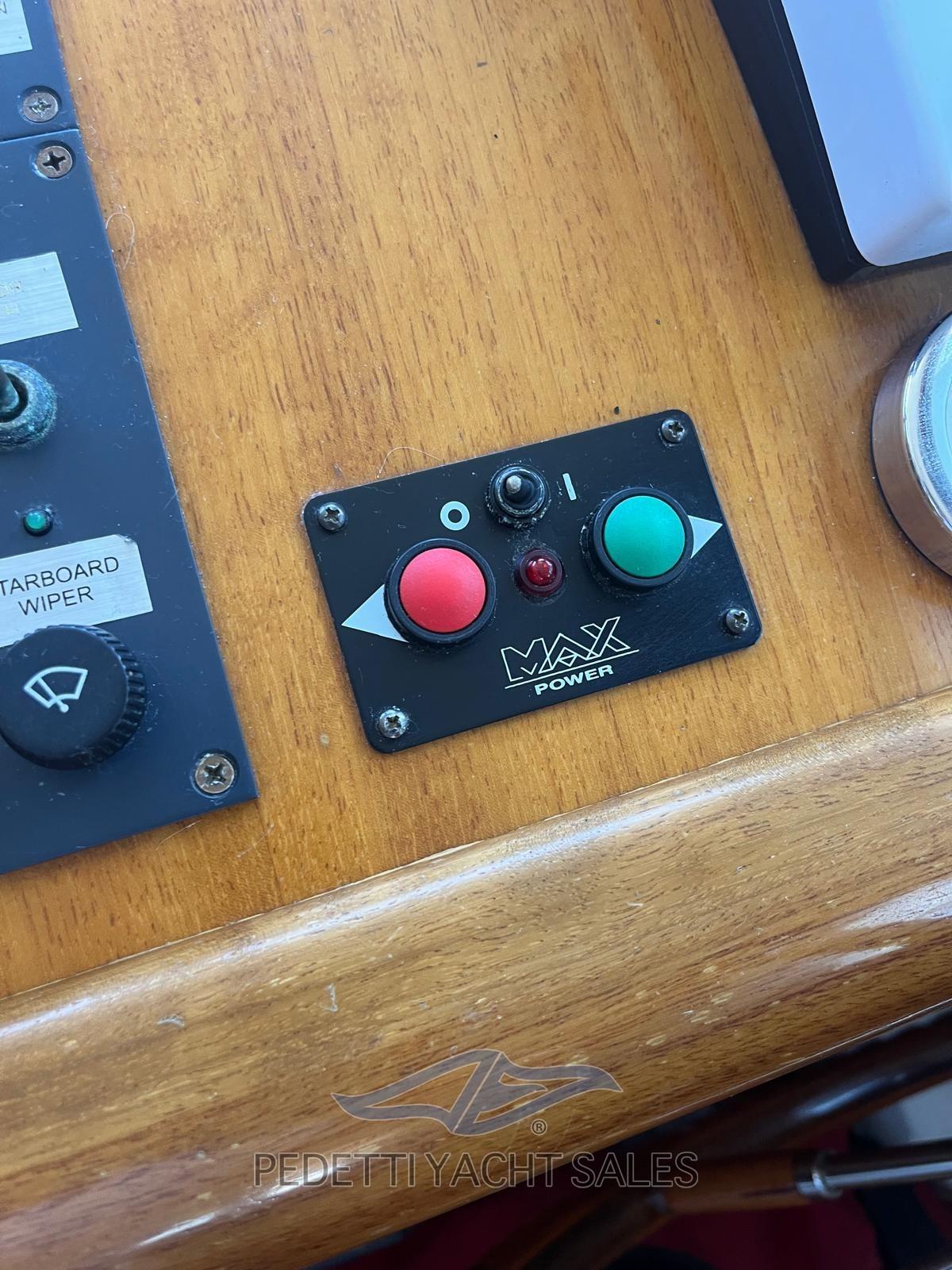 Rudder angle indicator, Radar Antenna, Electronic engine control, Chain counter, DSC vhf (BQG), GPS (SIMRAD), Plotter with GPS antenna, Radar (Raymarine).