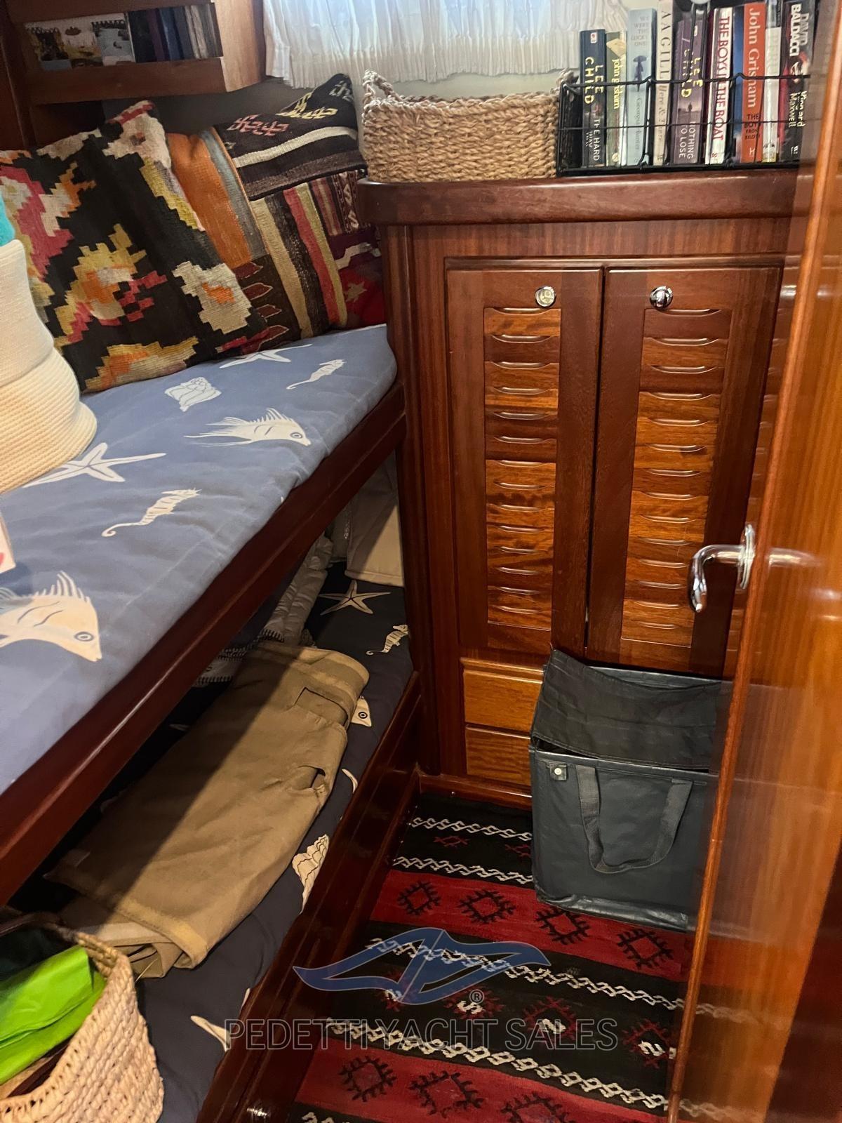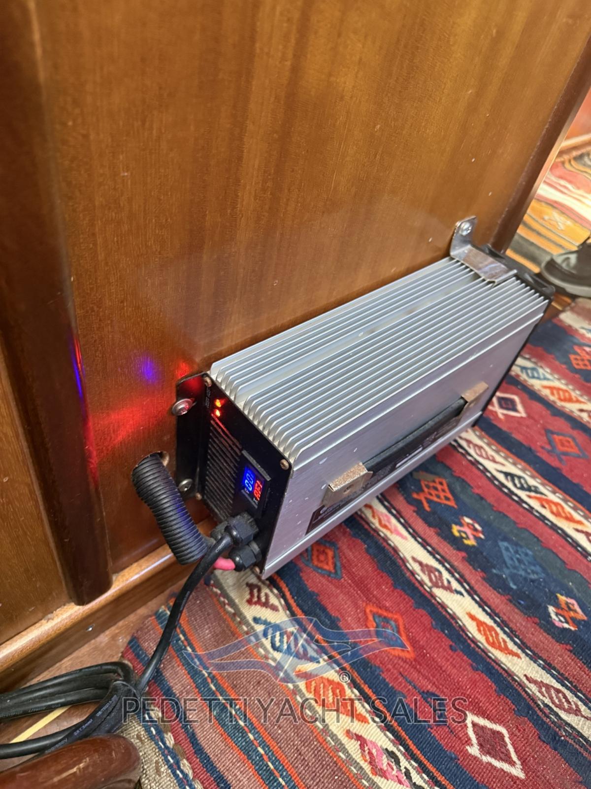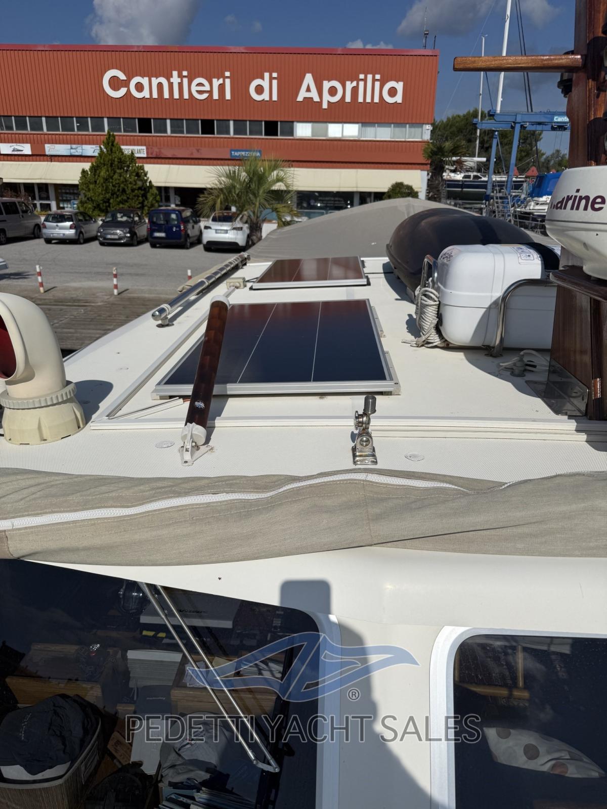 Fume/Gas Detector, Engine Alarm, Bilge Alarm, Water pressure pump, Batteries (normali e doppie al litio alimentate anche da pannelli fotovoltaici), Teak Side Decks, Shore power cable, Guard rail, Safety rail, Deck Shower, Twin Steering, Hydraulic Flaps (N°2), Fire Extinguishing System, Anchor Chain Washdown, Courtesy Lights, Underwater lights, Battery Monitor, Outboard engine for tender, Solar panels (doppi con due alimentazioni differenti), Gangway, Platform, Automatic Bilge Pump, Manual Bilge Pump, Entry door, Teak Cockpit, Shorepower connector, Voltage Rectifier (2/220), Electric Windlass, swimming ladder, Saddles for tender, Waste Water Purifier System, cockpit table, Living Room Foldable Table, Tender (2,40m con 9.9 cv), Horn, Teak Deckhouse, Stern Winches.