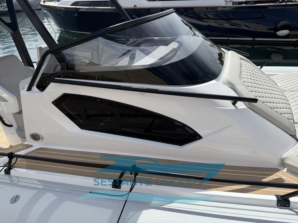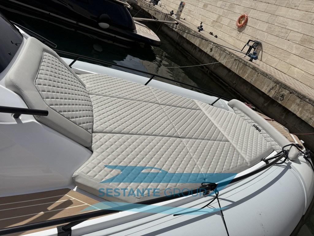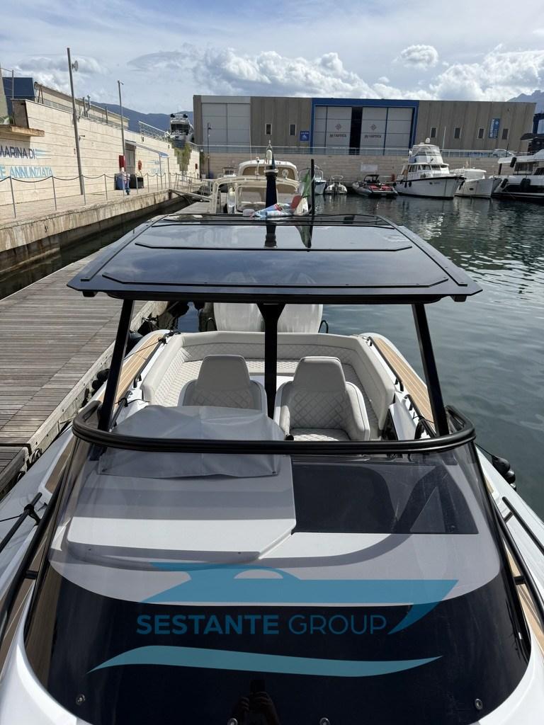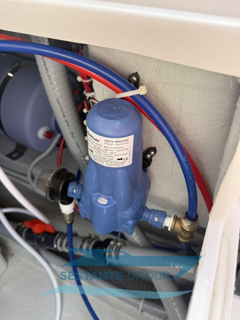 Engine Alarm, Alternator, Water pressure pump, Folding cleats, Teak Side Decks, Guard rail, Deck Shower, Anchor mount, Washbasin in the cockpit, Courtesy Lights, Fenders, 2 Platform, Automatic Bilge Pump, Teak deck, Teak Cockpit, Shorepower connector, Electric Windlass, swimming ladder, Table (elettrico), Horn, T-Top.