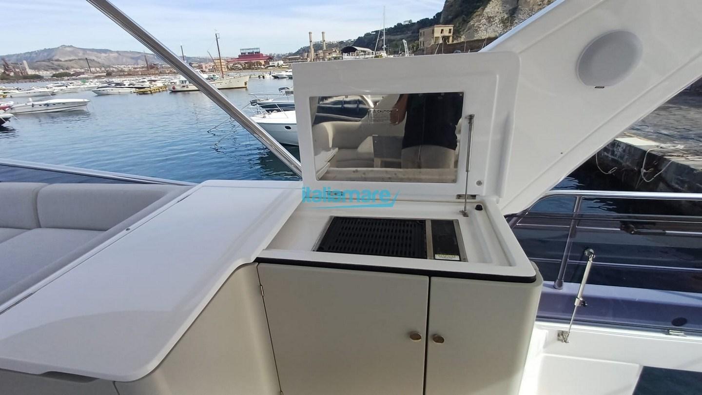 Main accessories: Air conditioning - 20kW generator - GPS - Joystick steering - Seakeeper 9 - Electric awning in the cockpit and on the flybridge - Teak on the flybridge - Teak side decks - Gangway - 2 TVs
