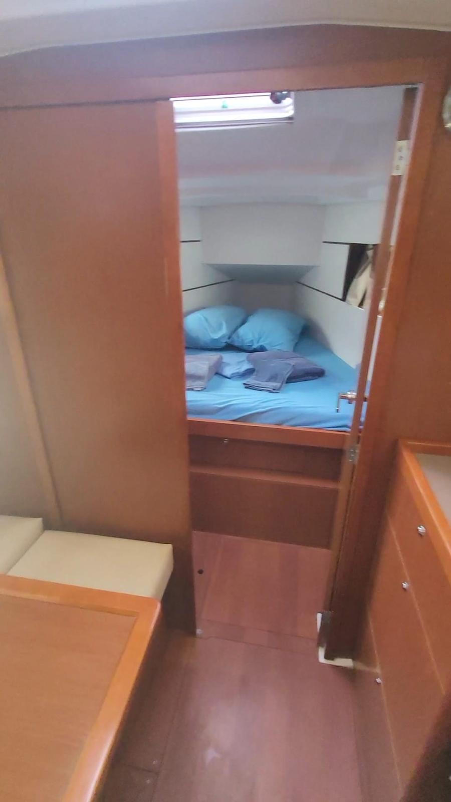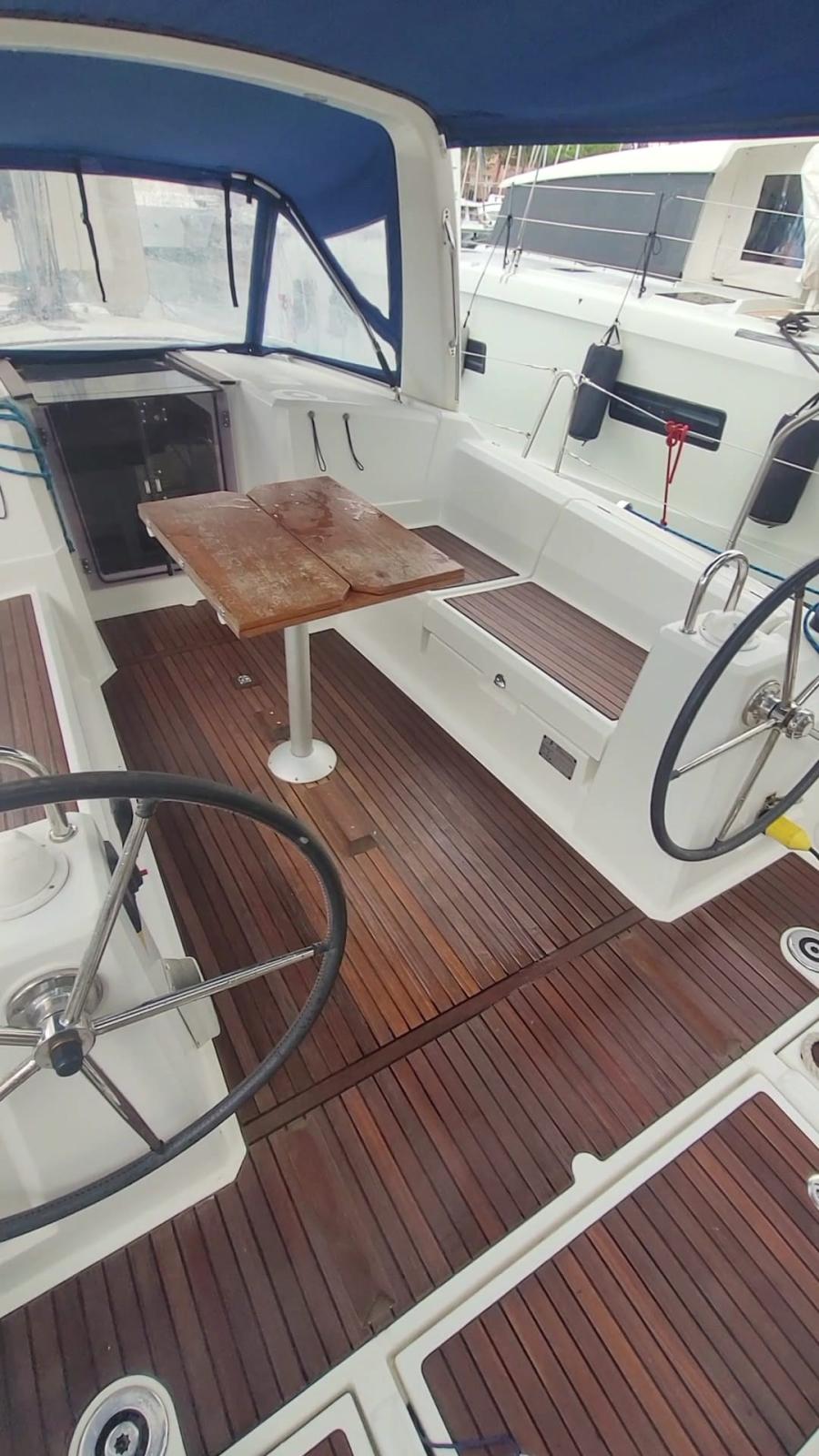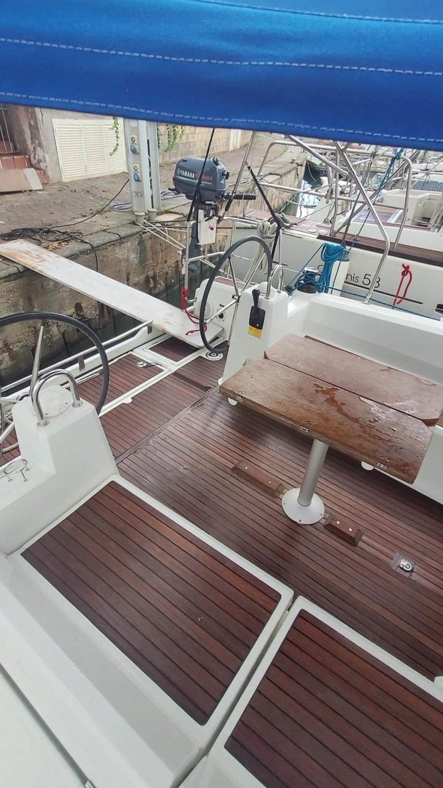Inflator - Small anchor with 15m line - Engine oil container - Awning - Spry hood - Gaffa - Fenders - Emergency anchor with 50m line - Winch cranks - Rope (1X50m; 1x25m; 3x15m) - Sailor's chair - Bathing ladder - Water hose - Water, petrol, outboard fuel tank - Gas cylinders (gas included) - Funnel - Bucket - Deck brush - Table - Outdoor shower - Work gloves - 220V cable with battery charger - Cockpit cushions - Fins Snorkel - Cockpit speakers - Windproof jacket