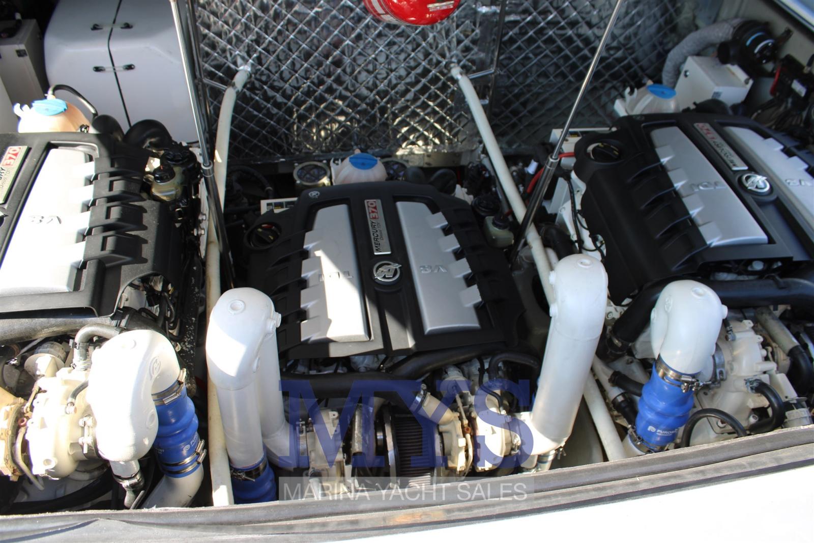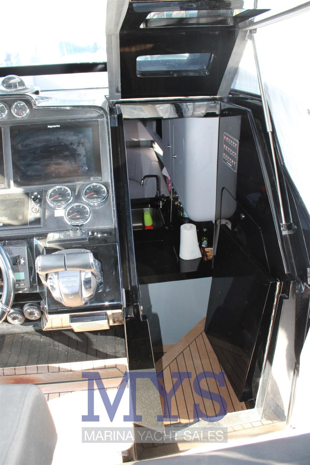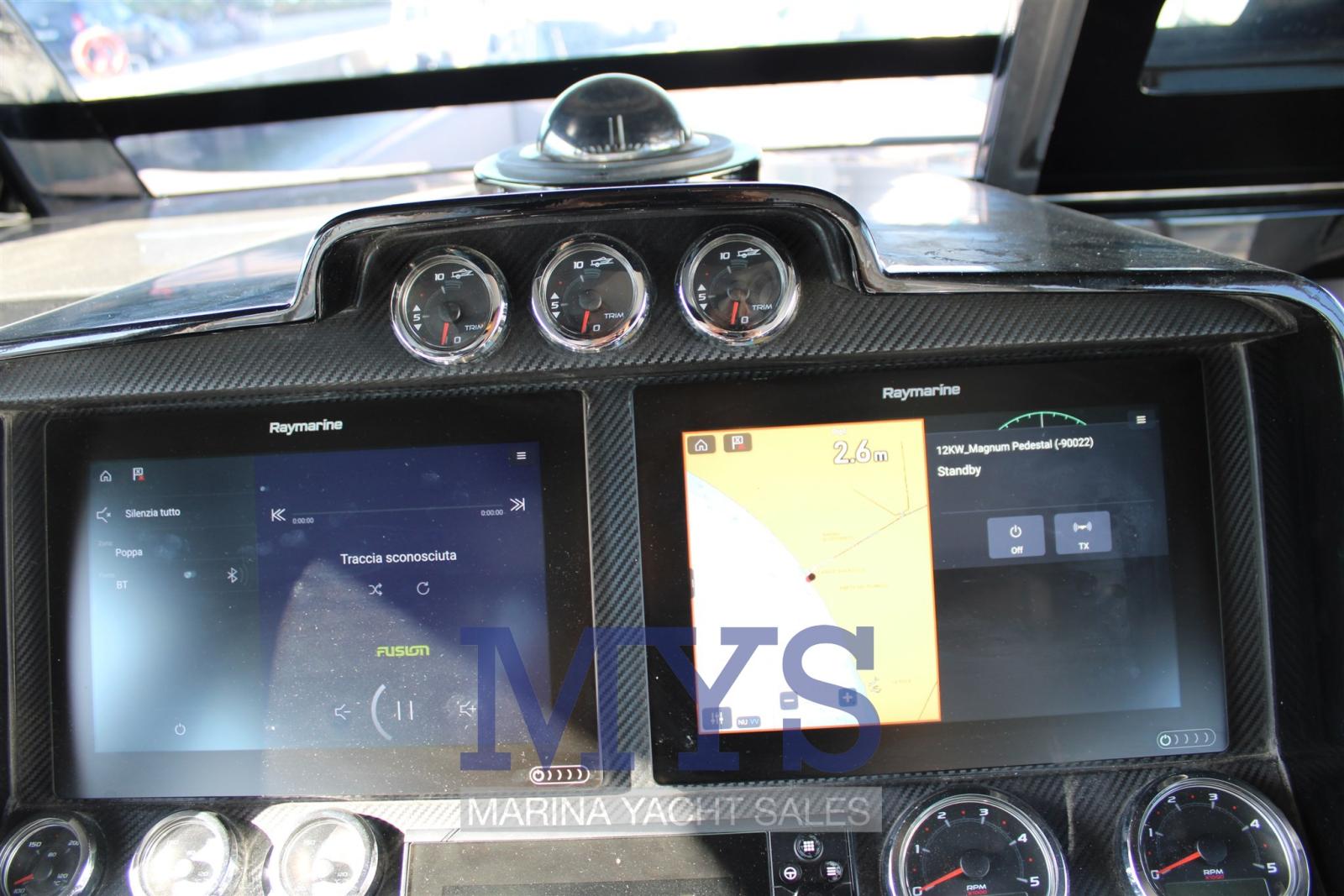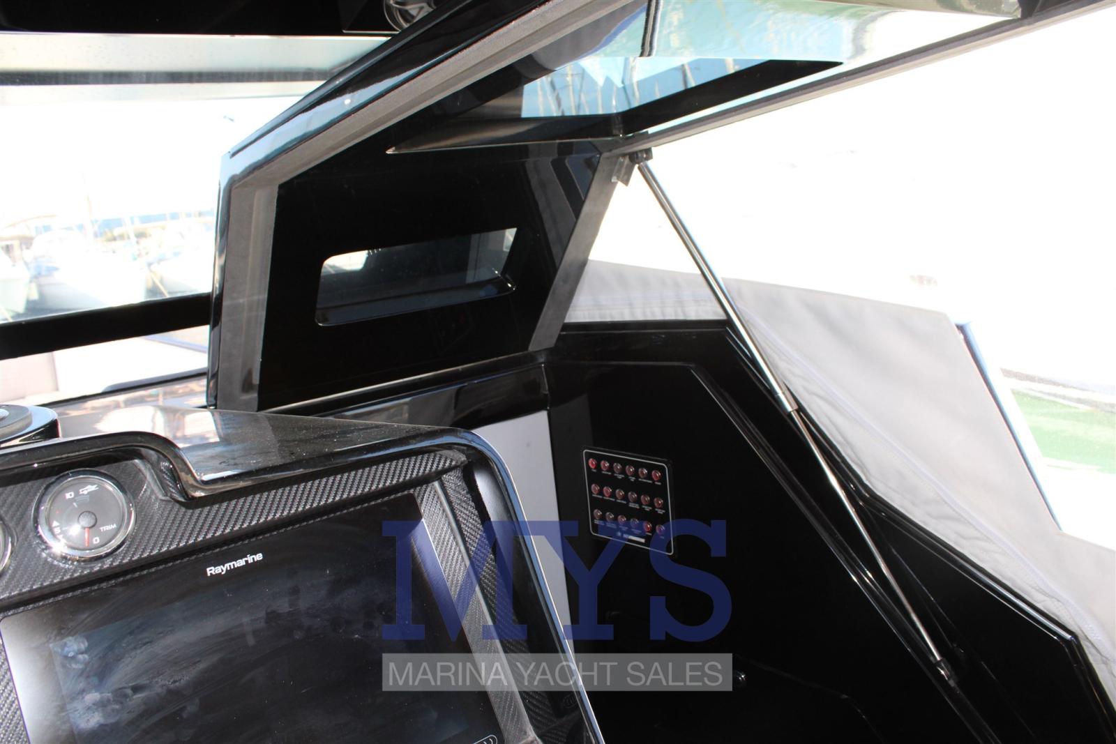 Engine Alarm, Water pressure pump, Deck Shower, Headlights fixed on the stem, Fire Extinguishing System, Courtesy Lights, Underwater lights, Platform, Automatic Bilge Pump, Teak Cockpit, Shorepower connector, Rollbar, Electric Windlass, cockpit table, Horn.