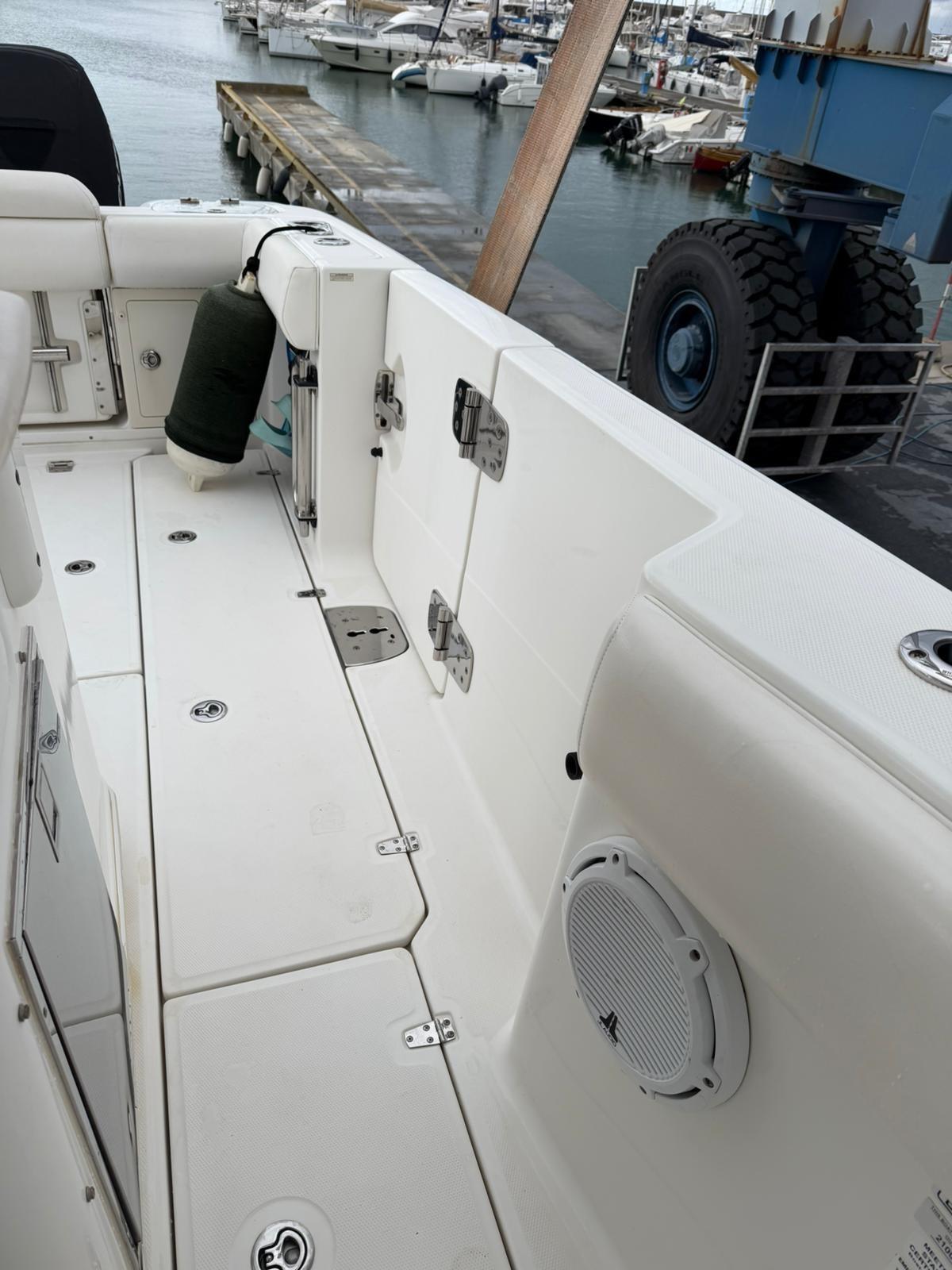Fume/Gas Detector, Engine Alarm, Bilge Alarm, Alternator, Water pressure pump, Shore power cable, Deck Shower, Directional Spotlight, Electric Flaps, Fire Extinguishing System, Flaps Indicators, Washbasin in the cockpit, Courtesy Lights, Automatic Bilge Pump, Manual Bilge Pump, Deck Wash Pump, Side door, Shorepower connector, Electric Windlass, swimming ladder, cockpit table, Horn, T-Top.