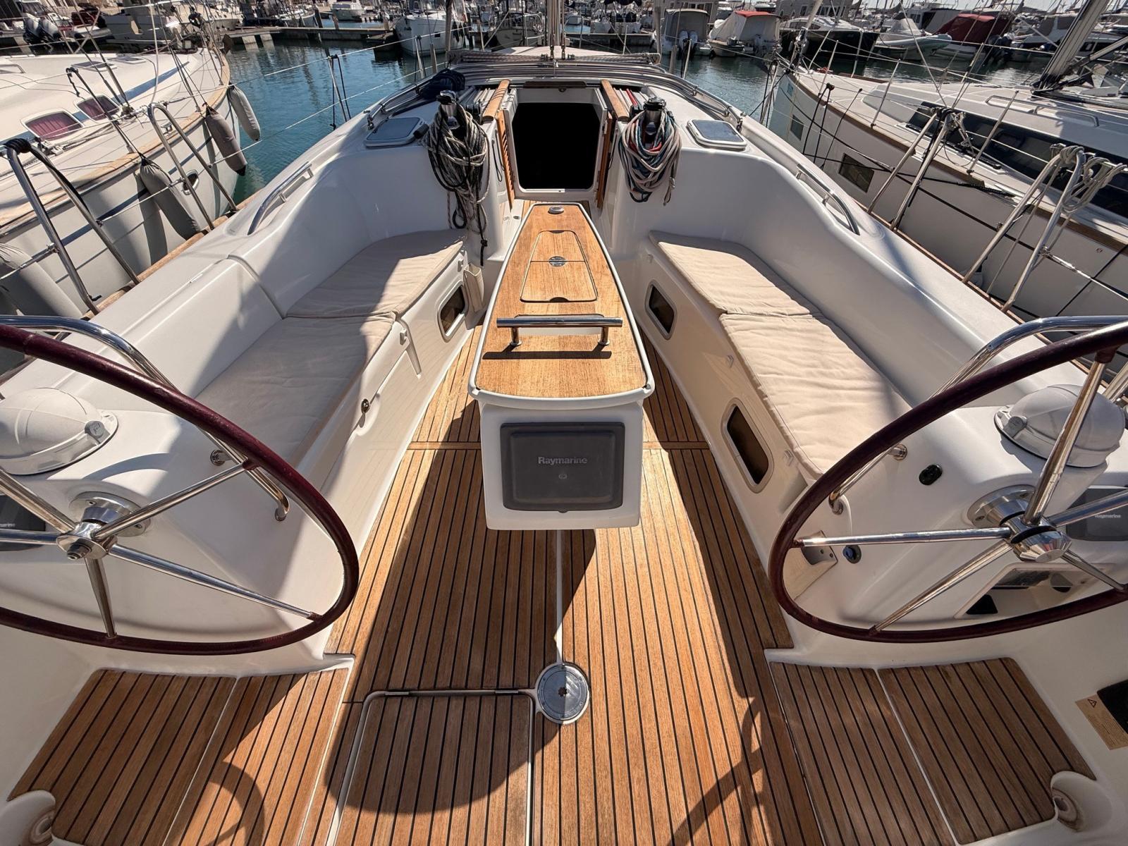 The deck is designed to ensure comfort and safety: large cockpit with double wheelhouse, easy access to the aft platform, winch at hand and well-balanced sail plan, ideal even for small crew.