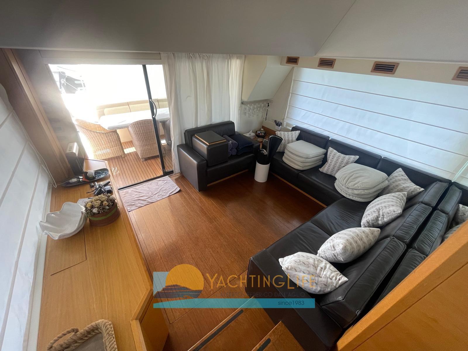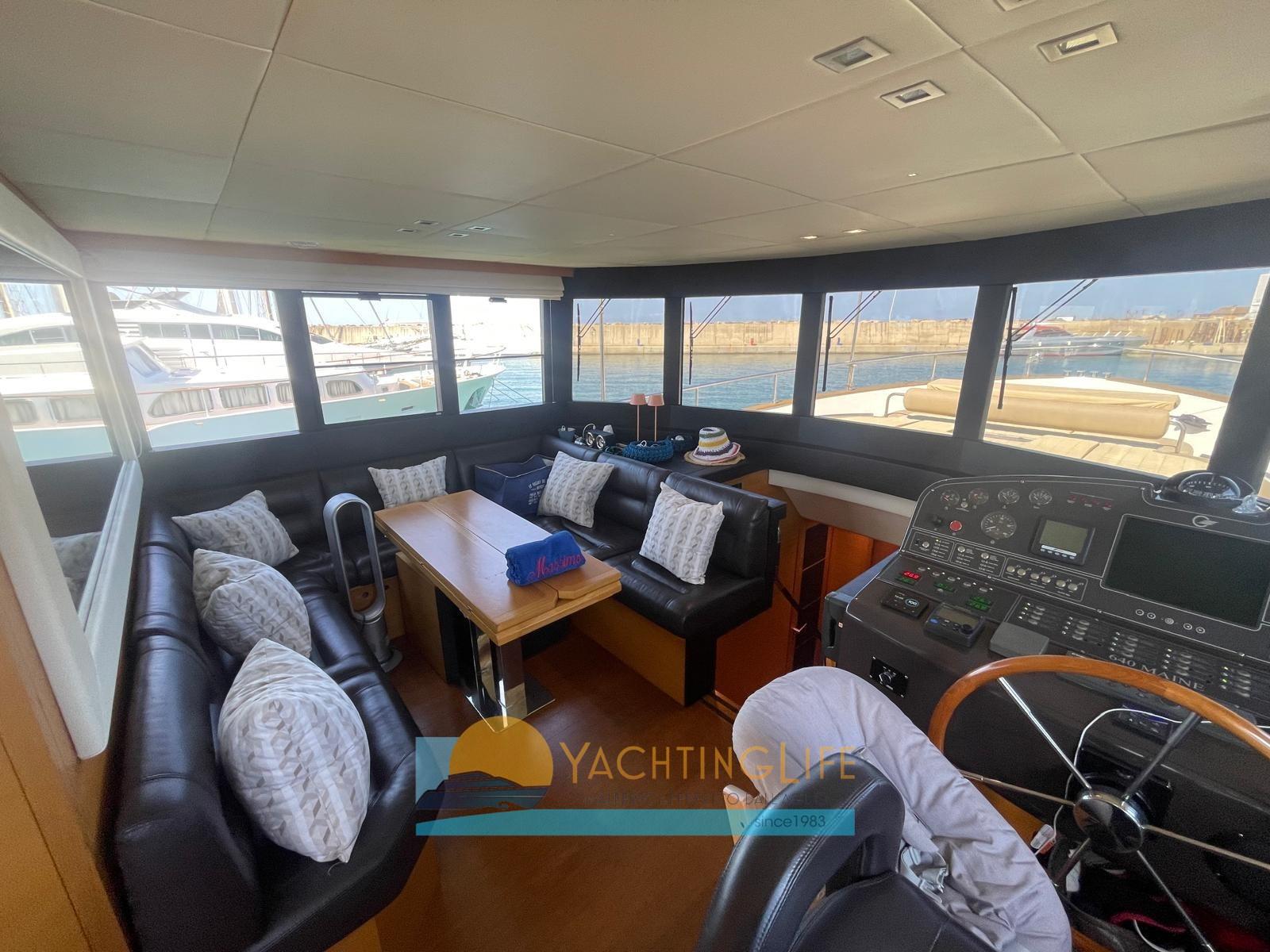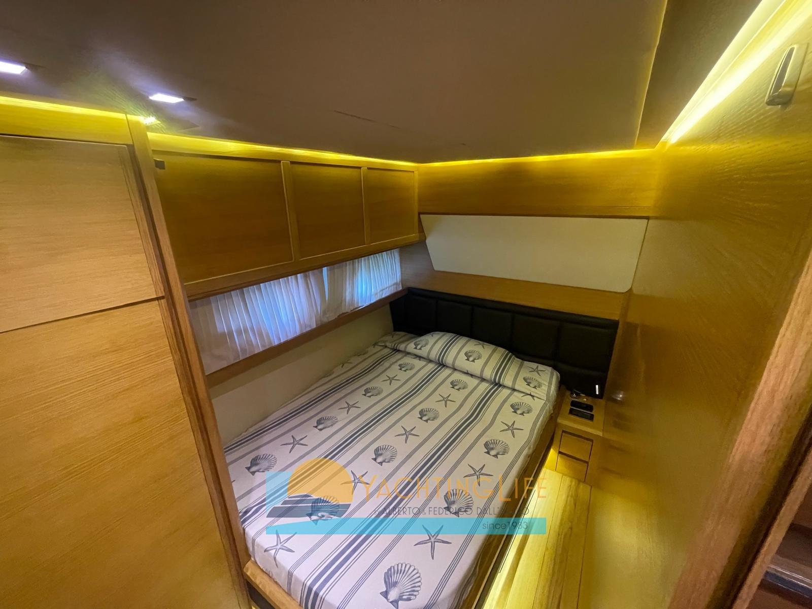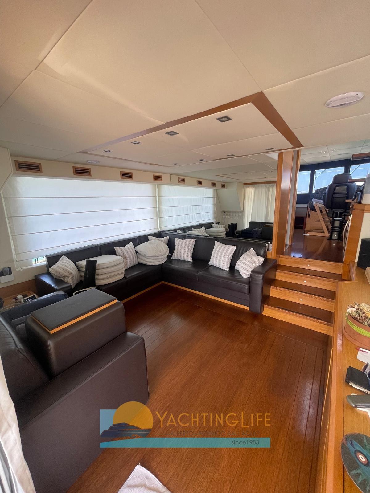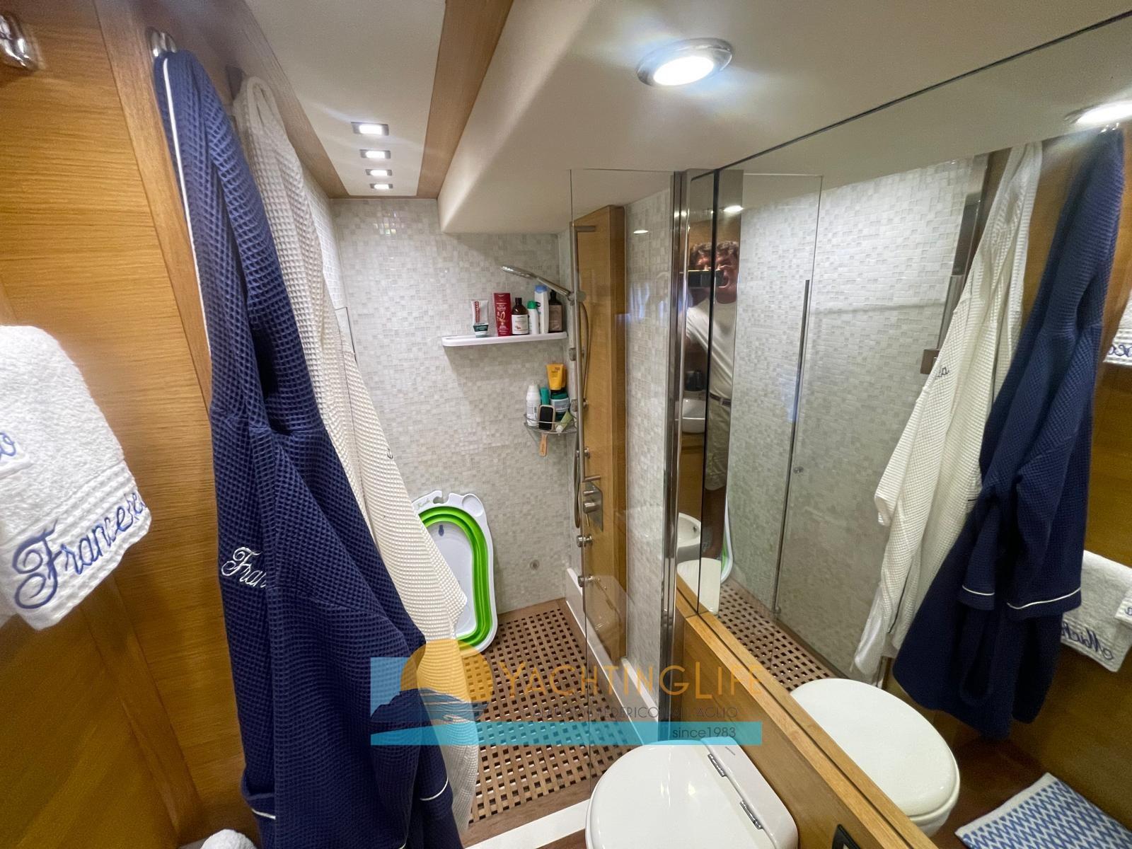 Engine Alarm, Bilge Alarm, Water pressure pump, Teak Side Decks, Deck Shower, Twin Steering, Directional Spotlight, Hydraulic Flaps, Davits for tender on fly, Fire Extinguishing System, Flaps Indicators, Anchor Chain Washdown, Courtesy Lights, Underwater lights, Gangway, Platform, Automatic Bilge Pump, Entry door, Side door, Teak Cockpit, Shorepower connector, Electric Windlass, swimming ladder, Saddles for tender, cockpit table, Tender (e motore), Horn, 2 Stern Winches.