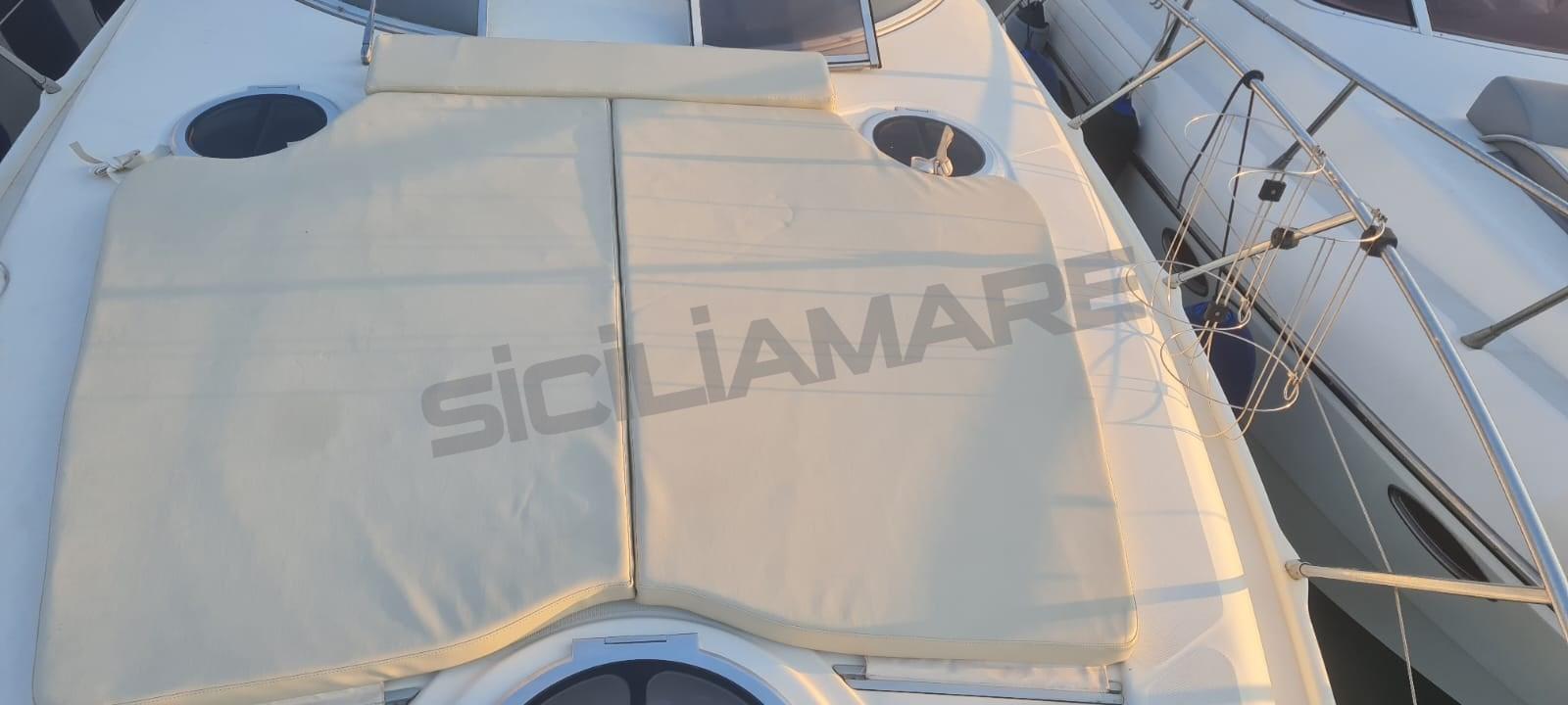 Engine Alarm, Deck Suction of Dirty Water, Water pressure pump, Deck Shower, Directional Spotlight, Hydraulic Flaps, Flaps Indicators, Washbasin in the cockpit, Courtesy Lights, Underwater lights, Fenders, Gangway (Hydraulic), Platform (maggiorata teak), Automatic Bilge Pump, Teak Cockpit, Shorepower connector, Rollbar, Electric Windlass, swimming ladder, cockpit table, Horn.