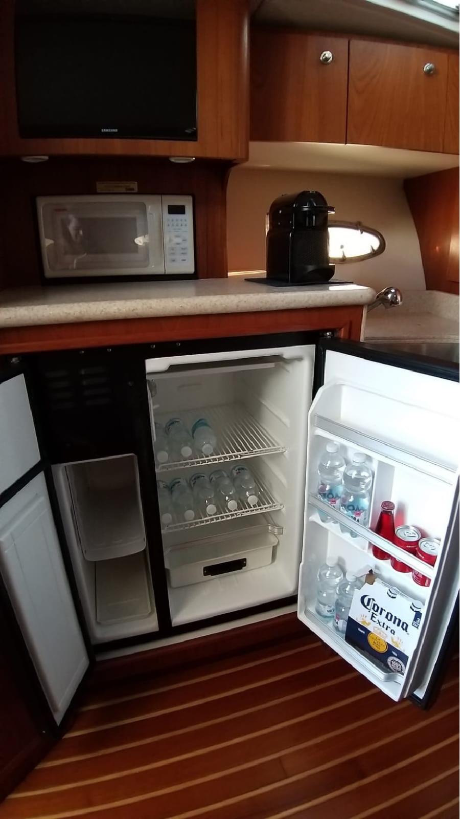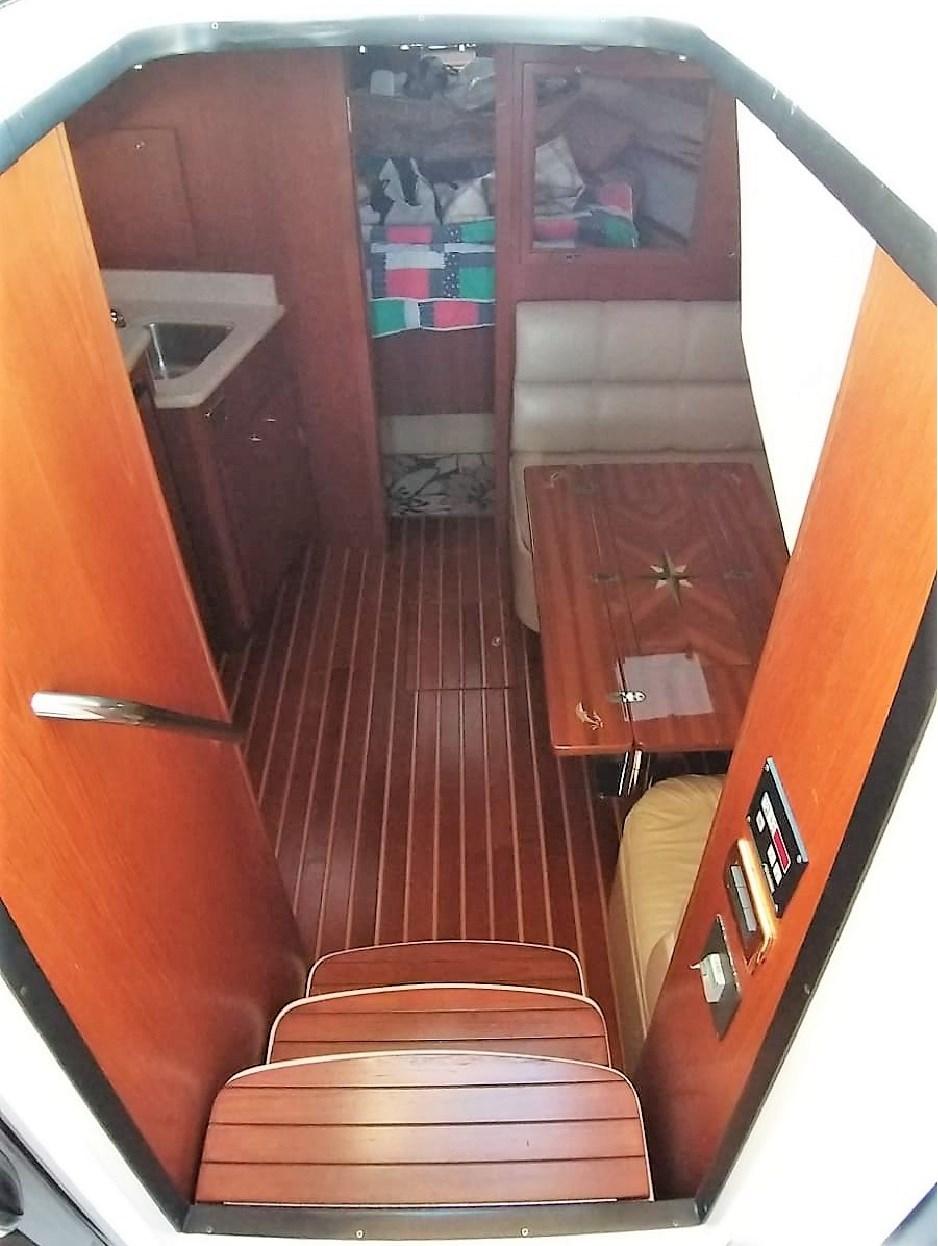 Engine Alarm, Bilge Alarm, Anchor (CON CATENA IN ACCIAIO INOX), Water pressure pump, Deck Shower, Directional Spotlight (DOPPIO), Electric Flaps, Fire Extinguishing System, Washbasin in the cockpit, Courtesy Lights, Platform, Automatic Bilge Pump, Manual Bilge Pump, Entry door (SPECCHIO POPPA), Shorepower connector, Rollbar, Electric Windlass, swimming ladder, cockpit table, Horn.