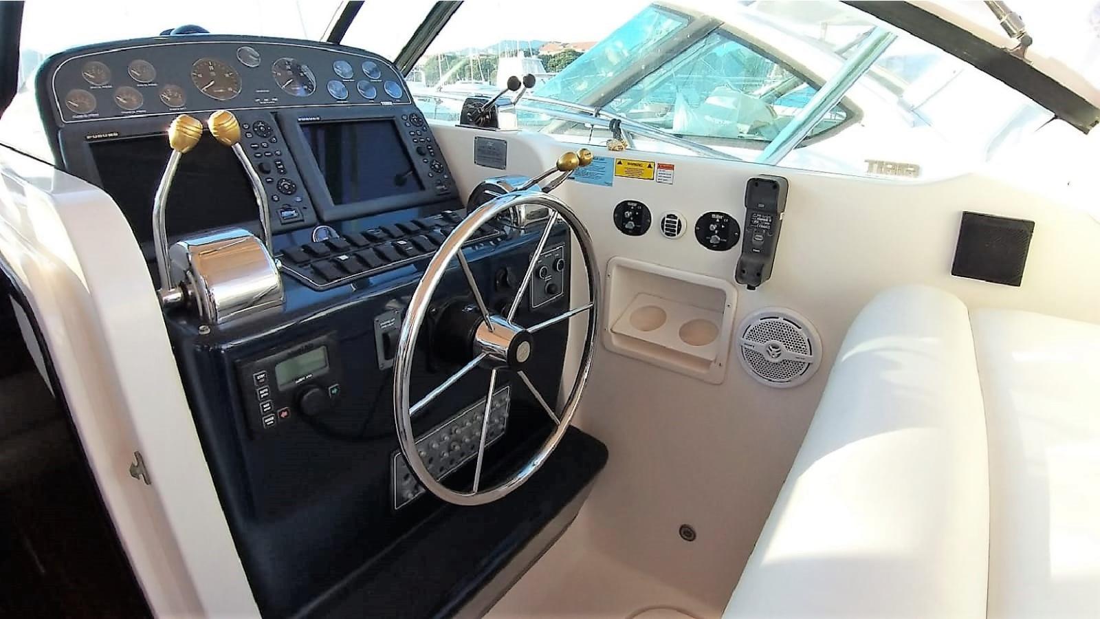 Rudder angle indicator, Radar Antenna, Electronic engine control, Depth Sounder (FURUNO), Autopilot (SIMRAD), Plotter with GPS antenna (FURUNO DOPPIO SCHERMO), Radar (FURUNO).