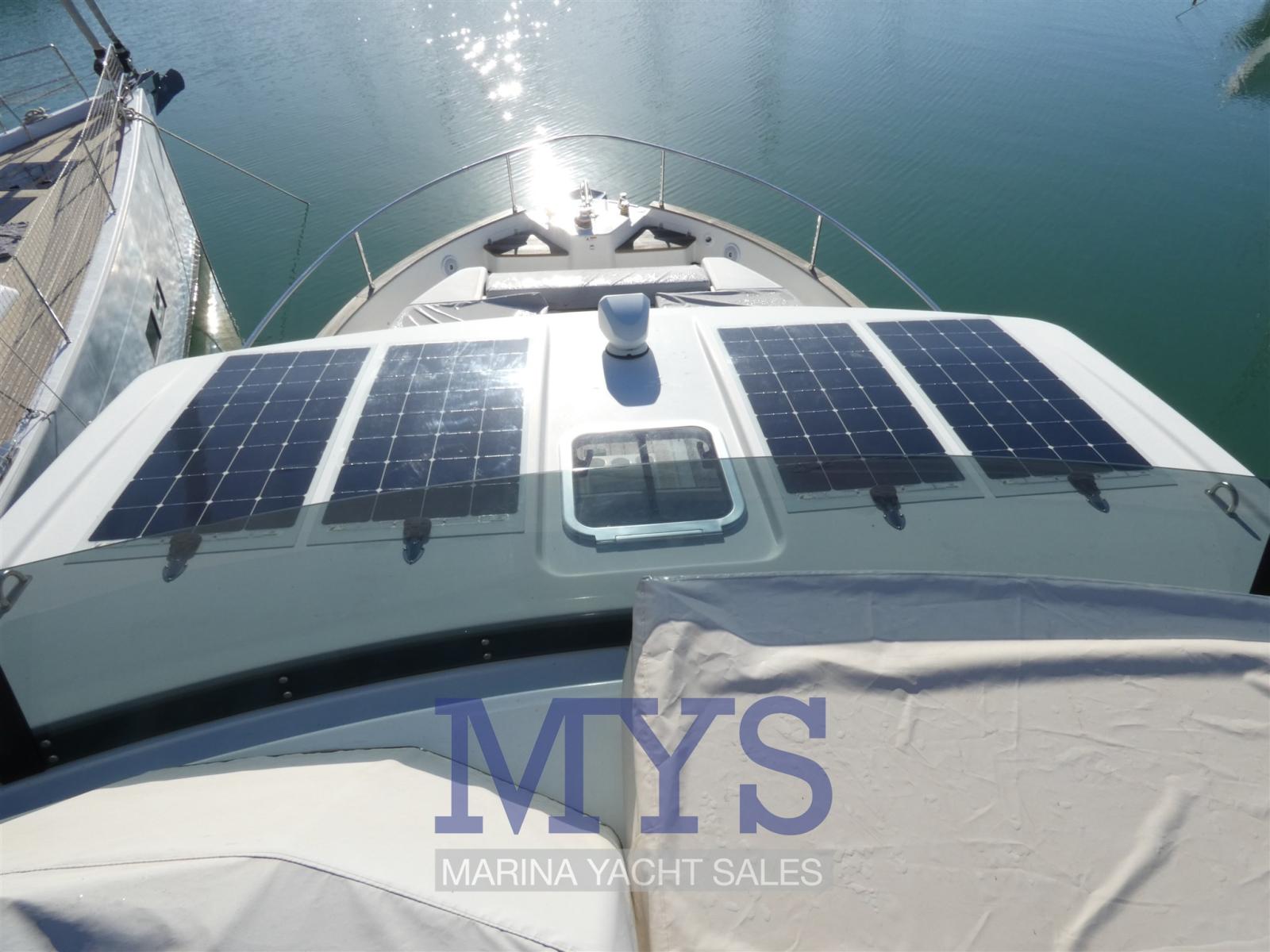 Engine Alarm, Water pressure pump, Auto-Trim, Special Colour (Scafo colore celeste), Deck Shower, Directional Spotlight, Courtesy Lights, Underwater lights, Solar panels, Gangway, Platform, Automatic Bilge Pump, Entry door, Teak Cockpit, Shorepower connector, Electric Windlass, swimming ladder, cockpit table, Living Room Foldable Table, Horn.