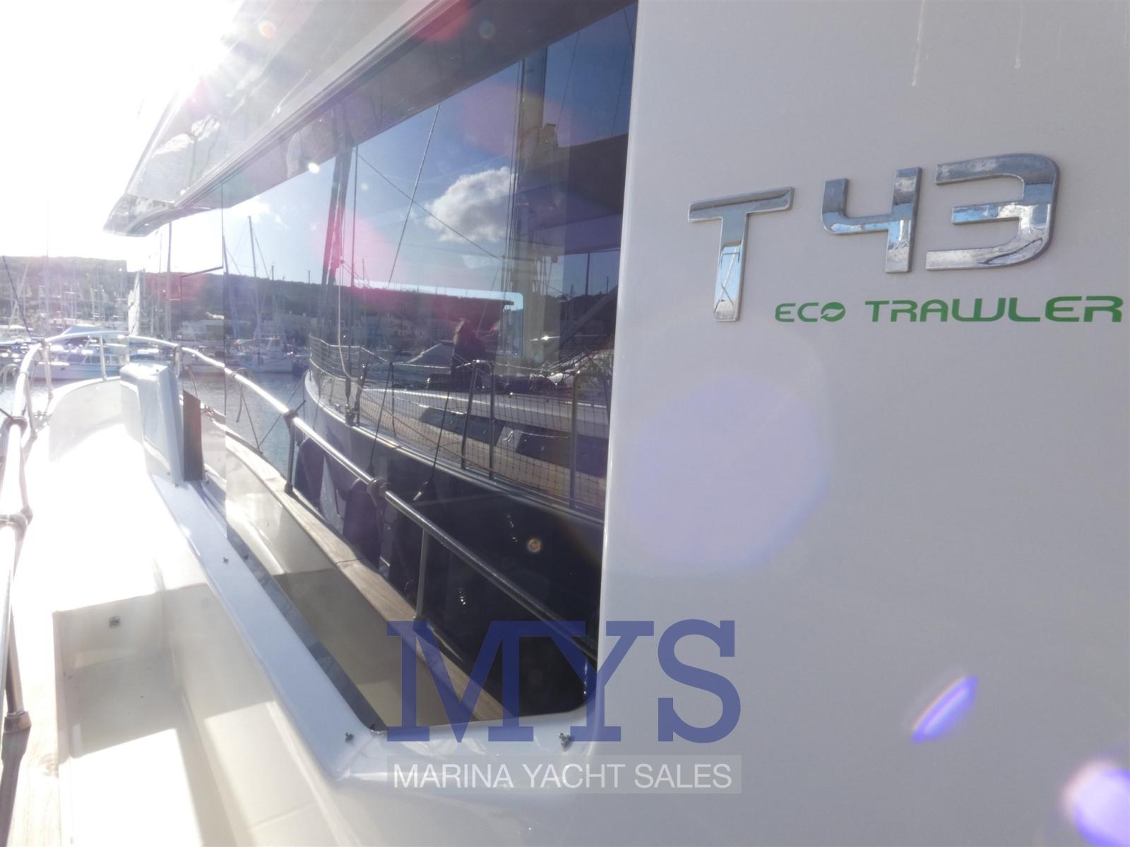 The design is characterized by linear windows and generous volumes in the bow sections determined by the choice of an almost vertical bow. The T43 Trawler makes the most of its almost 14-meter hull length and 4.37-meter maximum width.