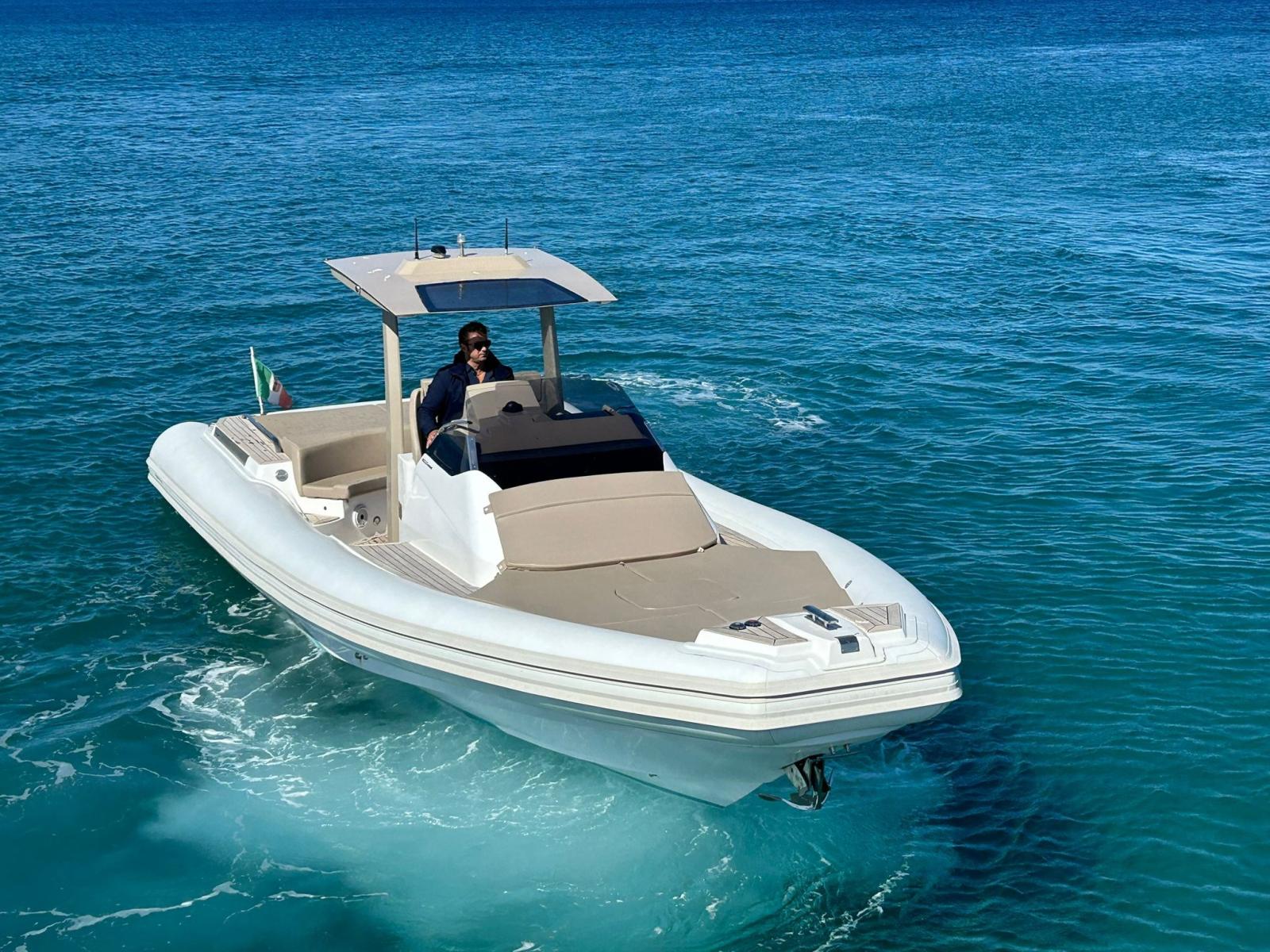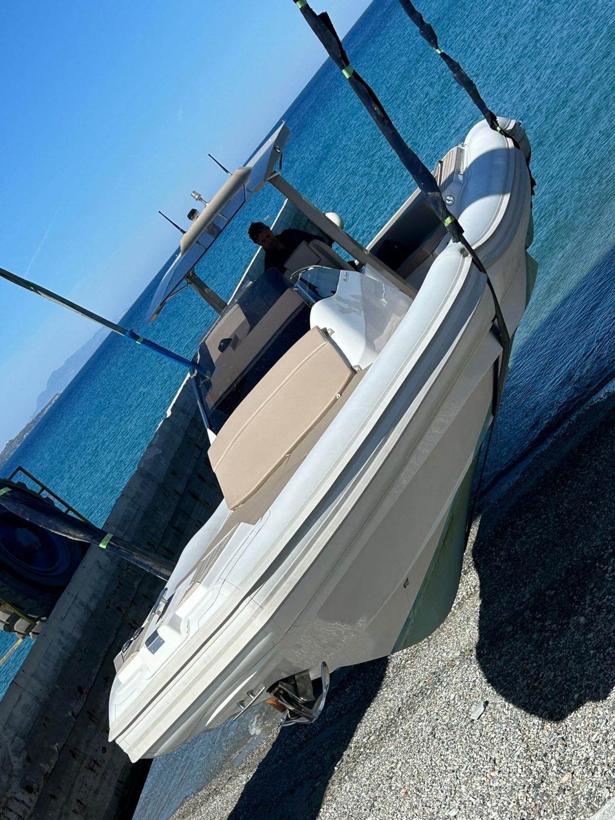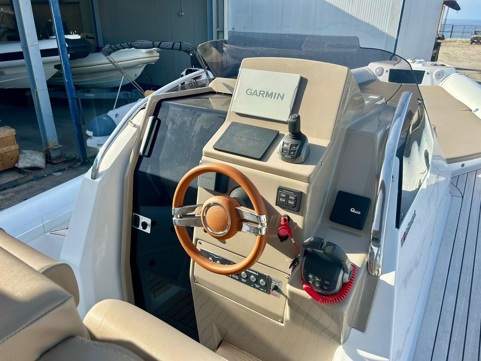Engine Alarm, Bilge Alarm, Electric Engine Compartment Opening, Auto Dynamic Trim Interceptor, Water pressure pump, Shore power cable, Washbasin in the cockpit, Courtesy Lights, Underwater lights, Teak Cockpit, Shorepower connector, Electric Windlass, cockpit table, T-Top.