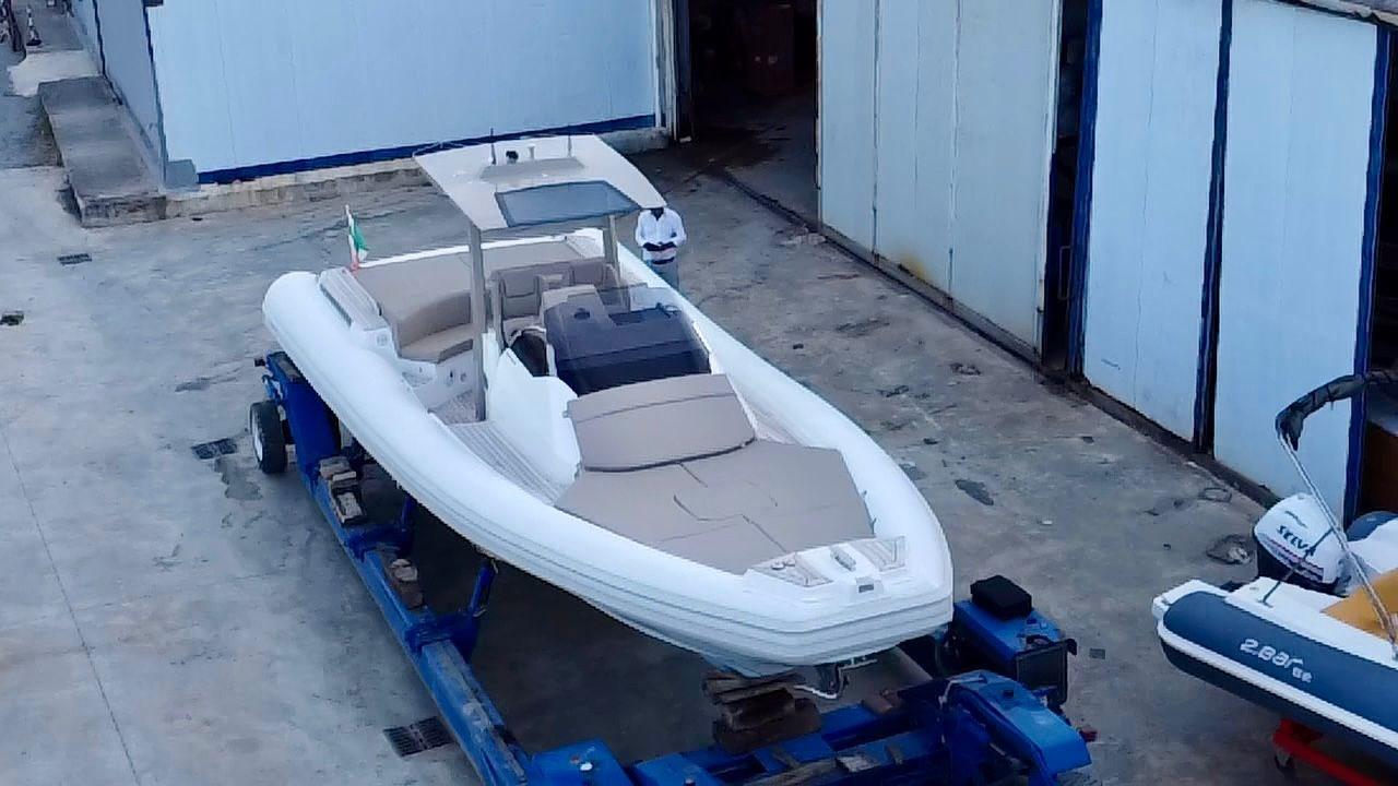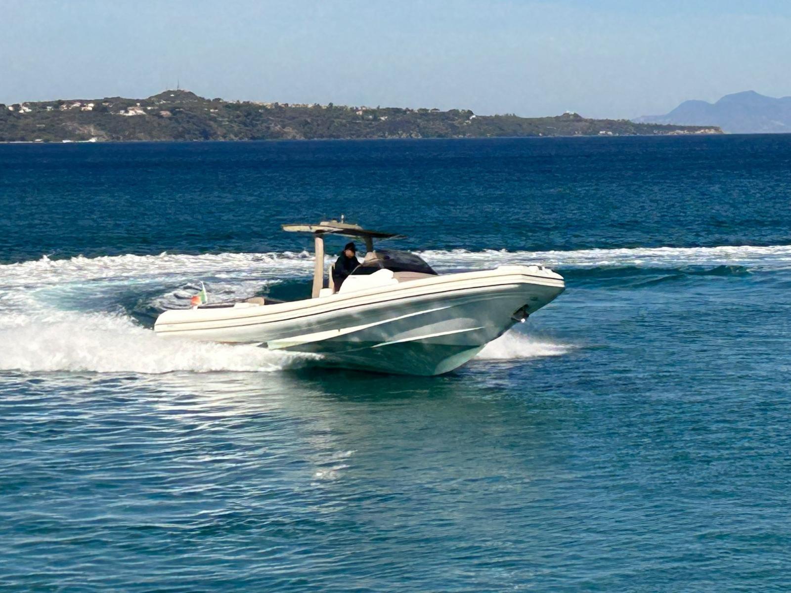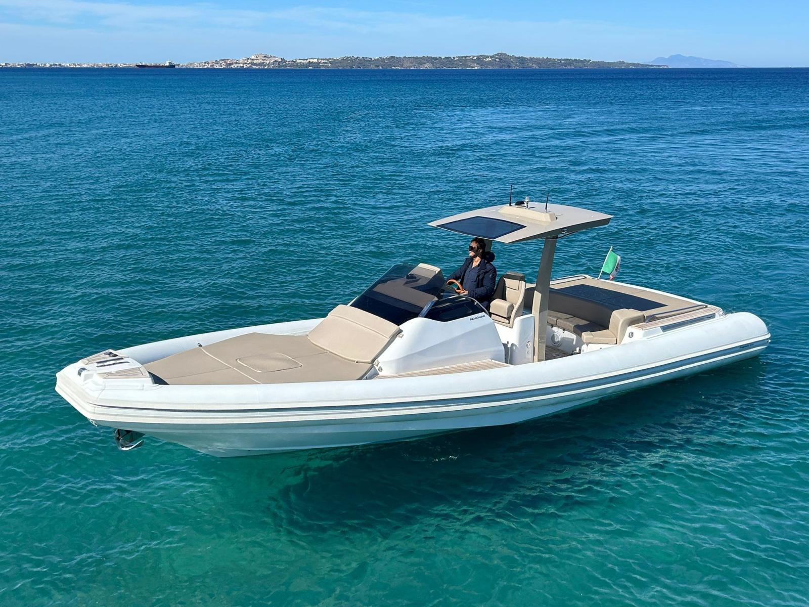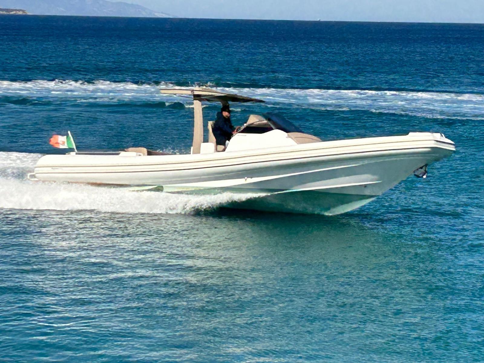 Engine Alarm, Bilge Alarm, Electric Engine Compartment Opening, Auto Dynamic Trim Interceptor, Water pressure pump, Shore power cable, Washbasin in the cockpit, Courtesy Lights, Underwater lights, Teak Cockpit, Shorepower connector, Electric Windlass, cockpit table, T-Top.