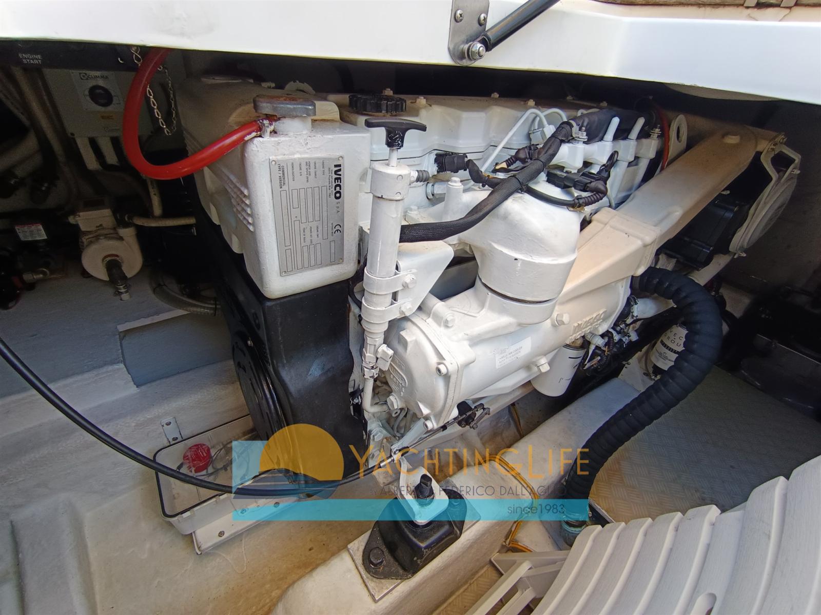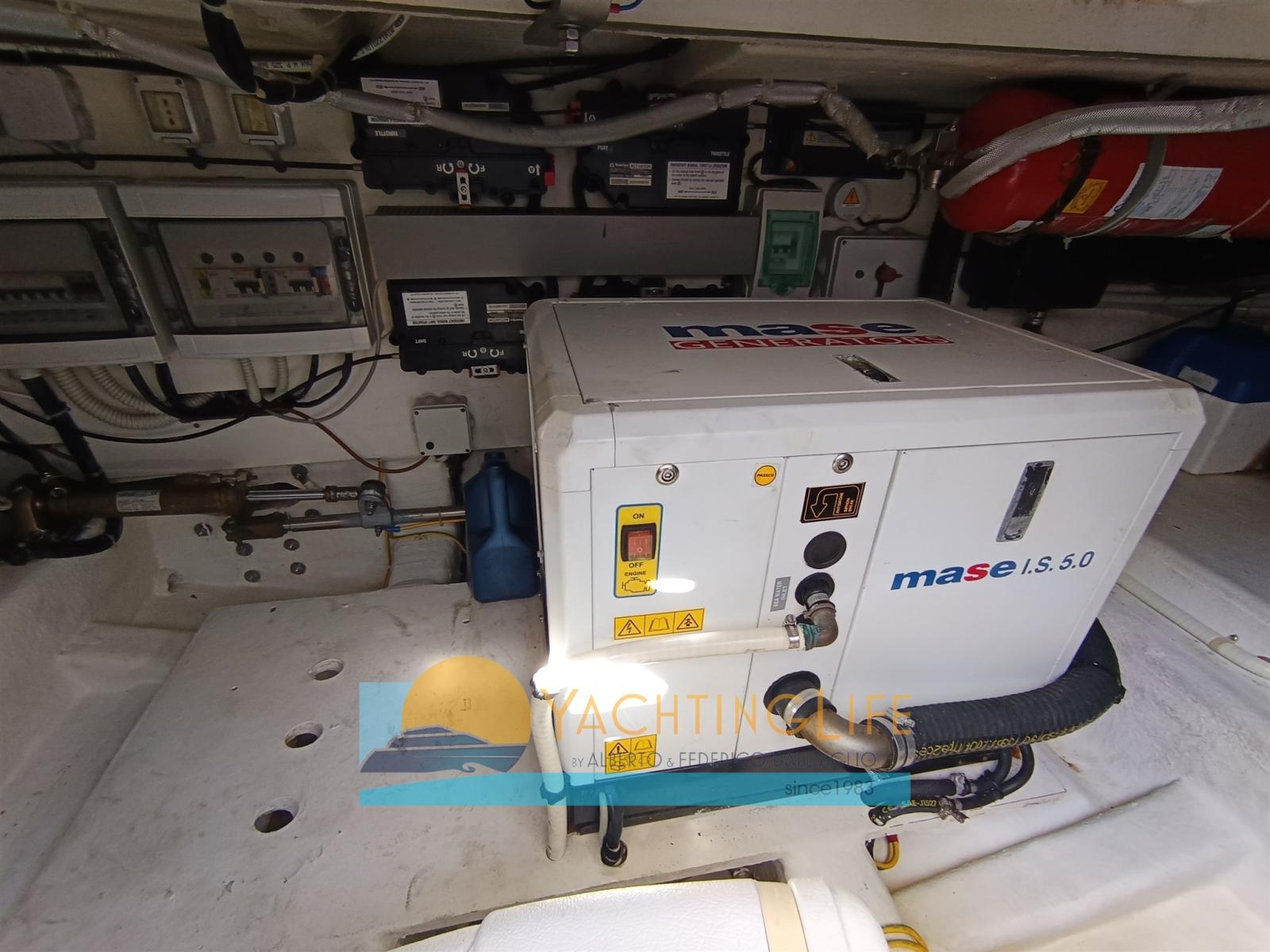 Engine Alarm, Anchor (Inox), Water pressure pump, Special Colour (Blu), Deck Shower, Hard top, Fire Extinguishing System, Courtesy Lights, Auxiliary Engine (Honda 6hp), Gangway (Idraulica Opacmare), Platform (In teak), Automatic Bilge Pump, Manual Bilge Pump, Entry door (In acciaio inox e cristallo), Teak Cockpit, Shorepower connector, Electric Windlass (2022), swimming ladder, Tender, Horn.