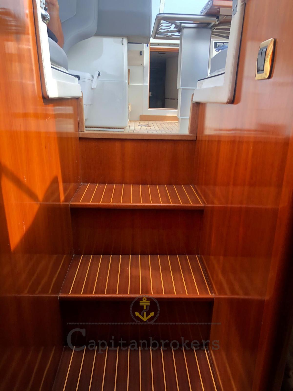 Engine Alarm, Bilge Alarm, Spare shaft, Water pressure pump, Batteries (nuove servizi e motori 2021), Special Colour, Deck Shower (calda-fredda), Bow Thruster (2014 installata), Secondary Propeller, Headlights fixed on the stem (underwater), Hydraulic Flaps, Fire Extinguishing System, Courtesy Lights (doppie nel pozzetto), Gangway (elettroidraulica), Platform (poppa in teak 2016 trattata 2021), Automatic Bilge Pump, Entry door, Teak Cockpit (2016 , trattato 2021), Shorepower connector, Electric Windlass, swimming ladder (allungata con maniglioni per facilitare la salita), cockpit table (totalmente nuovo in teak a scomparsa), Horn.
