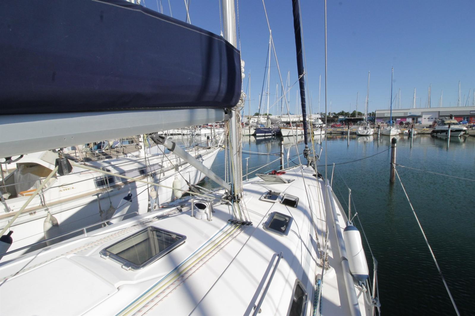 Anchor (ROCNA 20kg + 50m de chaine de 10 (ensemble très récents)), Deck Suction of Dirty Water, Water pressure pump, 2 Batteries (120ah agées de 3 ans), Shore power cable, Deck Shower (avec eau chaude), Wind Generator, Auxiliary Engine (5cv 4temps), Solar panels (480w), Manual Bilge Pump, Electric Windlass (1000w (chaine de 10)), swimming ladder, Outboard Engine Support Bracket, cockpit table, Tender (3DTENDER plancher gonflable), 4 Winch (HARKEN).
