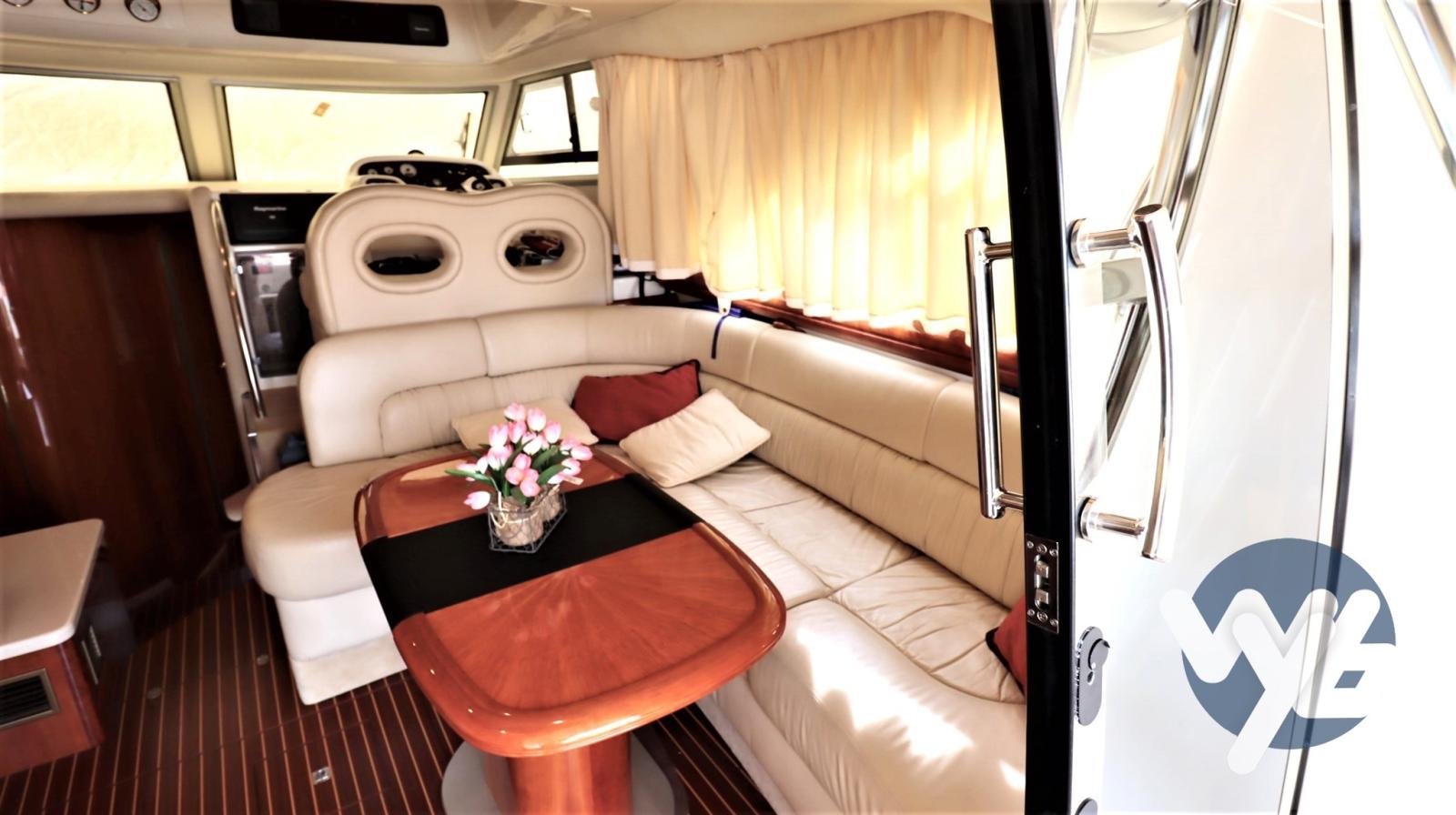 Engine Alarm, Bilge Alarm, Water pressure pump, Shore power cable, Deck Shower, 2 Hydraulic Flaps, Outboard engine for tender, Gangway, Manual Bilge Pump, Entry door, Shorepower connector, Electric Windlass, swimming ladder, cockpit table, Tender.