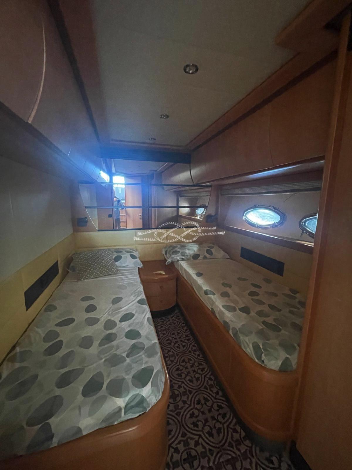 Master cabin with double bed, walk-in closet and bathroom - VIP cabin with double bed and bathroom - guest cabin with two beds on the floor - guest cabin with two cross beds - guest bathroom.