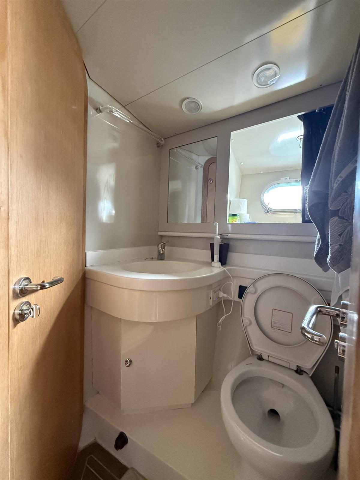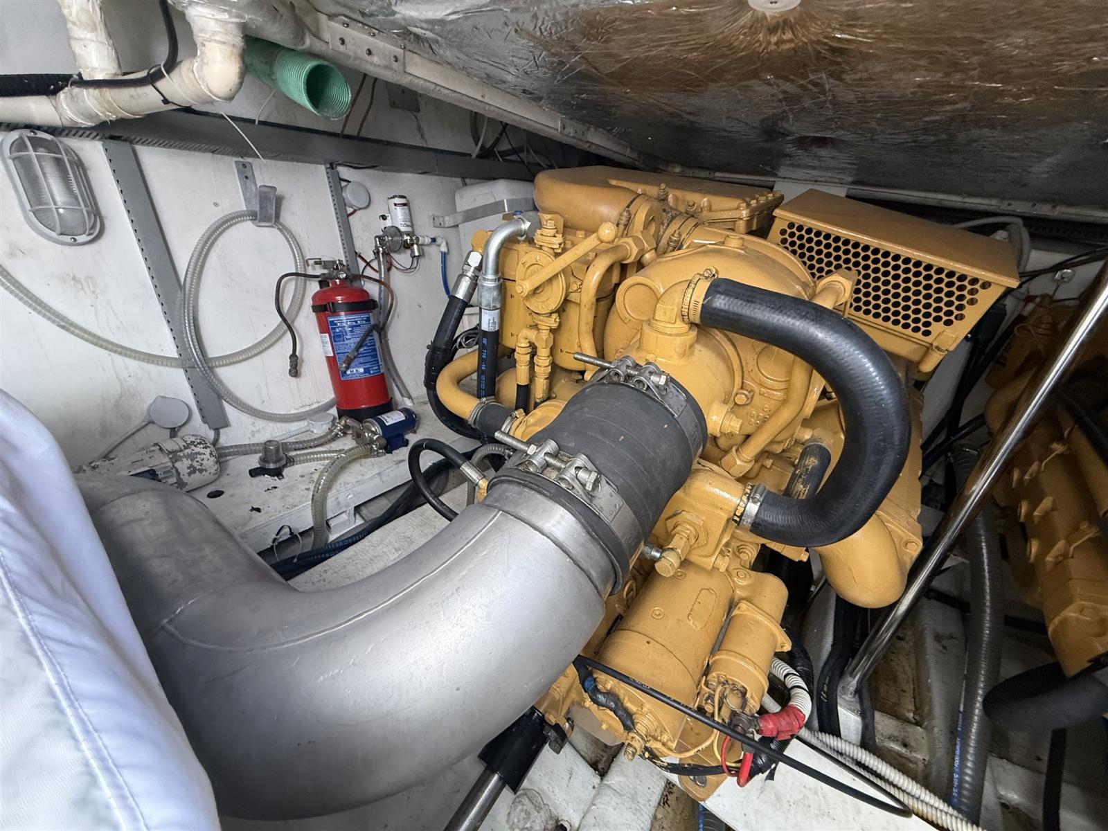 Engine Alarm, Bilge Alarm, Water pressure pump, Shore power cable, Deck Shower, Hydraulic Flaps, Fire Extinguishing System, Washbasin in the cockpit, Courtesy Lights, Underwater lights, Fenders, Gangway, Automatic Bilge Pump, Entry door, Shorepower connector, Water harbor connector system, Electric Windlass, swimming ladder, cockpit table, Bow Winches.