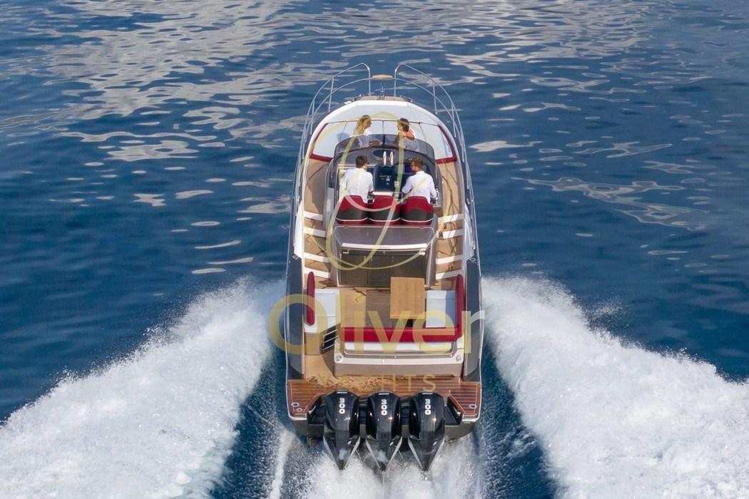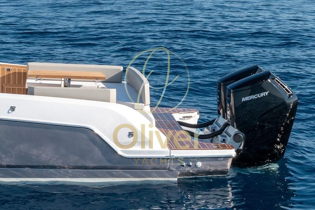 You can choose from different engine configurations, up to the maximum engine allowed Yamaha 3×425 HP or Mercury 3×400 HP, for a perfect balance between power, efficiency and sailing comfort.