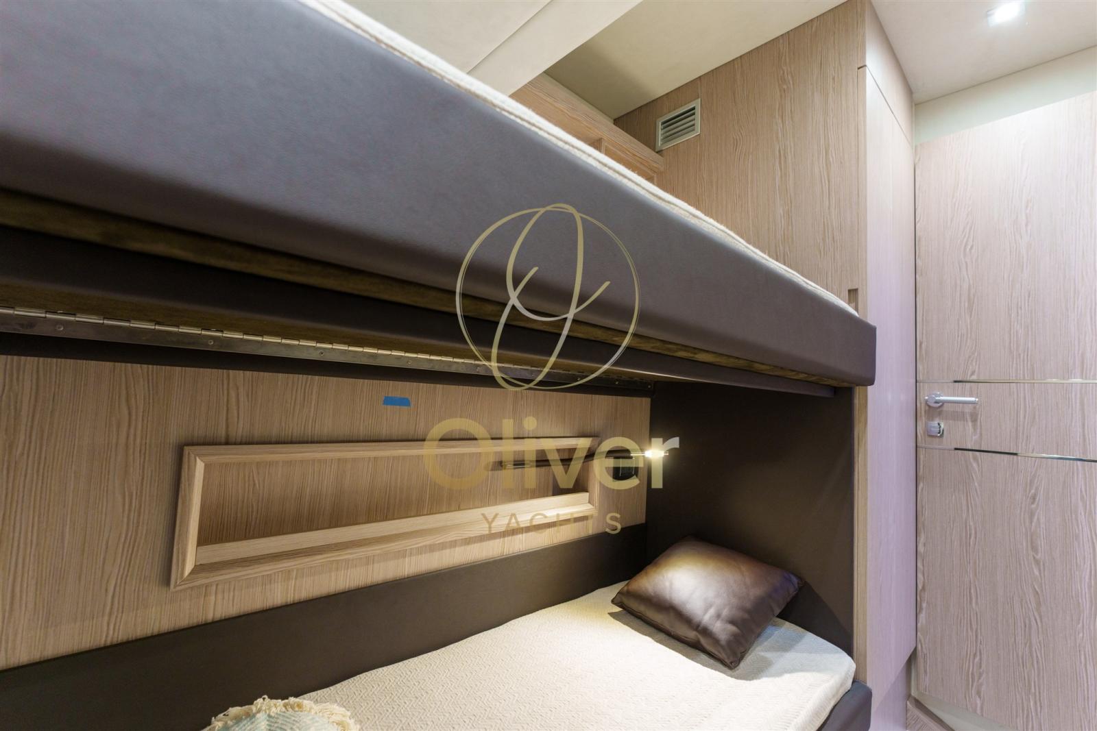 The layout is completed by the independent sailor cabin, full 92,000 BTU air conditioning and handcrafted details that reflect the care and excellence of Made in Italy.