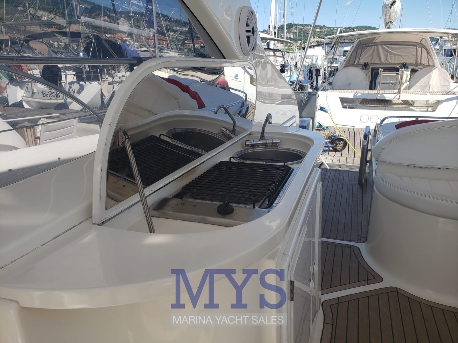 Fume/Gas Detector, Engine Alarm, Bilge Alarm, Anchor (con catena), Selftailing winch, Water pressure pump, Auto-Trim, Batteries (2024), Shore power cable, Deck Shower, Directional Spotlight, Electric Flaps, Tender Garage, Hard top, Flaps Indicators, Washbasin in the cockpit, Courtesy Lights, Underwater lights, Fenders, Gangway (a scomparsa), Platform (teak 2025), Automatic Bilge Pump, Manual Bilge Pump, Teak Cockpit (2024), Shorepower connector, Water harbor connector system, Voltage Rectifier, Electric Windlass, swimming ladder, cockpit table, Living Room Foldable Table, Tender, Horn.