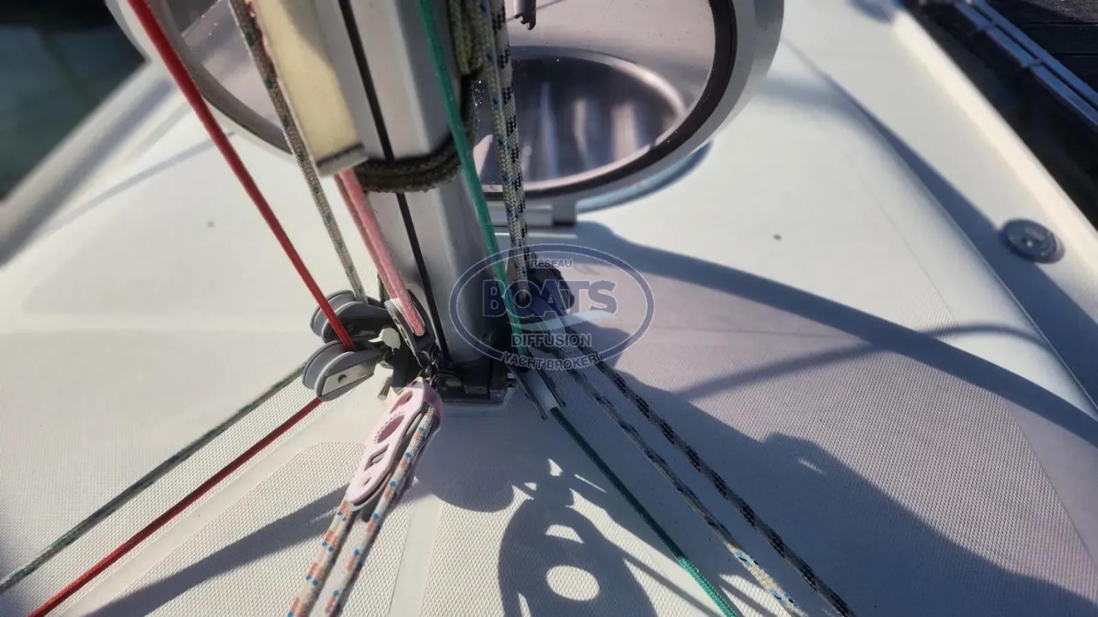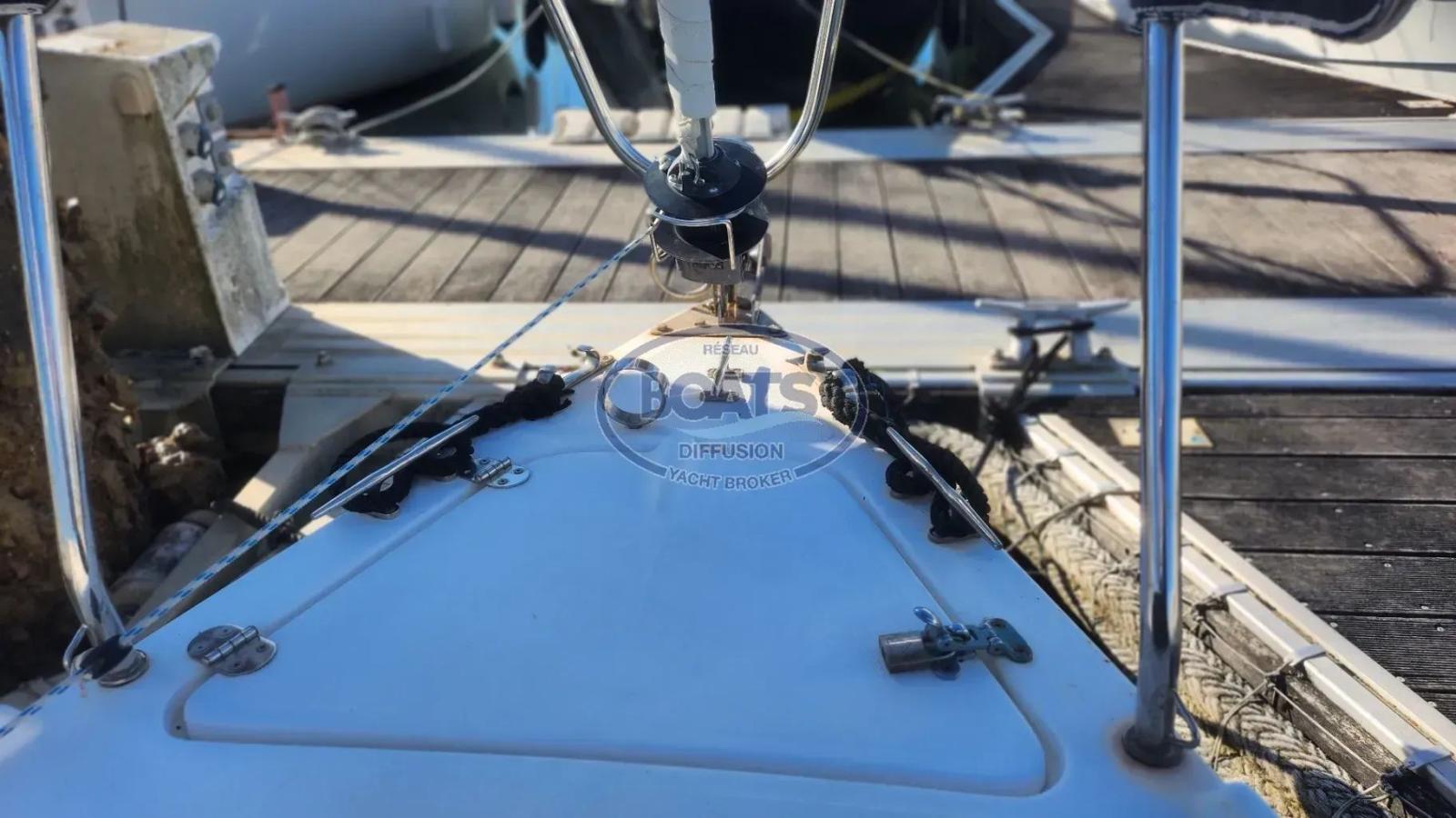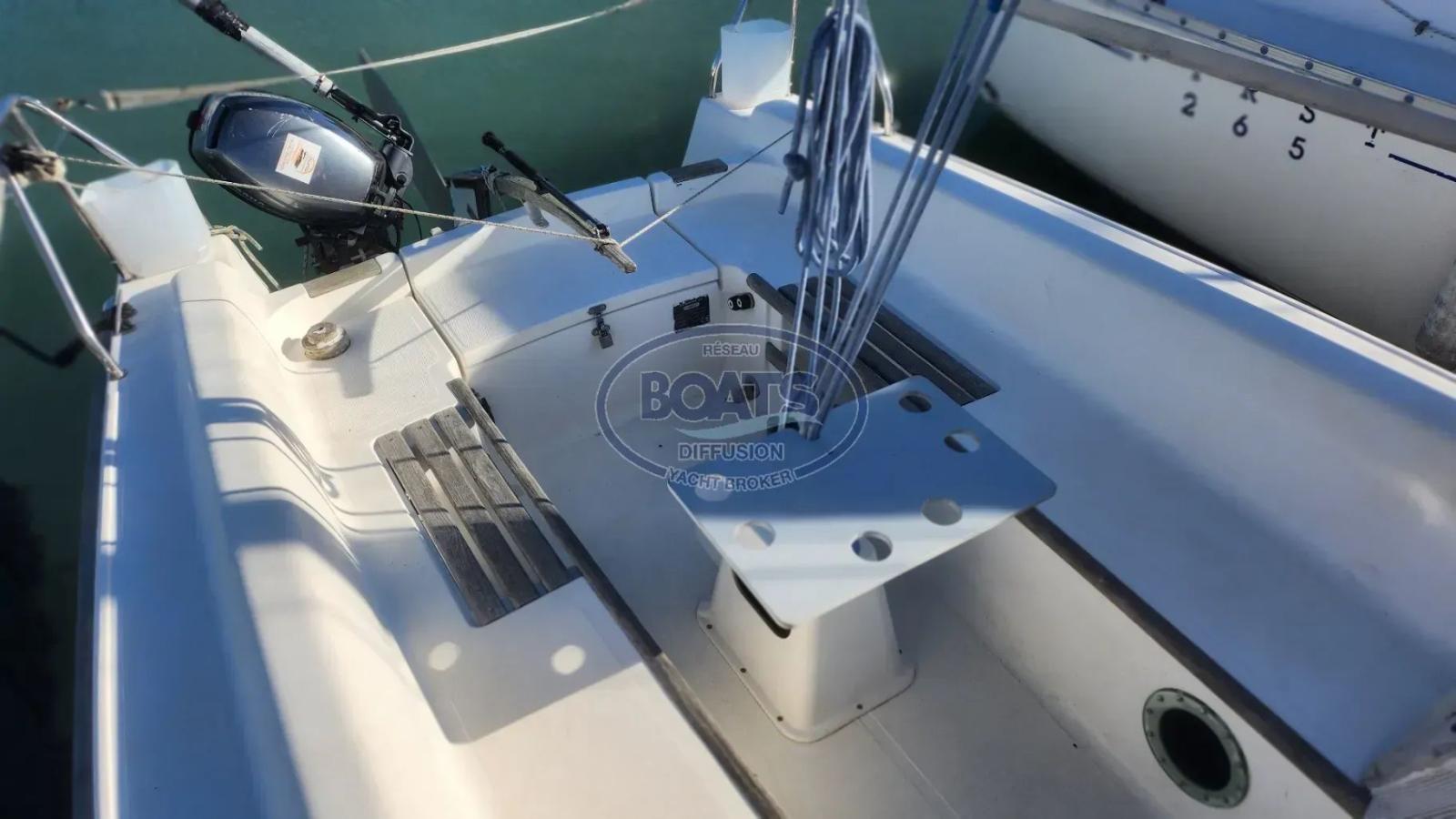 VISIBLE IN LA ROCHELLE – Contact Jean-Pierre or Audrey at +33 6 09 42 34 55 – europeanboatcourtage@gmail.com - The Djinn 7 is a lifting-keel sailboat (swing keel) with a draft ranging from 0.30 m to 1.20 m with the keel lowered. It is a trailerable boat that is easy to handle - Well maintained by its owners, it is equipped with: 8 HP engine (2012) / Mainsail, genoa, and lazy bag (2019) / Gennaker (2023) / Lifelines and shrouds replaced in 2022 / Rudder refurbished / Water pump from 2021 - The safety equipment is complete.