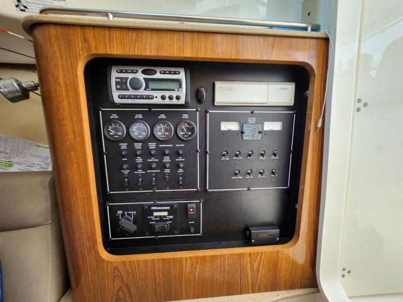 The PURSUIT SF 345 is in good overall condition. Lightly used, with 565 engine hours, she is equipped with: Raymarine electronics with 13” GPS interfaced with radar and autopilot, T-top, external upholstery, forward owner’s cabin with double bed and TV, electric toilet, fixed cockpit table, and Hi-Fi system. - Check the full brochure, the video and the sea trial on our Web site MEDIA SHIP