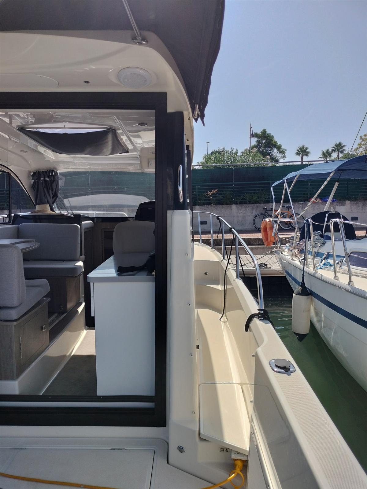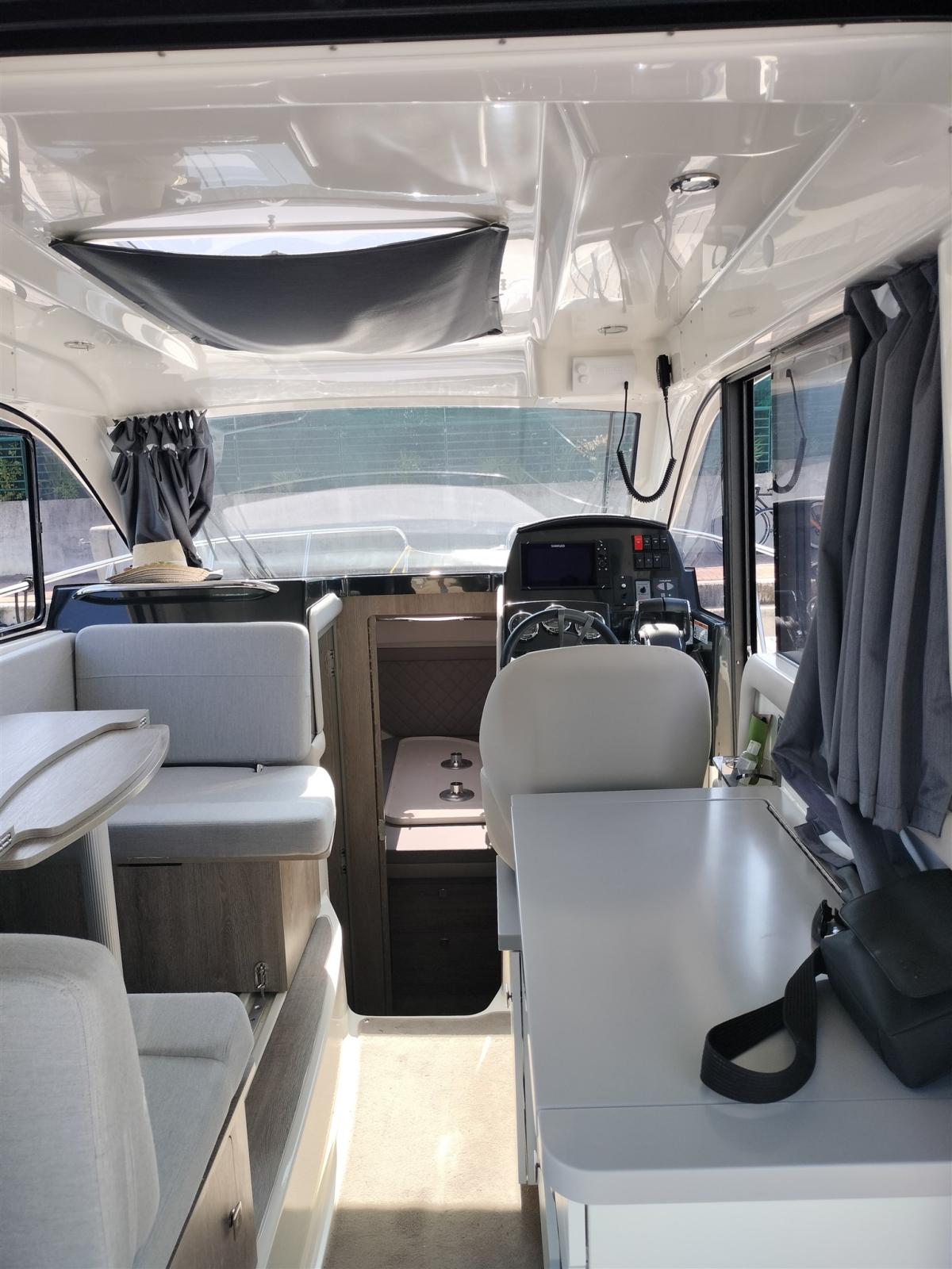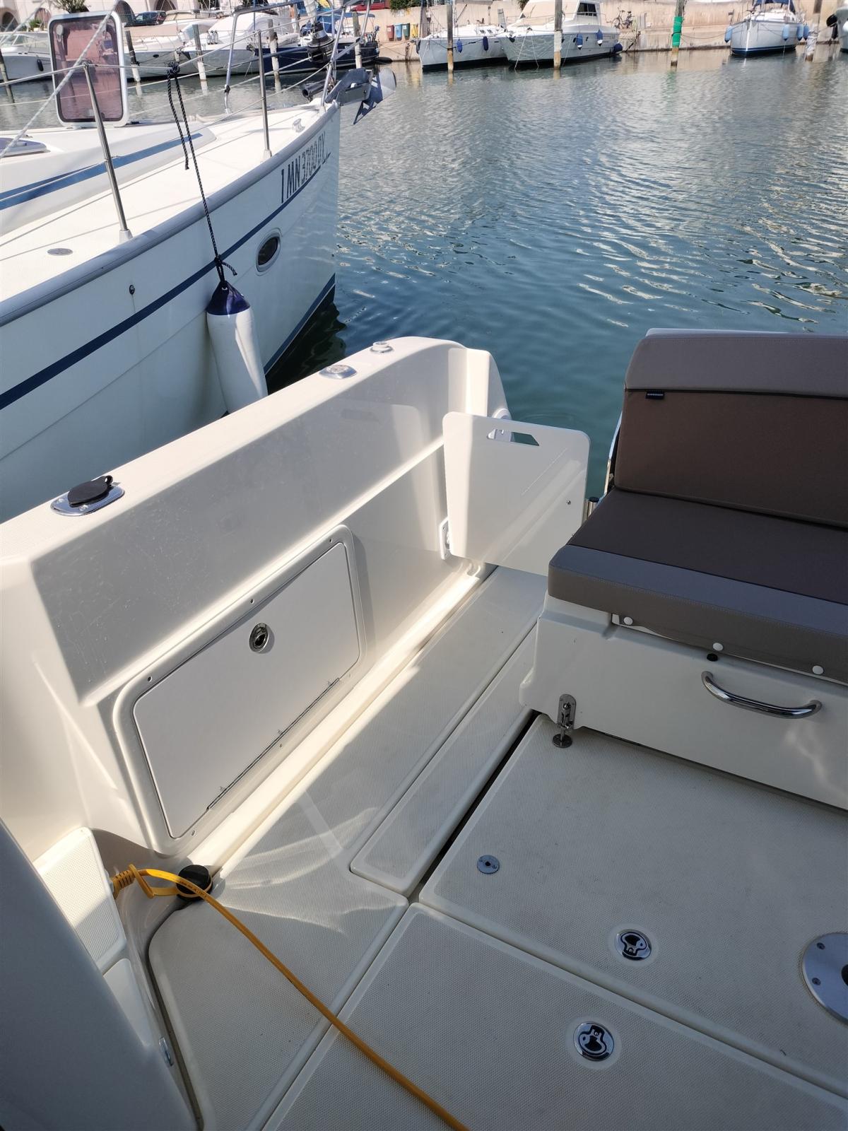 Engine Alarm, 3 Batteries, Deck Shower, Directional Spotlight, Electric Flaps, Hard top, Flaps Indicators, Courtesy Lights, Platform, Automatic Bilge Pump, Shorepower connector, Water harbor connector system, Electric Windlass, swimming ladder, cockpit table, Horn.