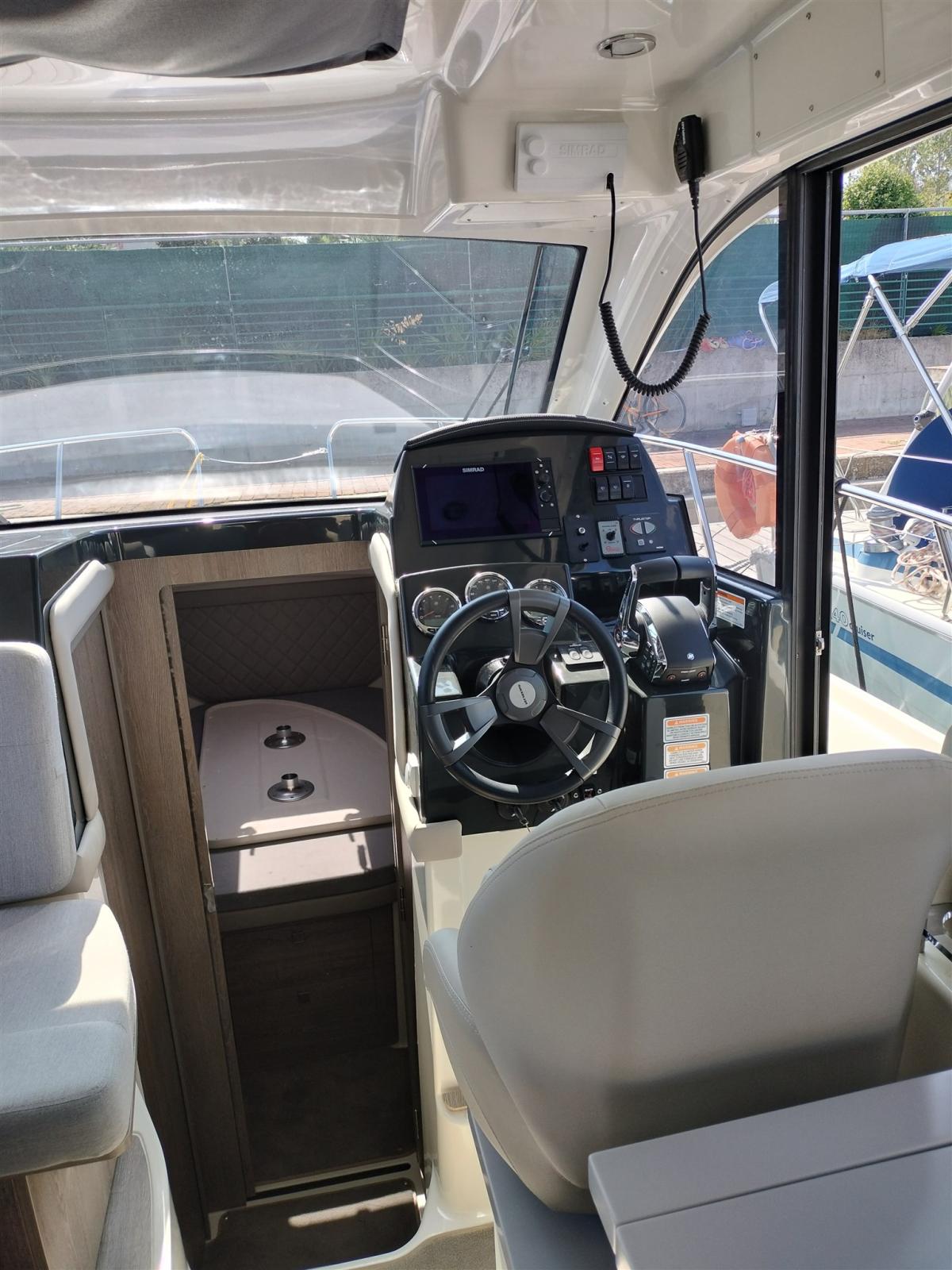 Rudder angle indicator, Electronic engine control, Display, Depth Sounder (Simrad 9"), GPS (Simrad 9").