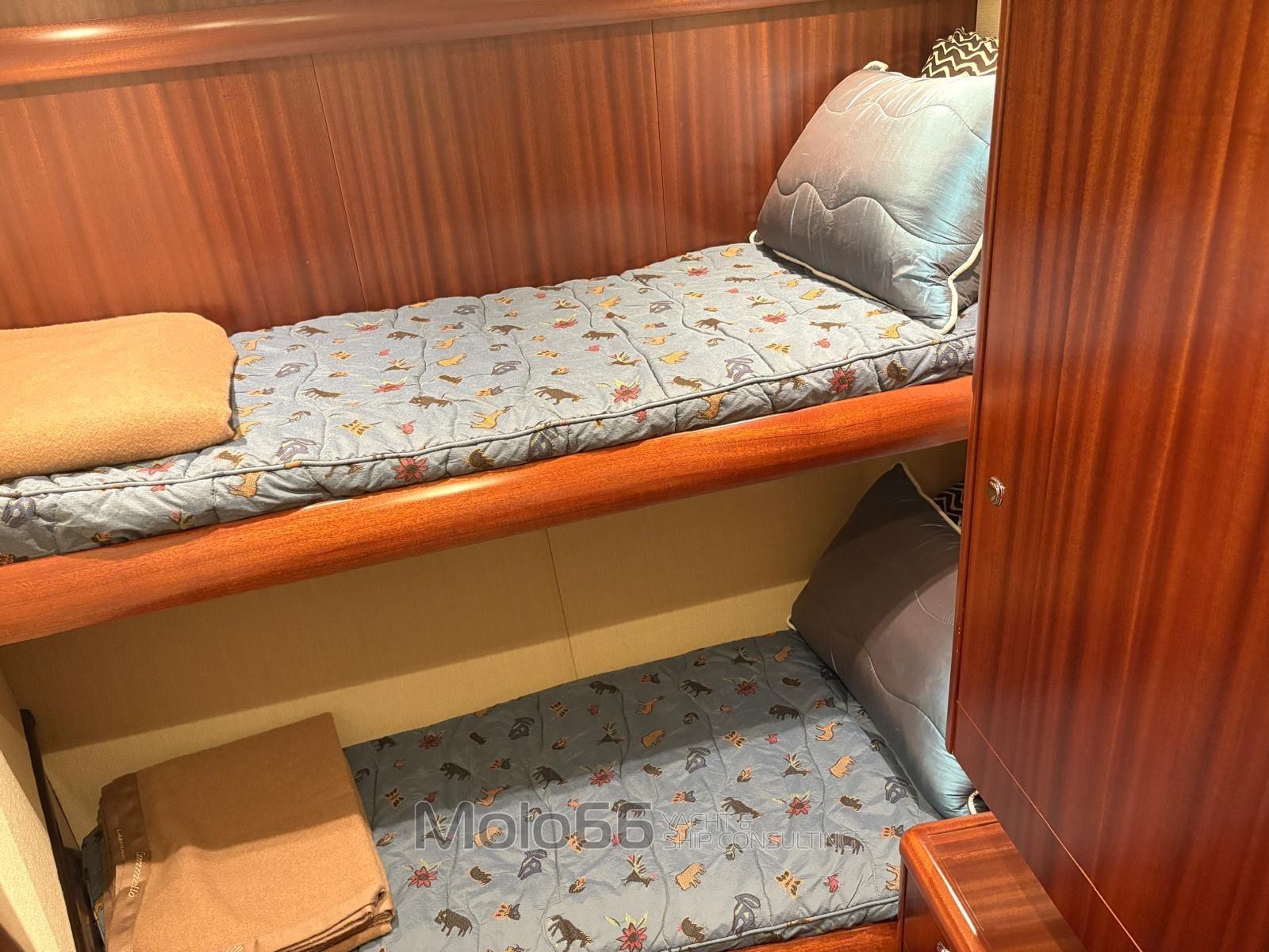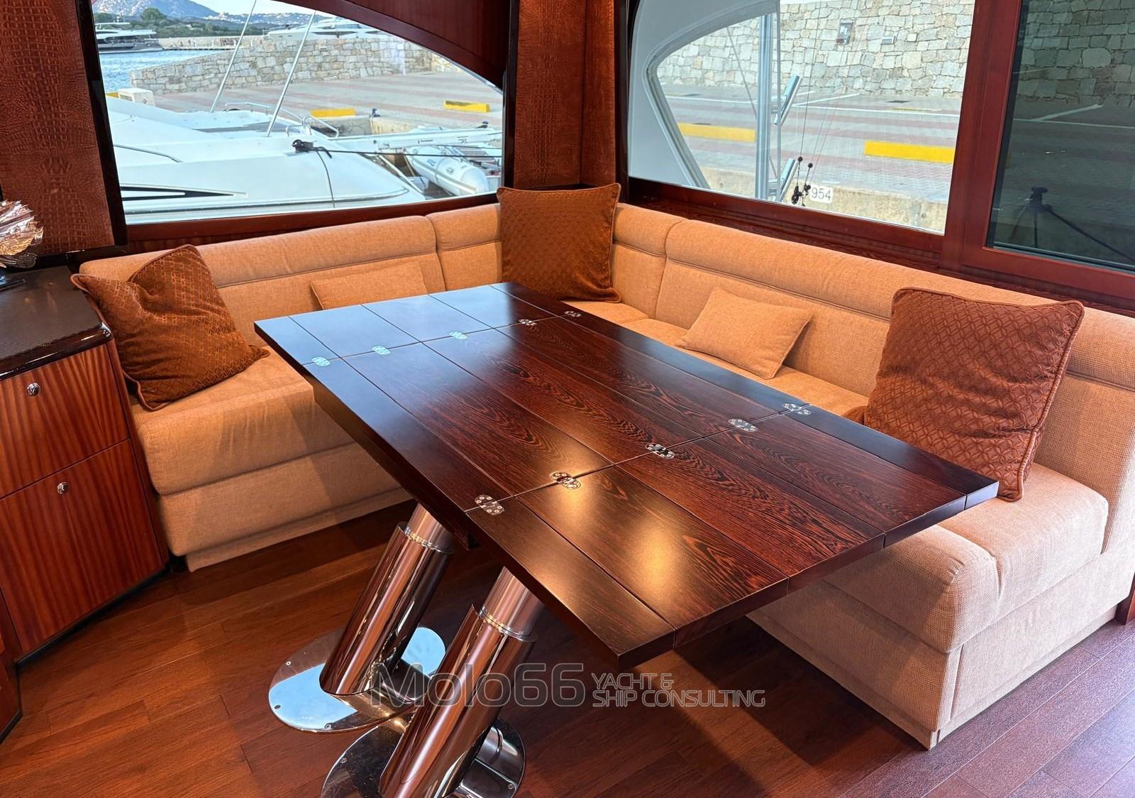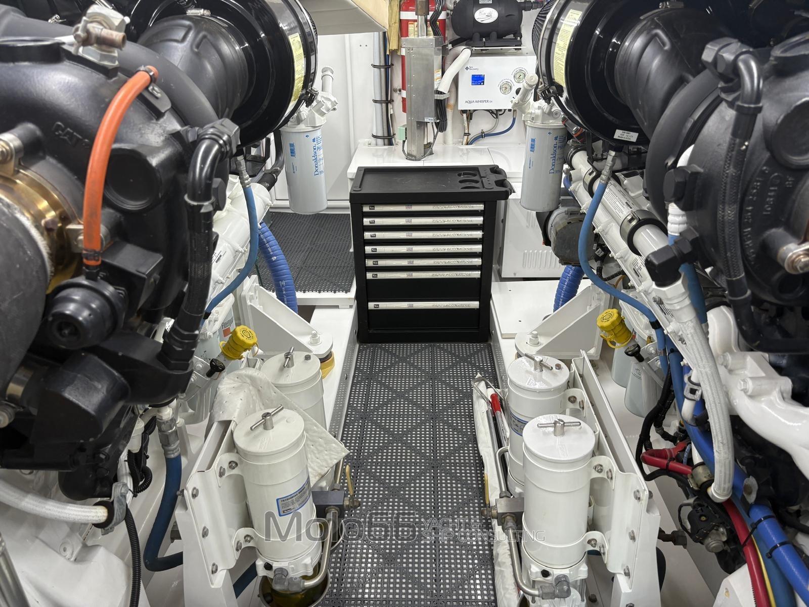 Fume/Gas Detector, Engine Alarm, Bilge Alarm, Alternator, 2 Water pressure pump, Shore power cable, Special Colour (Grey Perle), Deck Shower, Secondary Propeller, Headlights fixed on the stem, Directional Spotlight, Hydraulic Flaps, Tender Crane (on deck 1500 lb Marquit), Hard top, Fire Extinguishing System, Compressor Air System, Anchor Chain Washdown, Washbasin in the cockpit, Courtesy Lights, Underwater lights, Outboard engine for tender (Yamaha 40hp 4T), Gangway, Automatic Bilge Pump, Manual Bilge Pump, Deck Wash Pump, Seawater Pump, Entry door, Teak Cockpit, Shorepower connector, Water harbor connector system, Electric Windlass, swimming ladder, 2 Stabilizers (Seakeeper serie 9), Living Room Foldable Table, Tender (Boston Whaler 13' Outrage), Horn, 2 Stern Winches, Bow Winches.