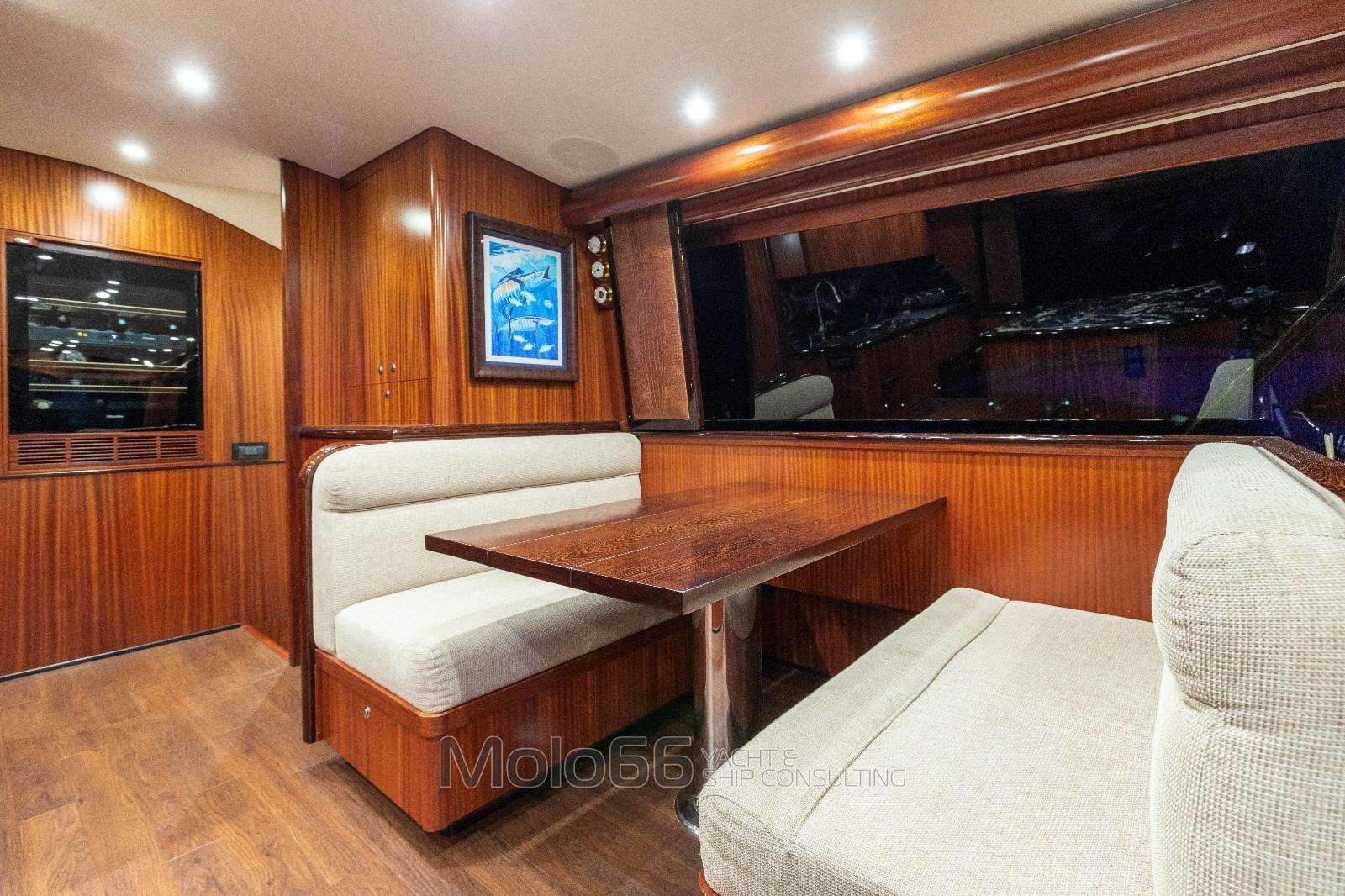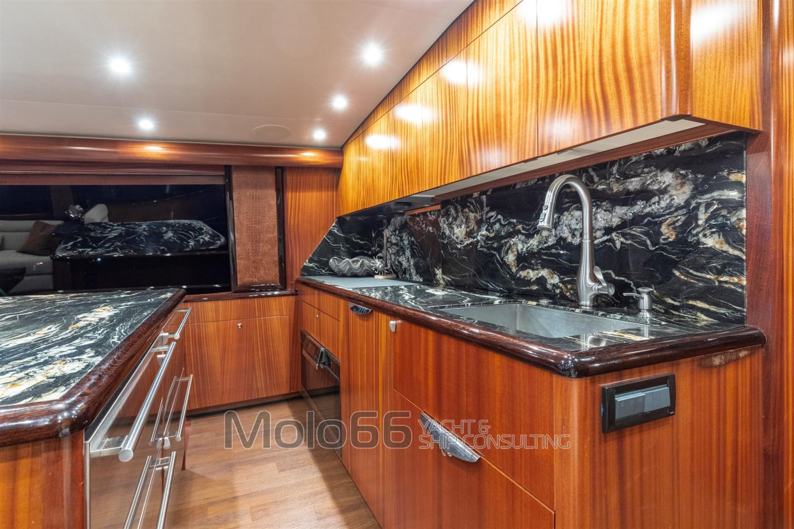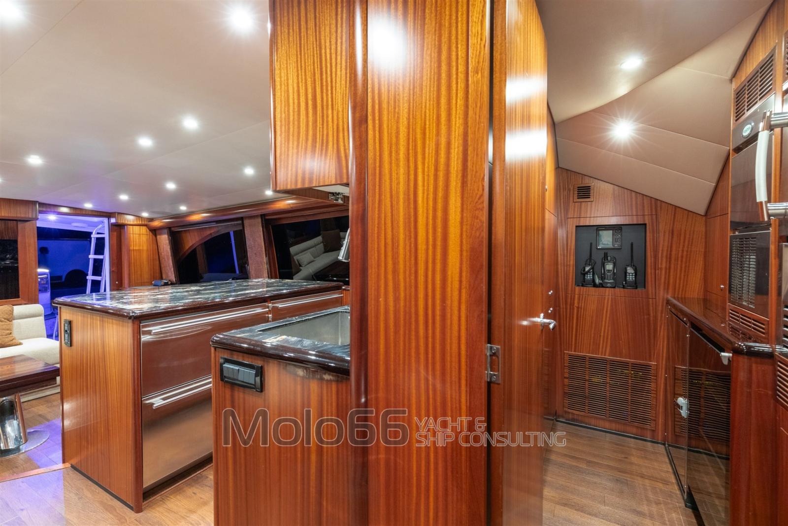 Fume/Gas Detector, Engine Alarm, Bilge Alarm, Alternator, 2 Water pressure pump, Shore power cable, Special Colour (Grey Perle), Deck Shower, Secondary Propeller, Headlights fixed on the stem, Directional Spotlight, Hydraulic Flaps, Tender Crane (on deck 1500 lb Marquit), Hard top, Fire Extinguishing System, Compressor Air System, Anchor Chain Washdown, Washbasin in the cockpit, Courtesy Lights, Underwater lights, Outboard engine for tender (Yamaha 40hp 4T), Gangway, Automatic Bilge Pump, Manual Bilge Pump, Deck Wash Pump, Seawater Pump, Entry door, Teak Cockpit, Shorepower connector, Water harbor connector system, Electric Windlass, swimming ladder, 2 Stabilizers (Seakeeper serie 9), Living Room Foldable Table, Tender (Boston Whaler 13' Outrage), Horn, 2 Stern Winches, Bow Winches.