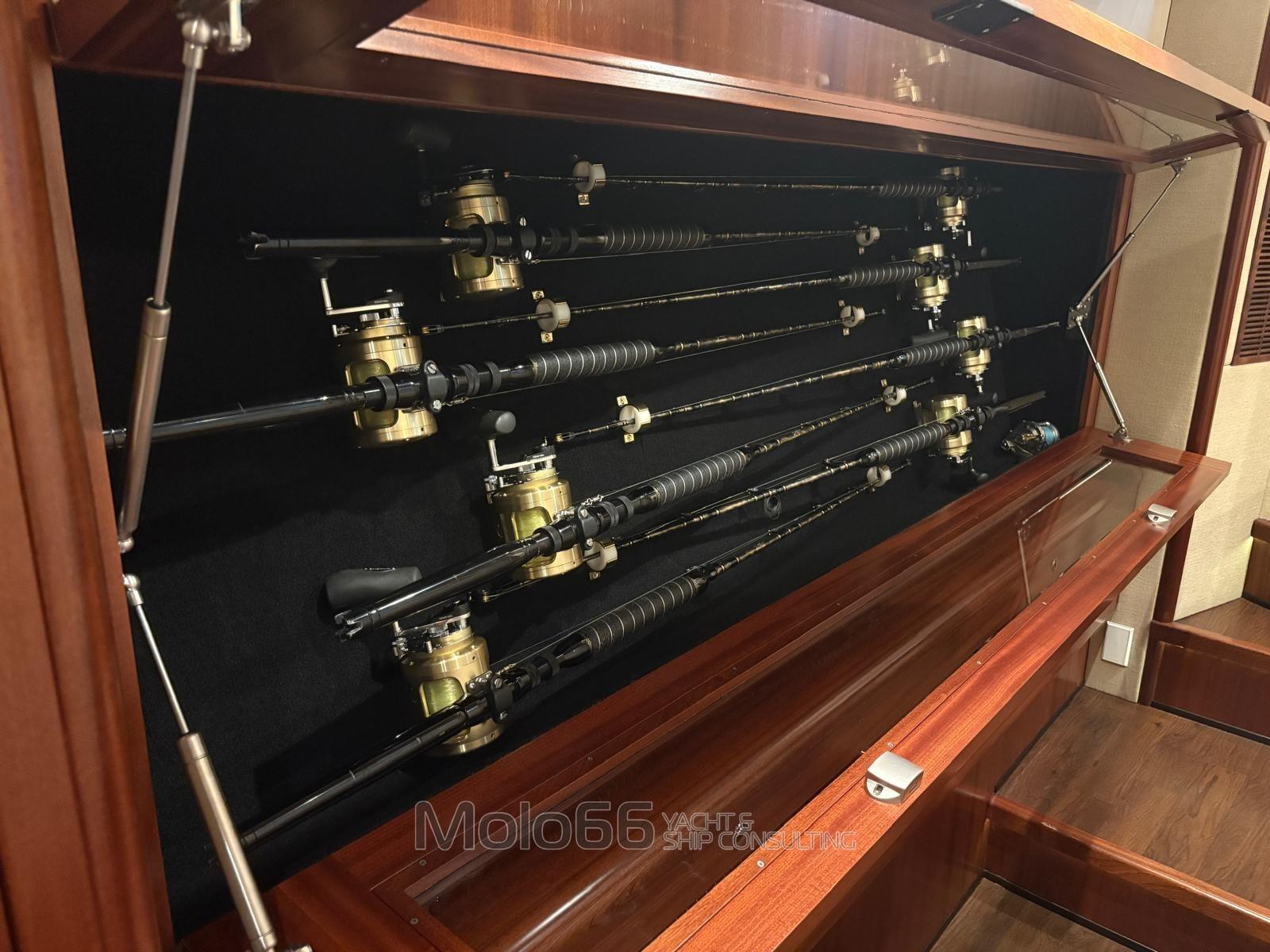 Outriggers (Rupp's - Idraulic openig), Fishing Rod Holder, Fighting Chair, Trolling Valve, Tuna tower, Baitwell, Fishbox.
