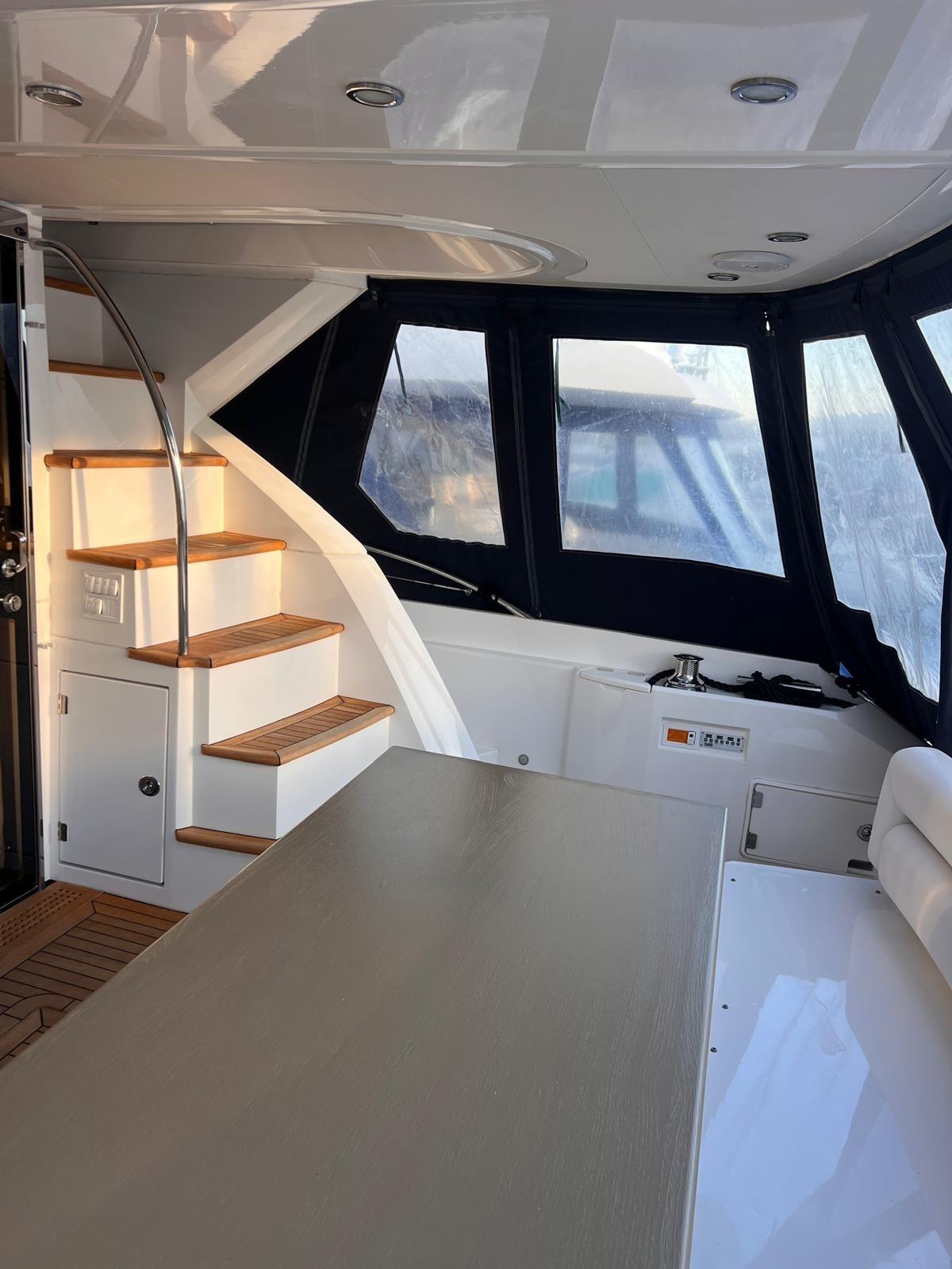 Engine Alarm, Bilge Alarm, Electric Flaps, Fire Extinguishing System, Flaps Indicators, Courtesy Lights, Underwater lights, Gangway, Platform, Teak Cockpit, Shorepower connector, Stern Winches.