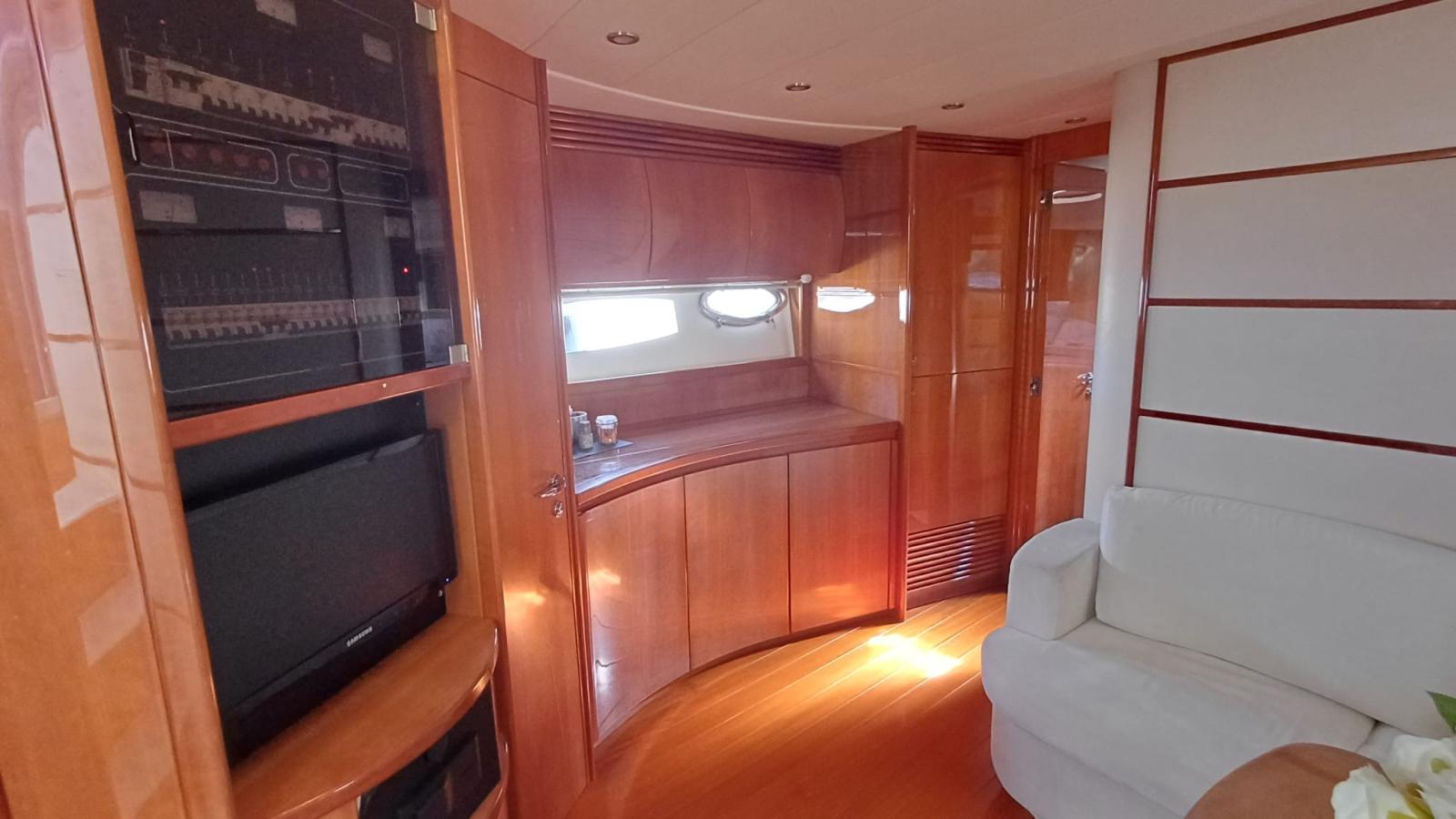 Engine Alarm, Bilge Alarm, Water pressure pump, Special Colour, Hydraulic Flaps, Fire Extinguishing System, Flaps Indicators, Washbasin in the cockpit, Courtesy Lights, Underwater lights, Gangway, Teak Cockpit, Shorepower connector, cockpit table, Horn, Stern Winches.