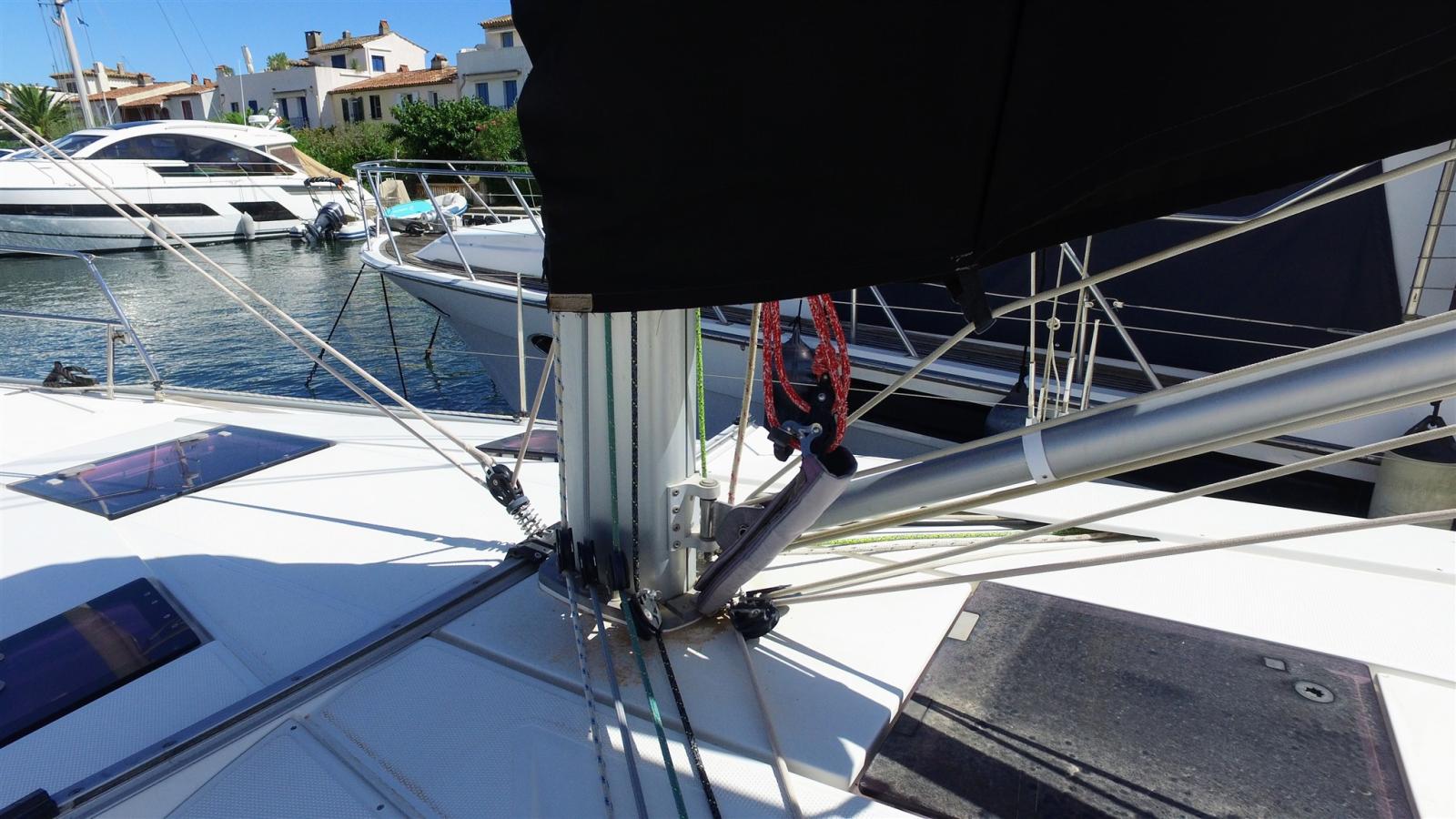 Engine Alarm, Anchor (Chaîne inox), Water pressure pump, 3 Batteries (2 service 300amp de 2021), Battery charger (40 Amp Dolphin), Guard rail, Deck Shower, Twin Steering, Auxiliary Engine (2,3 CV), Platform, Automatic Bilge Pump, Manual Bilge Pump, Teak Cockpit, Shorepower connector, Electric Windlass, Strand rigging (de 2024 et gréement courant de 2023), swimming ladder, Outboard Engine Support Bracket, cockpit table, Tender, 4 Winch, Windex.