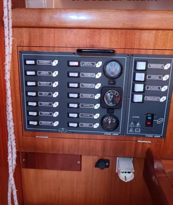 Engine Alarm, 2 Batteries, Shore power cable, Deck Shower, Manual Bilge Pump, Teak Cockpit, Shorepower connector, Electric Windlass, swimming ladder.