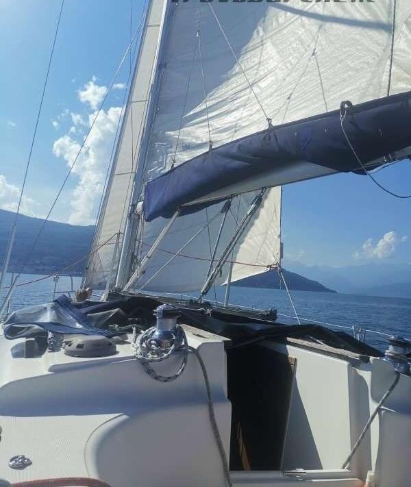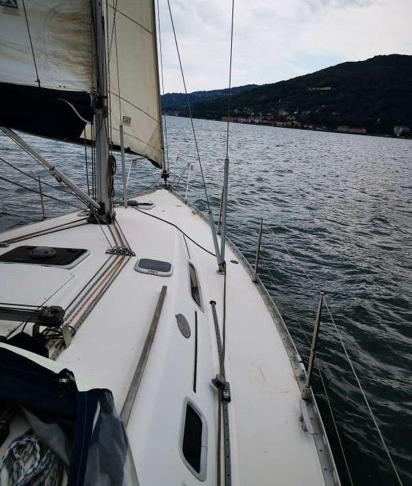 the current 2nd owner has held it since 2005; since 2005 used on Lake Maggiore; Original sails checked in the sailmaker in 2020, Jennaker with sock; 2024 NEW : sail-drive gasket, landed engine and overhauled; 2025 NEW : full coverage, canopy, awning; mediation of 5% + VAT 22% to be paid by the buyer (VAT is calculated on the amount of the mediation).