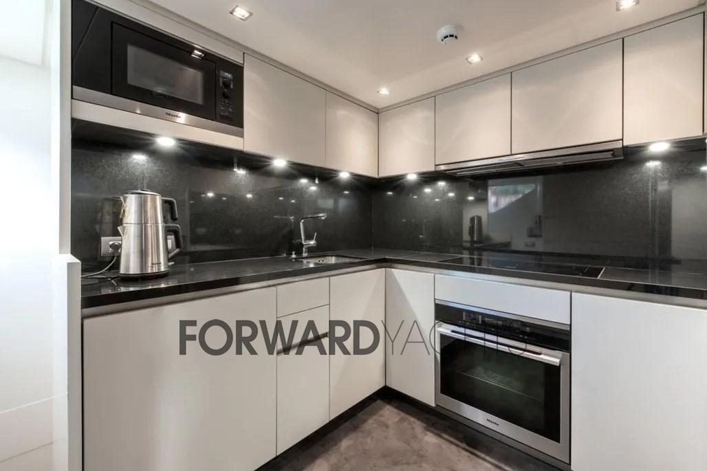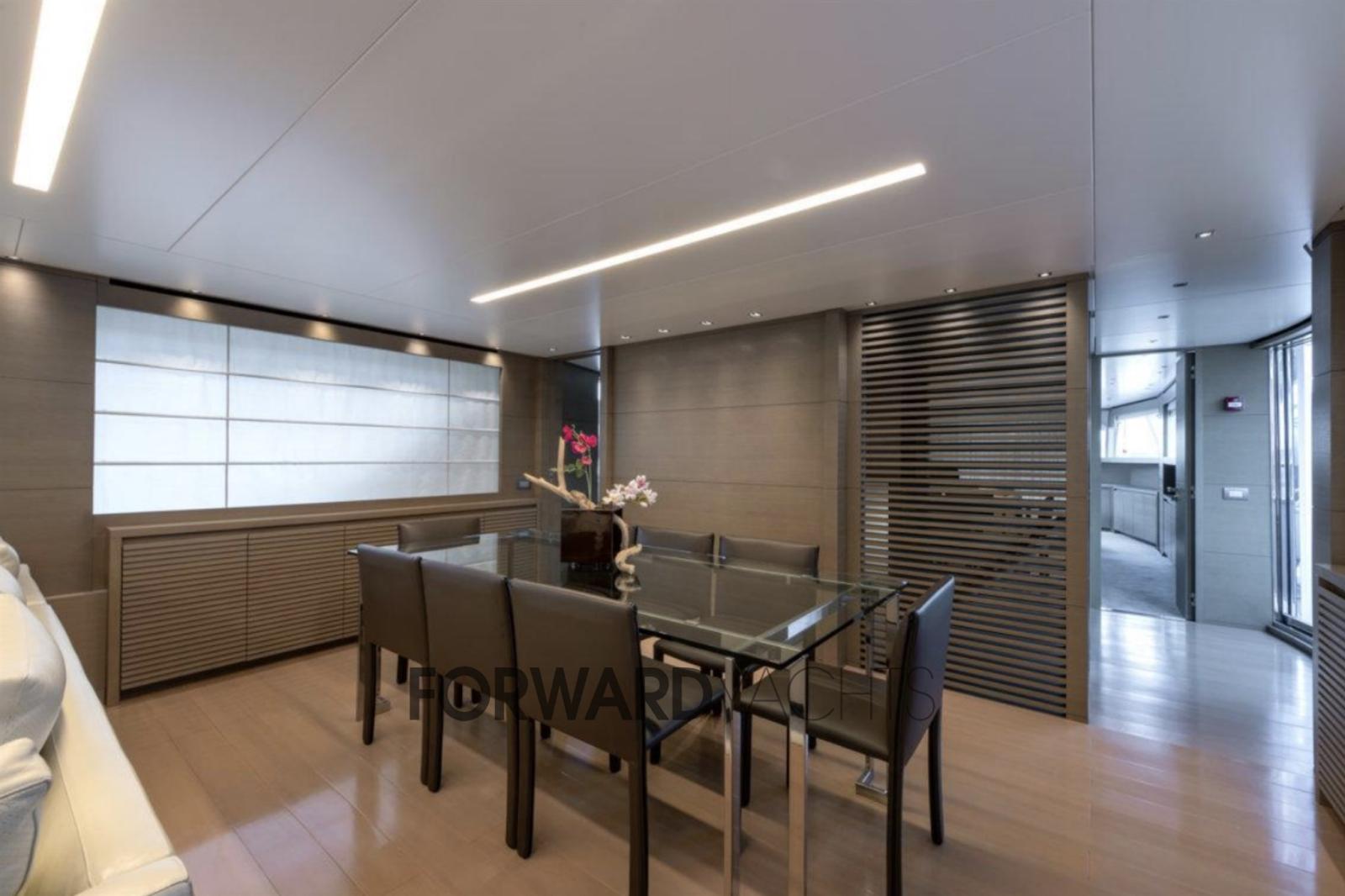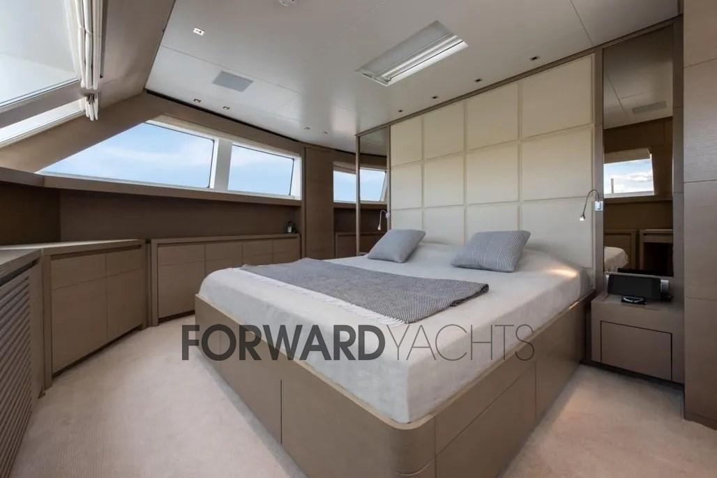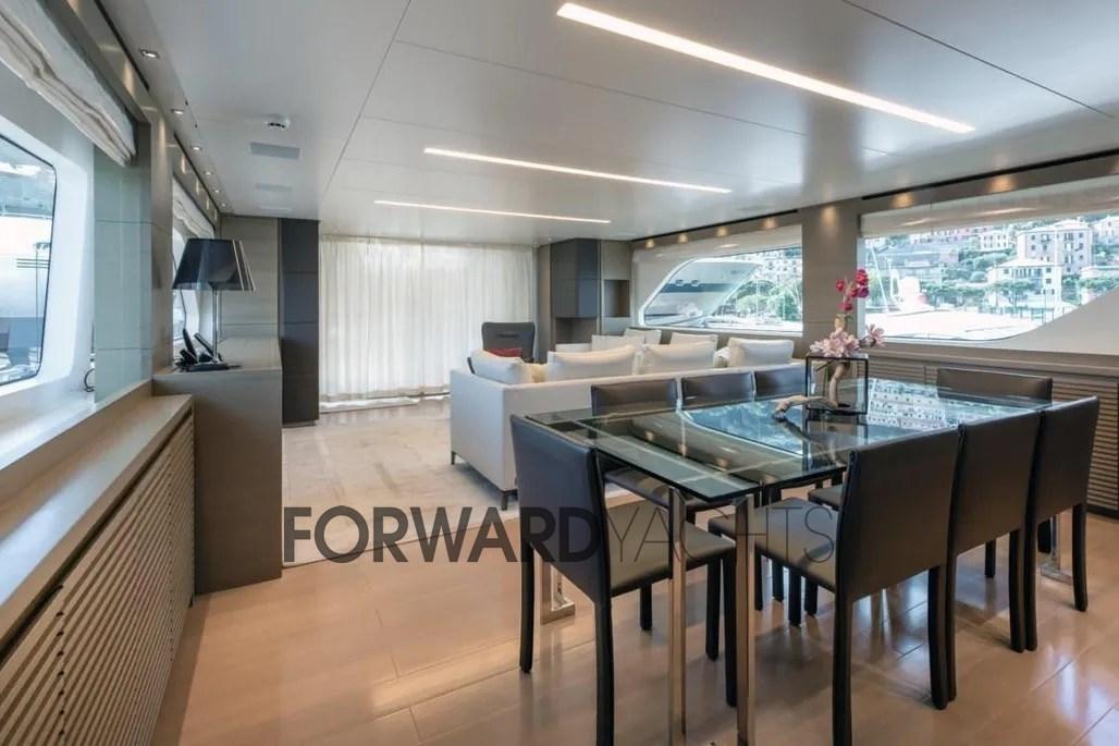 The large windows on the main deck guarantee brightness and constant contact with the sea, the main saloon, large and bright, houses a living area with sofas and a separate dining area.